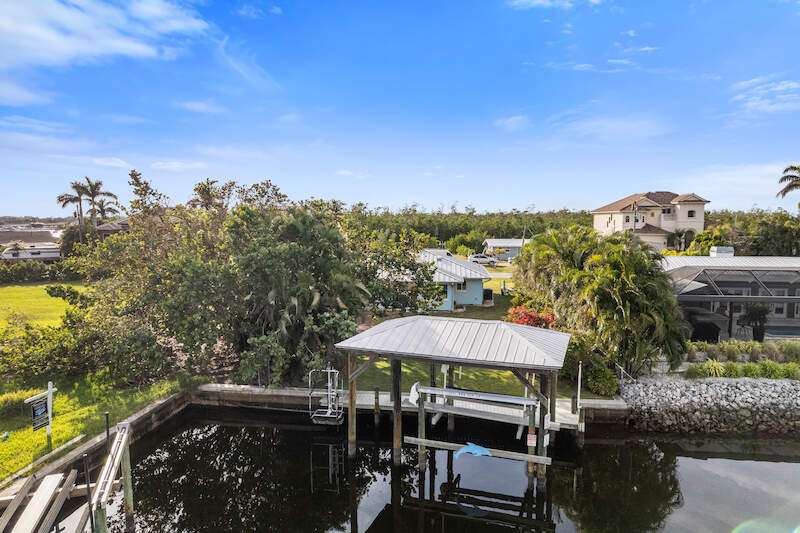 Priced at Lot Value...This substantial concrete block structure has a New Metal Roof, and Impact Resistant Doors & Windows, that were installed in 2020 & 2021 with permits. This is your opportunity to make some repairs, build-in sweat equity, and enjoy the Florida Lifestyle boating from your private dock and boat house just minutes from beautiful Bonita Beach in a community where New Construction abounds. This property is located west of US-41 on a large canal that intersects the Imperial River at the entrance to the Bonita Bay Marina and Back Water Jacks. Close to fun times at Doc's Beach House, The Fish House, Coconut Jacks, and many other nearby casual and fine dining establishments. Easy access to RSW Airport, The Promenade, Mercato, Waterside Shops and only 15 miles to world famous Naples 5th Ave. South. Also makes a great rental opportunity in a Non-Deed Restricted community of Imperial Shores.
