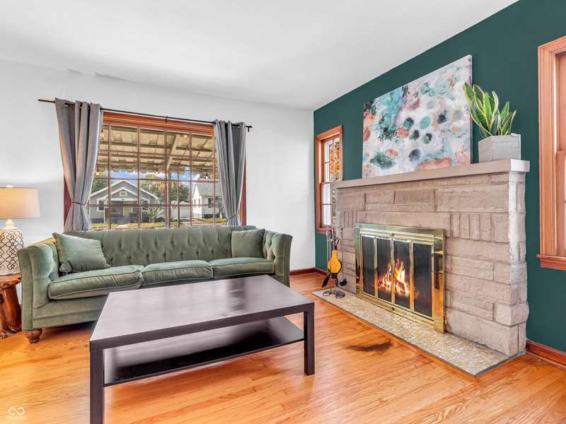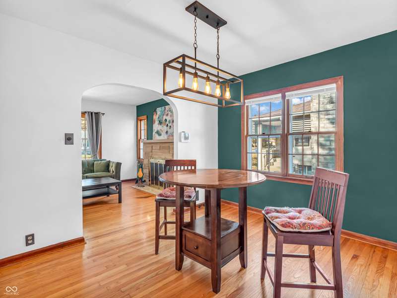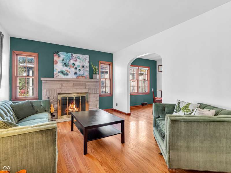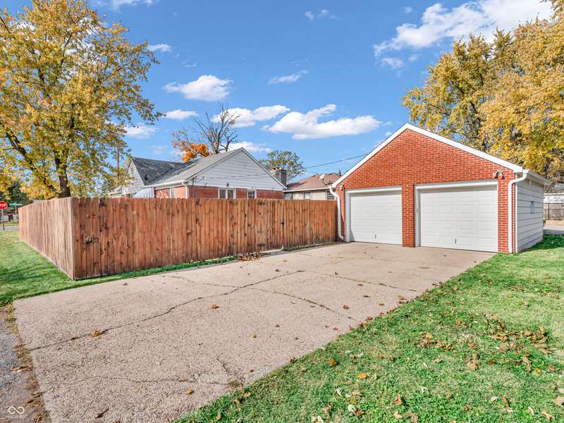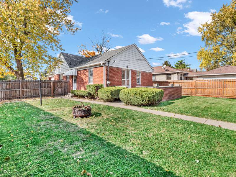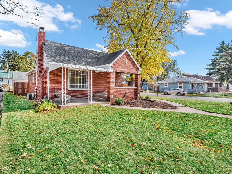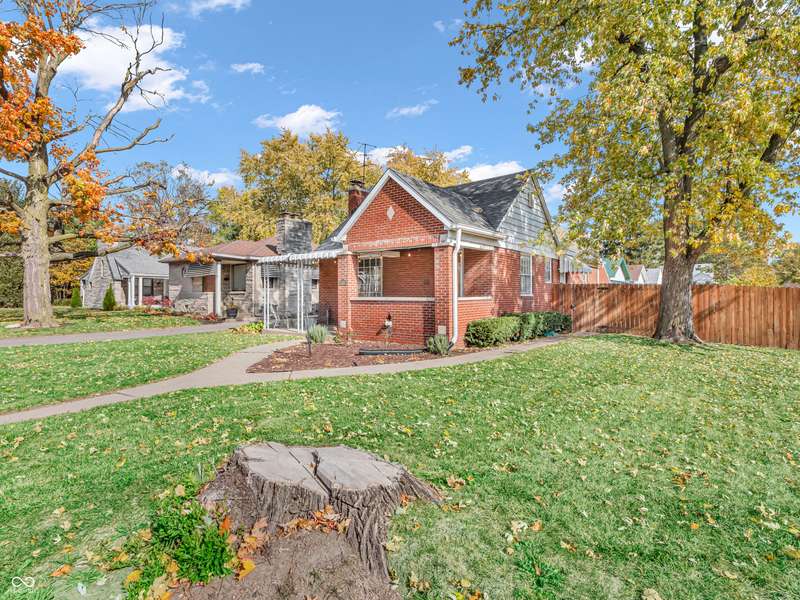 Welcome home to this charming, all-brick bungalow on a spacious corner lot, this home has a welcoming front porch, a cozy back patio, and a private fenced yard. On the main level you will find original hardwood floors throughout, a cozy living room with wood burning fireplace with large window flowing into the separate dining area and 2 bedrooms and updated bathroom. With over 2,000 square feet, this home offers more space than meets the eye. The finished basement includes two expansive rooms-one with a convenient kitchenette and the other featuring an original bar-plus a second full bath. Parking is effortless with the all-brick, 2-car garage accessible from 11th St. Conveniently located within walking distance to Irvington and Ellenberger Park.