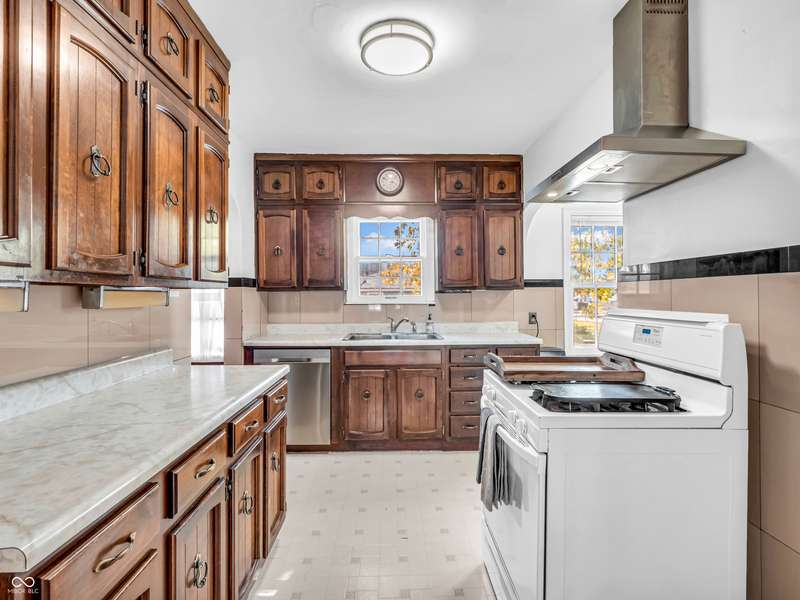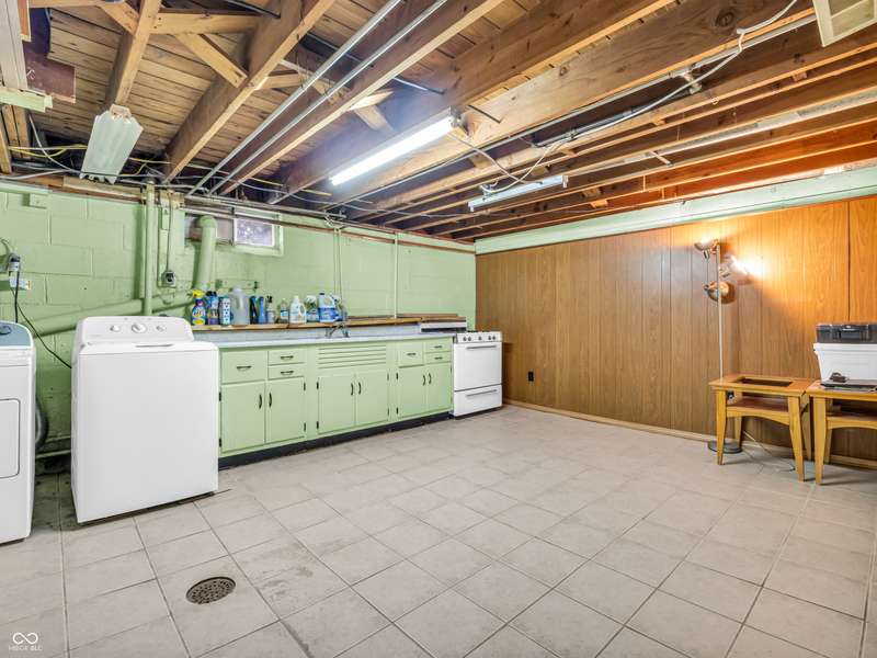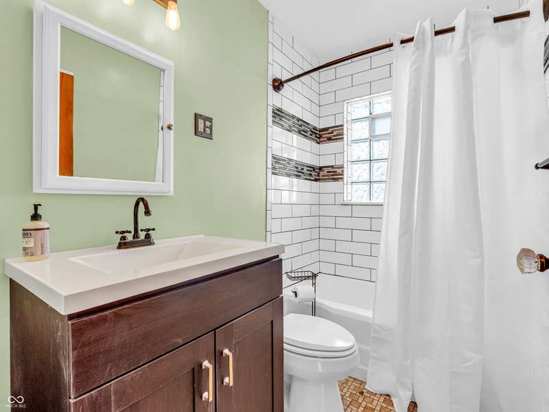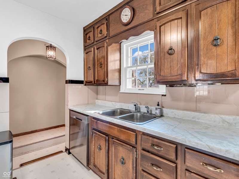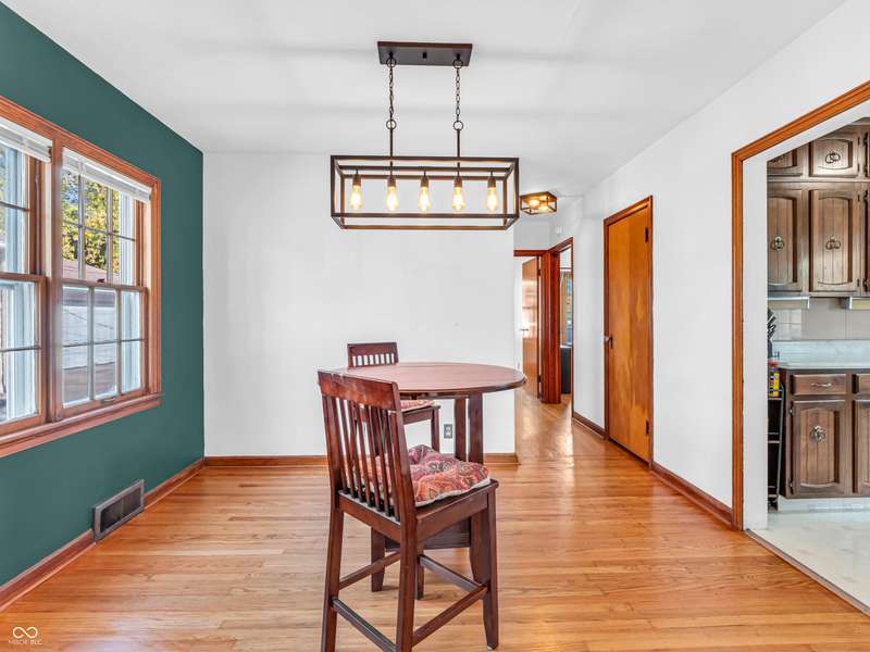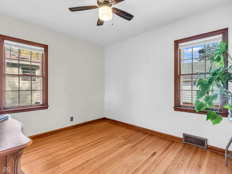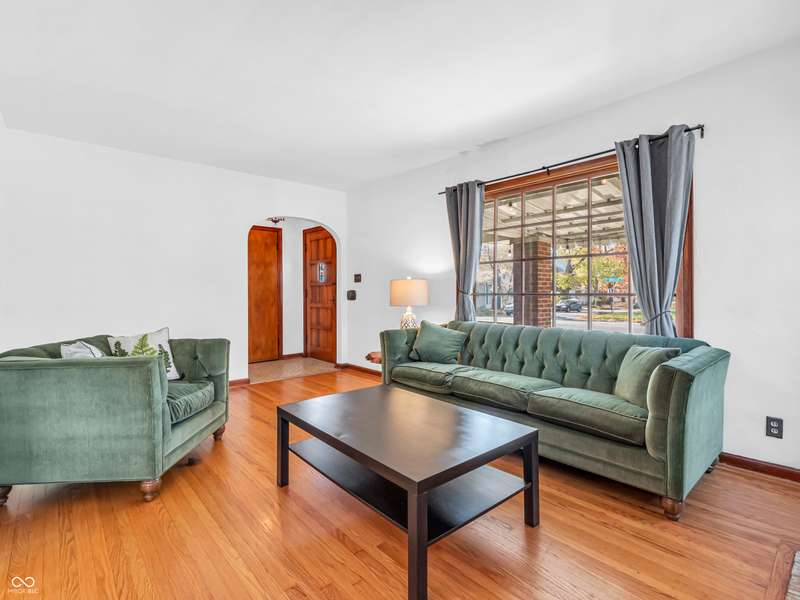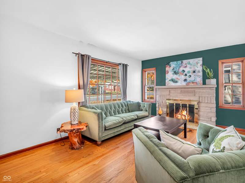 Welcome home to this charming, all-brick bungalow on a spacious corner lot, this home has a welcoming front porch, a cozy back patio, and a private fenced yard. On the main level you will find original hardwood floors throughout, a cozy living room with wood burning fireplace with large window flowing into the separate dining area and 2 bedrooms and updated bathroom. With over 2,000 square feet, this home offers more space than meets the eye. The finished basement includes two expansive rooms-one with a convenient kitchenette and the other featuring an original bar-plus a second full bath. Parking is effortless with the all-brick, 2-car garage accessible from 11th St. Conveniently located within walking distance to Irvington and Ellenberger Park.