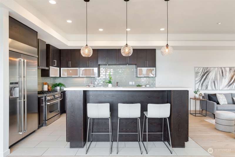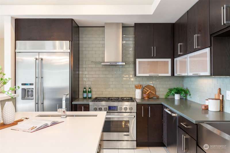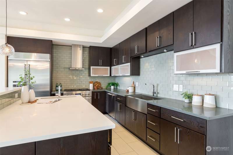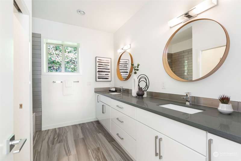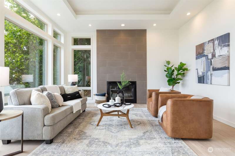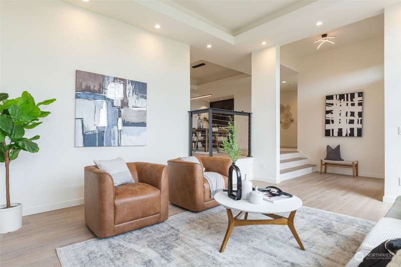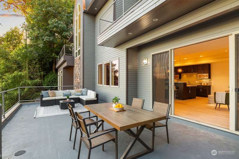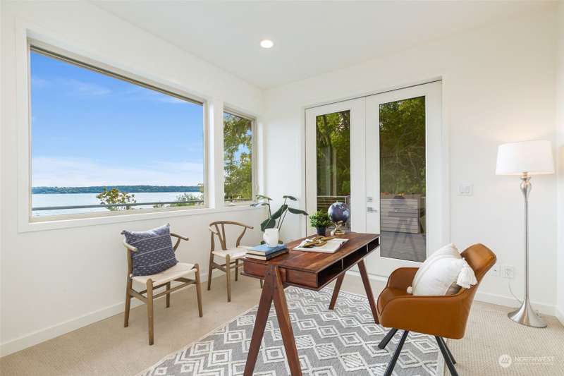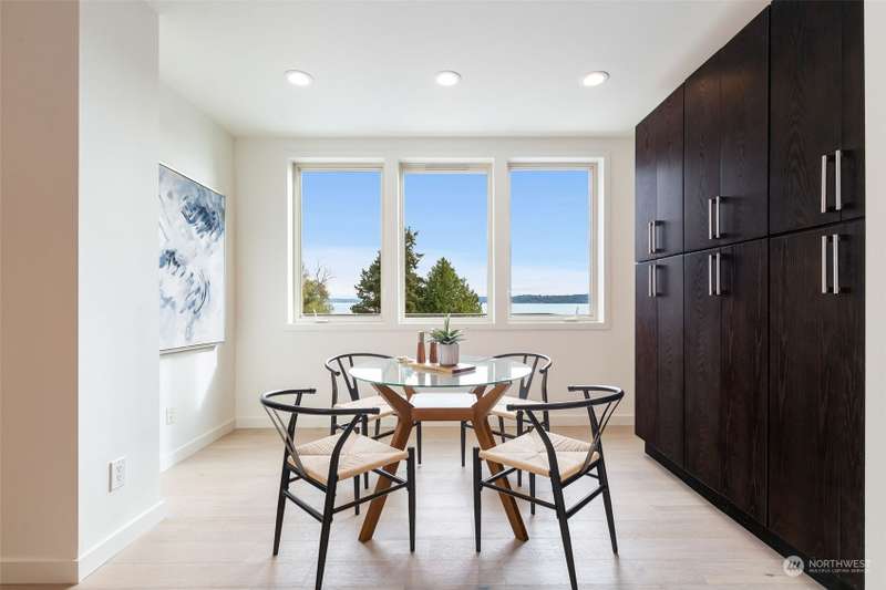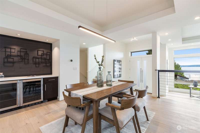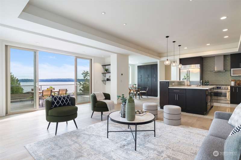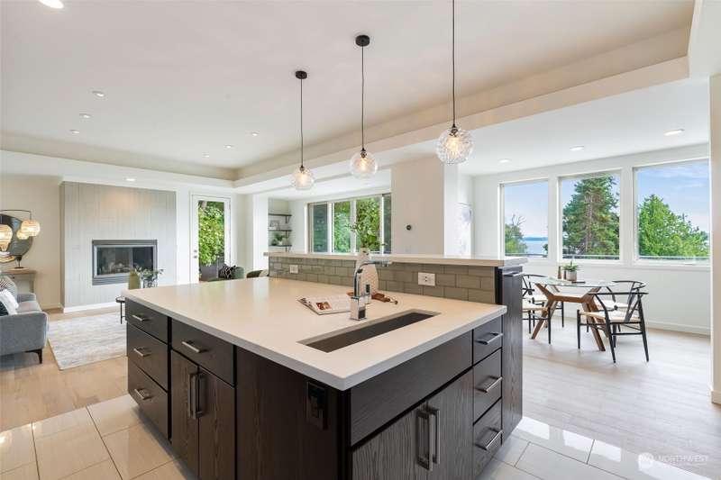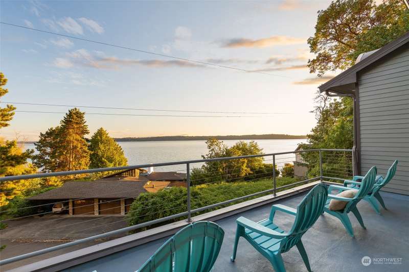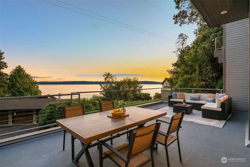 Modern construction w/endless water views abound from this West Seattle custom home. Sophisticated, refined finishes, amidst calming, quiet spaces, deliver the style & comfort you have been searching for. Situated at the end of a quiet street, the Puget Sound beckons you to bask in the sun or relish the sunset on one of the many oversized decks. Exceptional floor plan offers multiple living & entertaining spaces, all while soaking in expansive views from almost every room in the house. Generous primary suite features dual walk-in closets, soaking tub w/ water views, tiled shower & double sided fireplace. Recently upgraded w/gorgeous oak hardwoods, lux carpet, interior & exterior paint & light fixtures throughout. Tesla car charger included.