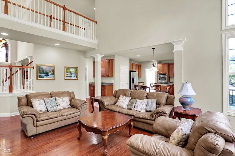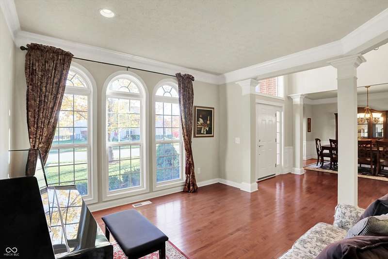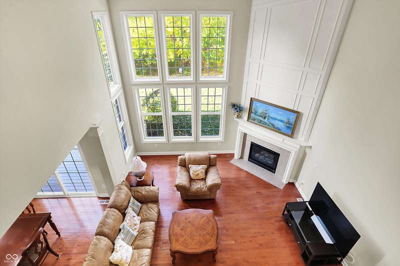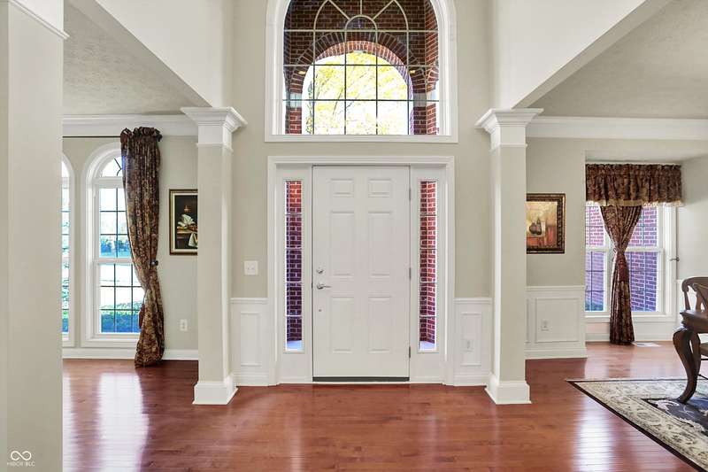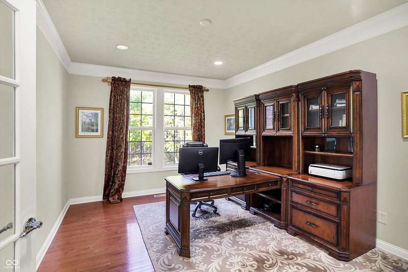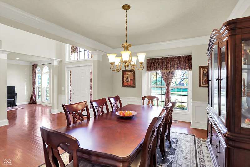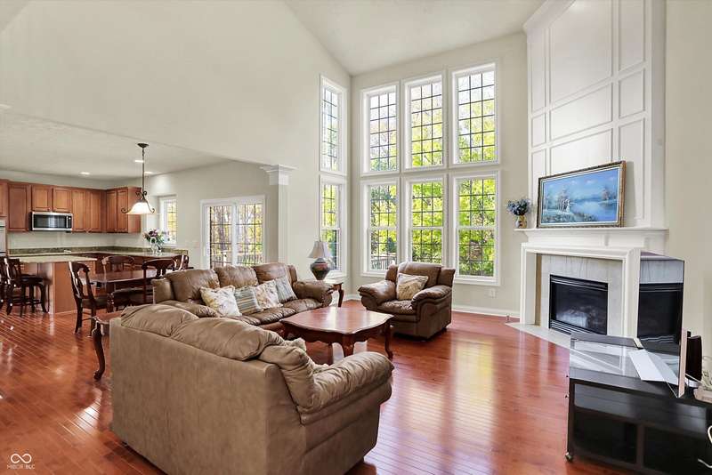Welcome to this beautifully maintained one-owner home in highly sought-after Long Ridge Estates. Situated on one of THE BEST lots in the neighborhood, this 4 bed/4.5 bath home backs to mature woods for privacy and serene natural views. Inside, you'll find solid hardwoods throughout the main level, elegant crown molding, a two-story entry, and a striking two-story great room with a gas fireplace and wall of windows overlooking the wooded setting. The kitchen offers granite countertops, a center island, stainless steel appliances, double oven, 42" cabinets, butler's pantry, and walk-in pantry. The main level also features a formal dining room with wainscoting and a charming bump-out window, a cozy living room, and a private office with French doors. Upstairs, the primary suite is a true retreat with vaulted ceilings, a spa-like bath, and a spacious walk-in closet. Two additional bedrooms share a Jack-and-Jill bath, while the fourth bedroom enjoys its own en-suite bath. The full finished basement offers 9' ceilings, a full bath, and generous space for a home theater, gym, and entertaining. Enjoy peaceful outdoor living on the maintenance-free composite deck, perfect for gatherings or quiet mornings surrounded by nature. BRAND NEW ROOF! New battery backup sump pumps (2024) and New water softener (2021). Residents of Long Ridge Estates enjoy fantastic community amenities, including a pool, playground, basketball and tennis courts, along with access to top-rated Carmel Schools.