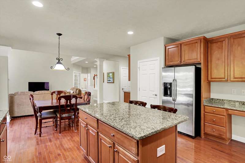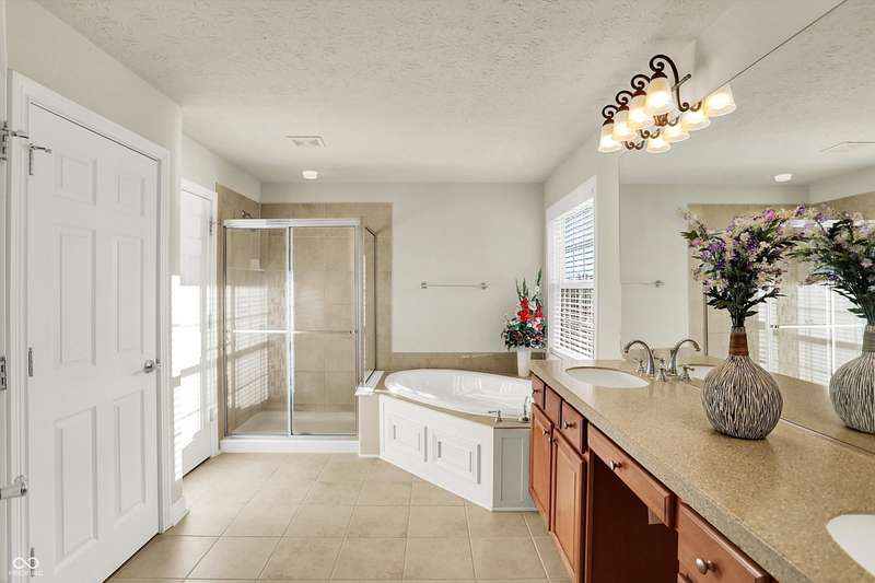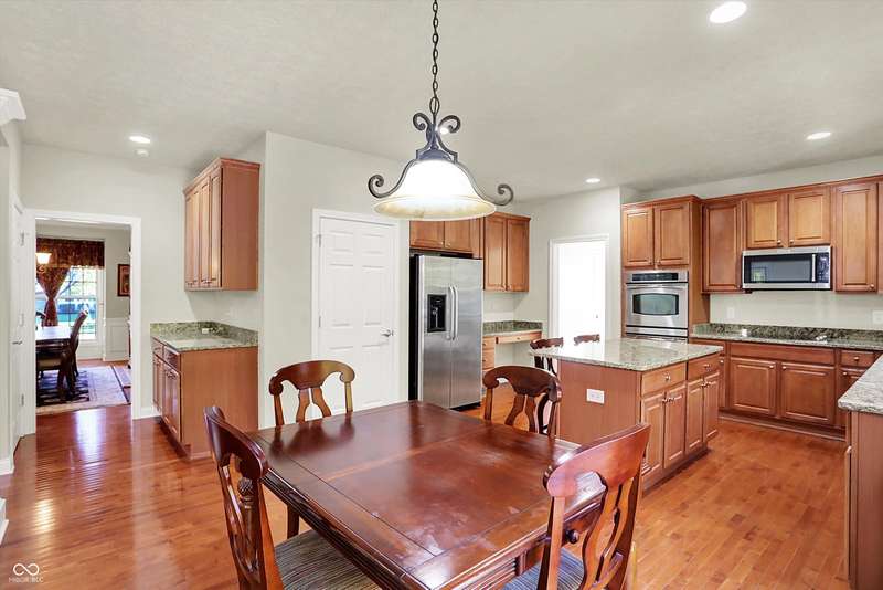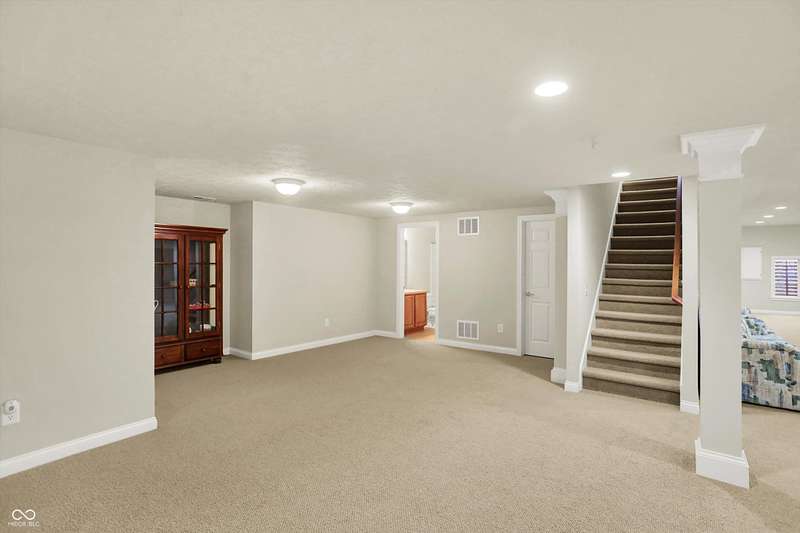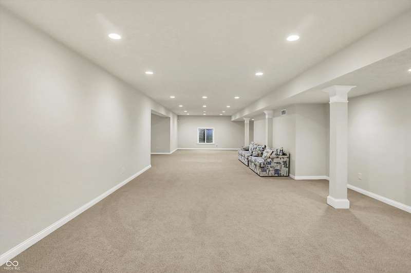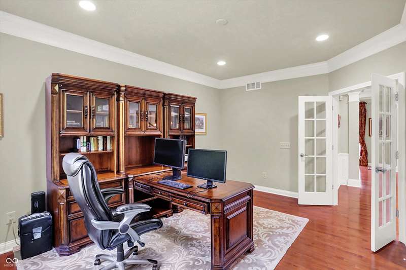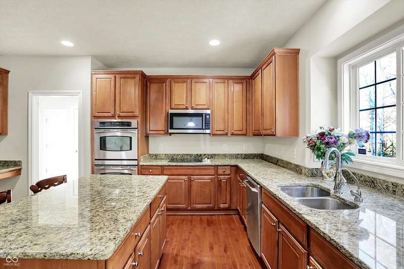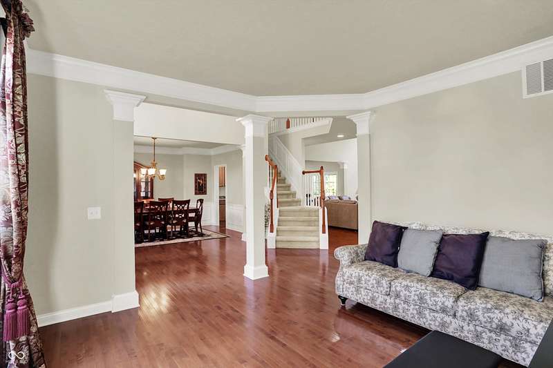 Welcome to this beautifully maintained one-owner home in highly sought-after Long Ridge Estates. Situated on one of THE BEST lots in the neighborhood, this 4 bed/4.5 bath home backs to mature woods for privacy and serene natural views. Inside, you'll find solid hardwoods throughout the main level, elegant crown molding, a two-story entry, and a striking two-story great room with a gas fireplace and wall of windows overlooking the wooded setting. The kitchen offers granite countertops, a center island, stainless steel appliances, double oven, 42" cabinets, butler's pantry, and walk-in pantry. The main level also features a formal dining room with wainscoting and a charming bump-out window, a cozy living room, and a private office with French doors. Upstairs, the primary suite is a true retreat with vaulted ceilings, a spa-like bath, and a spacious walk-in closet. Two additional bedrooms share a Jack-and-Jill bath, while the fourth bedroom enjoys its own en-suite bath. The full finished basement offers 9' ceilings, a full bath, and generous space for a home theater, gym, and entertaining. Enjoy peaceful outdoor living on the maintenance-free composite deck, perfect for gatherings or quiet mornings surrounded by nature. BRAND NEW ROOF! New battery backup sump pumps (2024) and New water softener (2021). Residents of Long Ridge Estates enjoy fantastic community amenities, including a pool, playground, basketball and tennis courts, along with access to top-rated Carmel Schools.