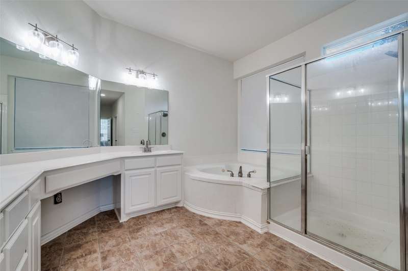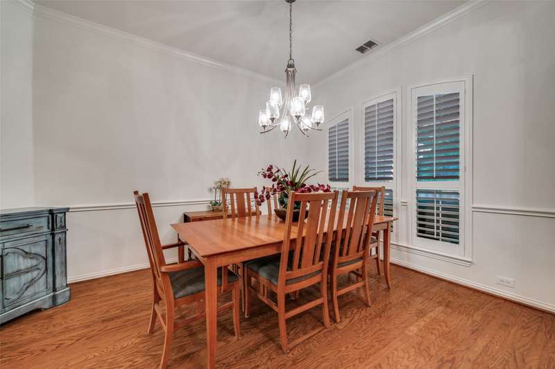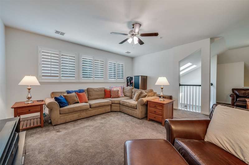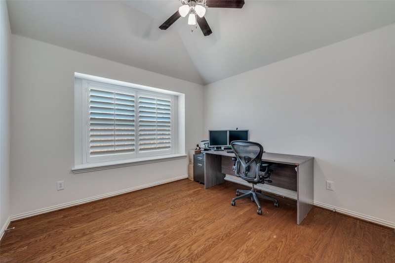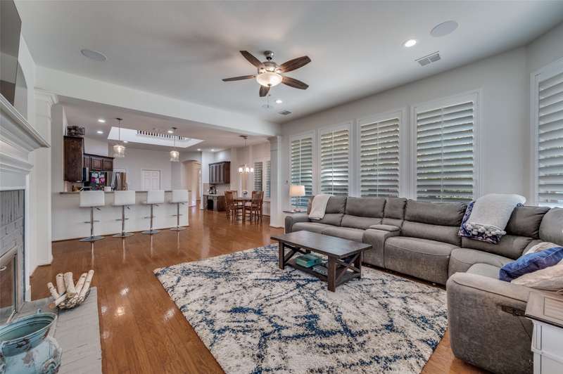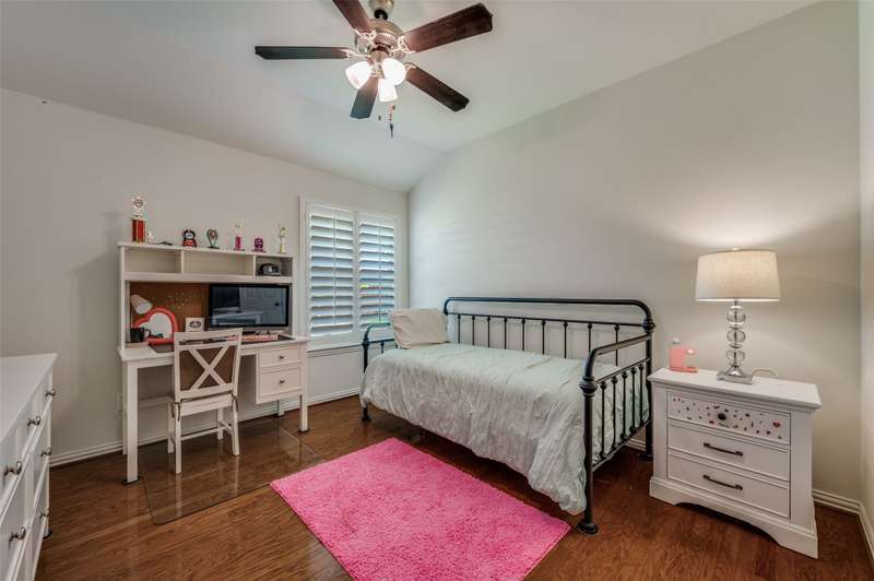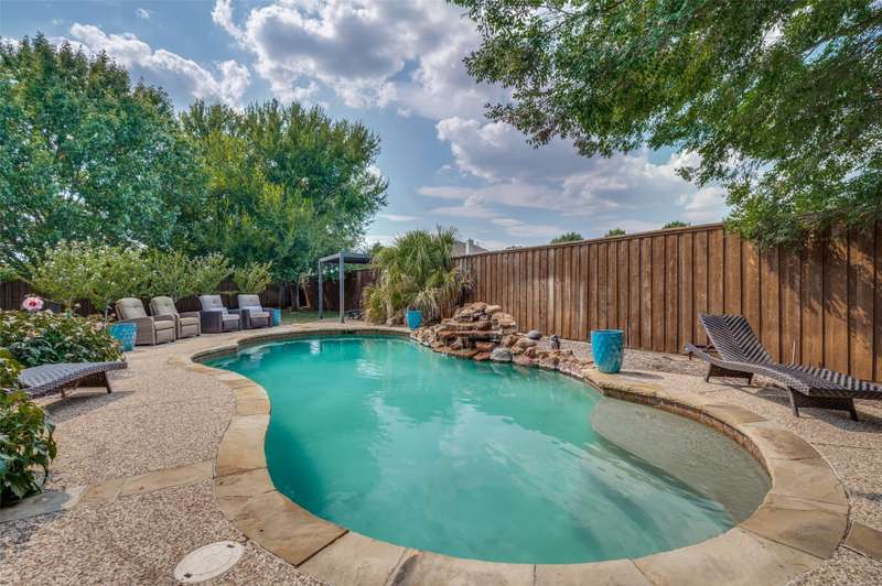 Gorgeous David Weekley home situated on nearly half an acre in the highly sought-after Willow Ridge community in Prosper! This stunning 1.5 story home offers a bright, open-concept layout with exceptional space for both everyday living and entertaining. The chefs kitchen features solid surface countertops, an oversized island with seating, stainless steel appliances, abundant cabinetry, built-in desk area, and a sunny breakfast nook. A spacious family room flows seamlessly from the kitchen and boasts a fireplace with gas logs and door, while a formal dining room, living room, and private study with French doors add versatility. Plantation shutters are found throughout the home, complemented by upgraded lighting fixtures from Lee Lighting. All bedrooms are located on the main level, including a private primary suite with a wall of windows, a large walk-in closet, dual sinks, separate shower, and soaking tub. There are three guest bedrooms and the secondary bathrooms have also been tastefully upgraded. Upstairs youll find a generous game room, dedicated media room, and convenient half bathperfect for entertaining or relaxing. Step outside to your backyard oasis featuring a pool, extended patio with pergola, lush upgraded landscaping, and expansive grass space ideal for play or outdoor gatherings. The newly added sliding back door opens beautifully to this space. Additional highlights include two foam-insulated garage doors installed in 2023, a three-car garage, a fence extension and automatic driveway gate that provide added privacy and a cul-de-sac lot. Enjoy private gated access to the community sports field located just beyond the backyard. Located in the prestigious Willow Ridge neighborhood, residents enjoy a host of amenities including a resort-style pool, playground, fishing ponds, walking trails, and scenic greenbelts. Prosper ISD schools and no MUD or PID make this an exceptional opportunity. This is the one youve been waiting for!