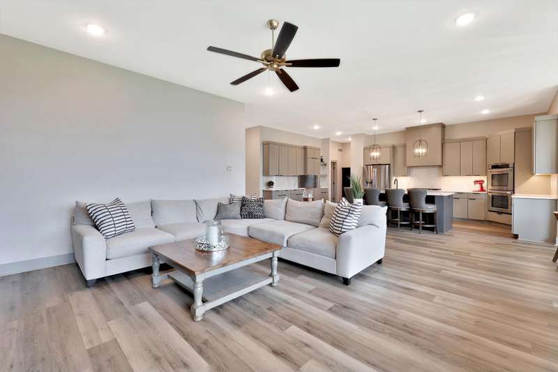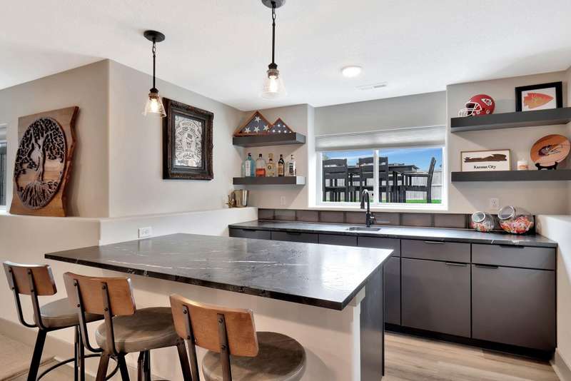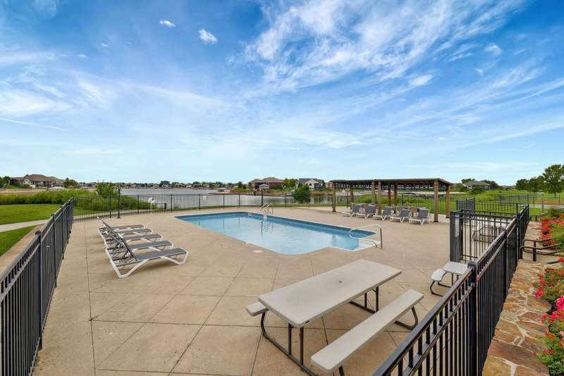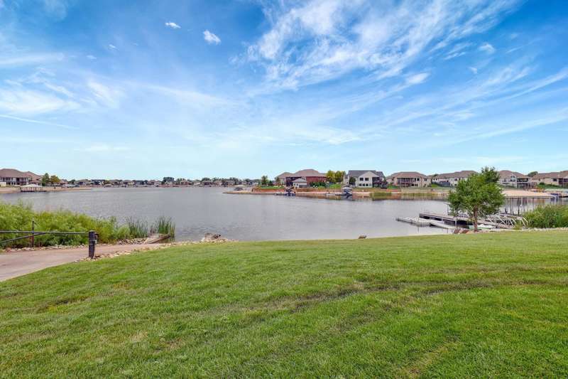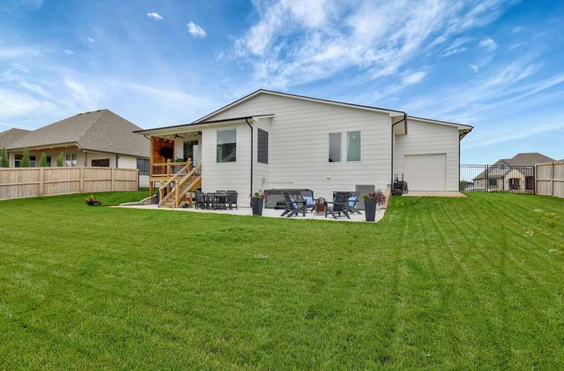 Welcome to Emerald Bay, where everyday living feels like a getaway! This stunning 4-year-old split-bedroom ranch blends modern design with the relaxed lake lifestyle youve been wanting. From the moment you arrive, the curb appeal sets the tone with crisp white paint and a striking glass front door. Once you step inside, youre greeted by light-filled spaces designed for comfort and entertaining. The main floor living room is a true focal point, with a gas fireplace framed by floating cabinets and shelves and big windows that capture views of the deck and backyard. The open kitchen makes hosting a breeze with quartz countertops, a massive island/eating bar, gas range, double ovens, walk-in pantry, and under-cabinet lighting. A spacious laundry with a sink and drop zone keeps life organized, while the primary suite feels like a retreat with its accent wall, spa-inspired shower, dual vanity, and expansive walk-in closet with direct laundry access. Downstairs, the walkout basement is ready for game nights and gatherings with a huge rec/family room, beautiful wet bar, two bedrooms, a full bath, and plenty of storage. Outdoors, enjoy evenings on the covered deck with privacy slats, relax on the patio, or take advantage of the fenced yard, sprinkler system, and irrigation well. The oversized 4-car tandem garage with rear exit is ideal for storing a boat or jet skisperfect for lake living. And what a lifestyle it is! Emerald Bays 100-acre ski lake offers boating, swimming, paddle boarding, and fishing right from sandy beaches and private docks. A nice clubhouse, pool, pickleball courts, and sand volleyball court create an incredible sense of community. Furthermore, this home sits off the water on a quiet cul-de-sacmaking it a more affordable way to enjoy all the fantastic amenities of lake living without the waterfront price tag. Located in the desirable Maize South School District with easy access to shopping, dining, and highwaysthis home proves that everyday can feel like vacation.