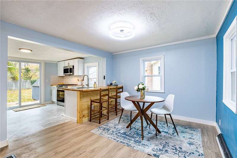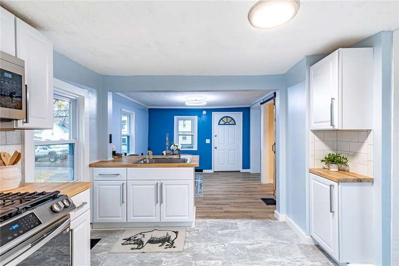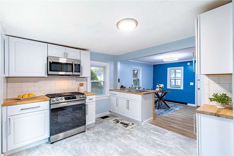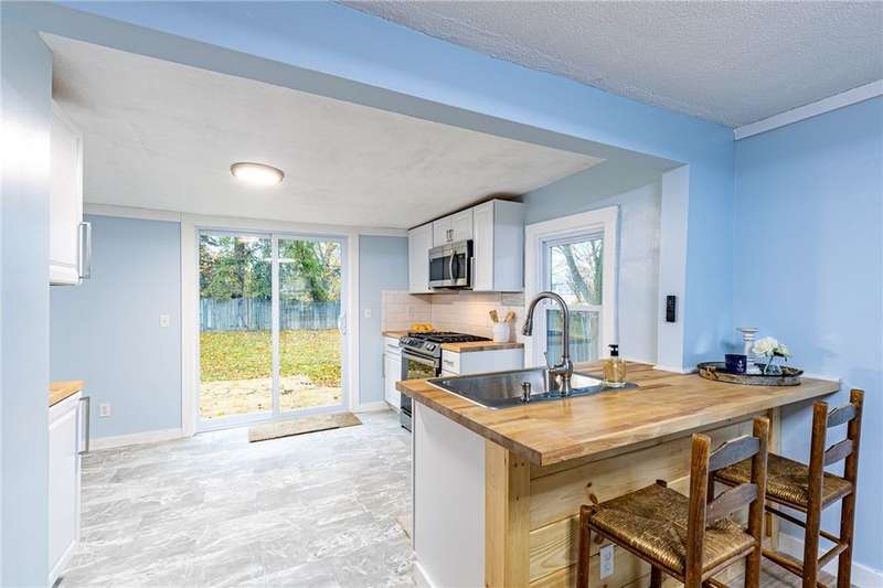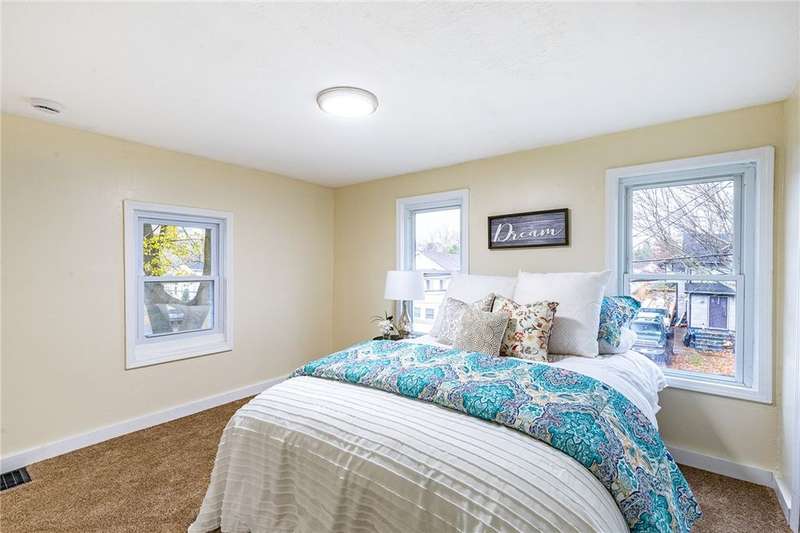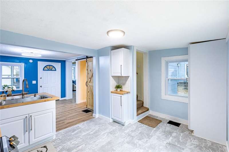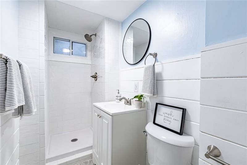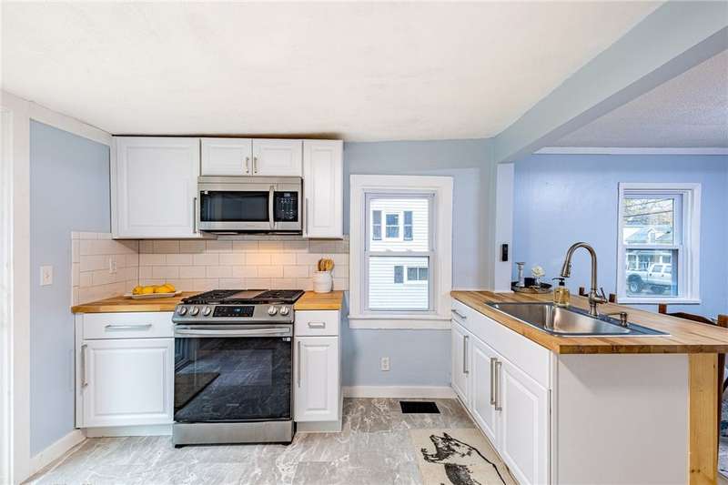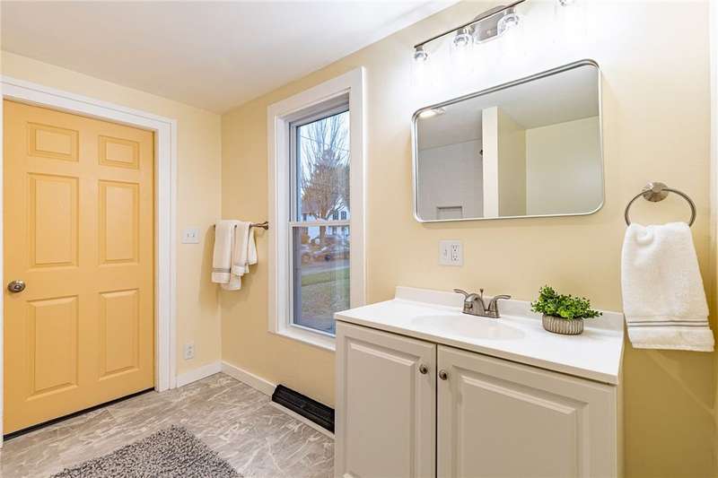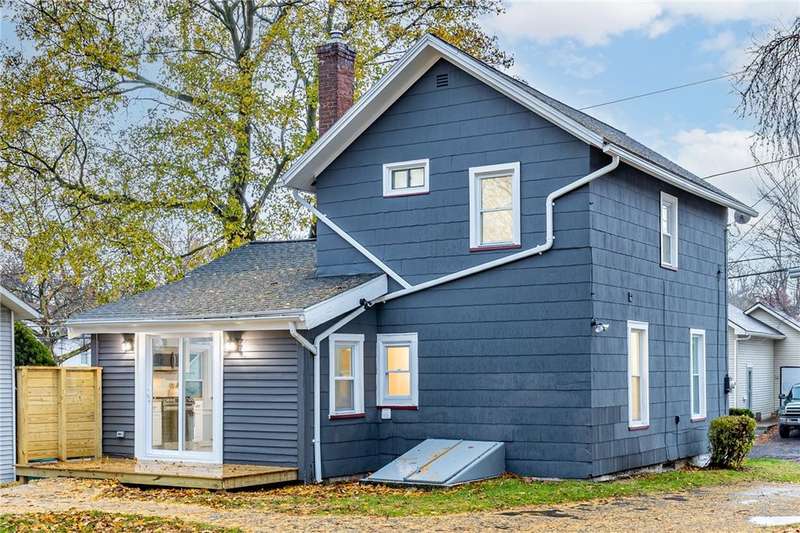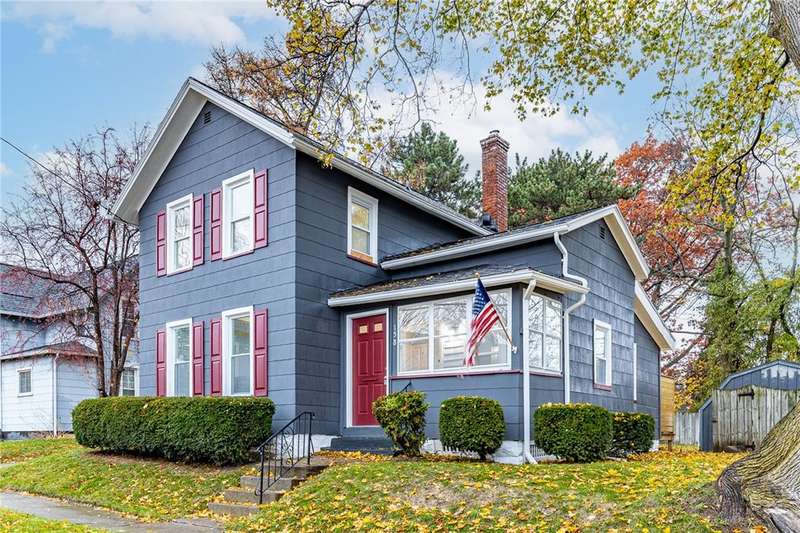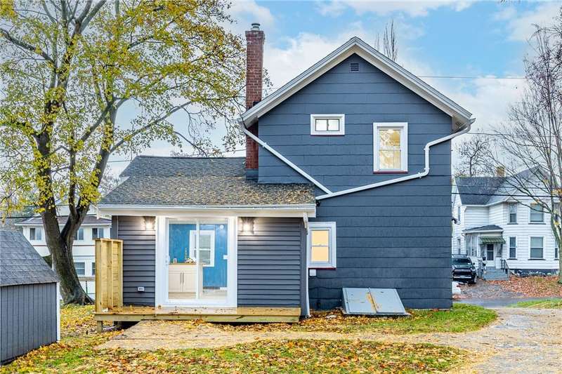 Welcome to 158 Stutson, a charming 2br with previous conversions for FIRST FLOOR Bed and full bath option! ONE YEAR HSA HOME WARRANTY PROVIDED TO BUYER AT CLOSING! Stylishly Renovated to modern tastes, this home boasts a cheery color palette, welcoming and neighborly street atmosphere, off street parking on the large driveway ready for snowy months upcoming! Close proximity to parkway for easy access to all of Rochester, minutes from Rochester Yacht club and Windjammers! Enclosed porch provides inviting entry for guests, step inside to new luxury vinyl flooring, new light fixtures, natural light pouring through vinyl thermopane?windows! To your left through the sliding barn door to?see large?Living room or first floor bedroom option- this was previously used as a first floor master suite. First floor Full bath provides Tub with new tiled shower surround and niche, new floors, vanity, freshly painted sunny walls! FIRST FLOOR LAUNDRY STEPS AWAY! Open concept dining space open?to kitchen with wood accented peninsula and bar stool seating! Impress your guests with new white cabinets and butcher block counter tops, oversized sink, sparkling subway tile backsplash! Slider overlooking large backyard, NEW Stainless Appliances STAY! Venture to the second floor to be pleasantly?surprised with two Spacious Bedrooms offering new carpeting underfoot, fresh paint and fixtures! SECOND FULL BATH also renovated and ready for your move in with crisp white tiled shower,?shiplap accent walls, new vanity & fixtues! Walk out basement with bilco doors to backyard, 100 AMP electric service, 4 YEAR OLD ROOF! So much value here for a SMALL price tag, make this home yours today!?Delayed Negotiations until 11/26 at 1PM.