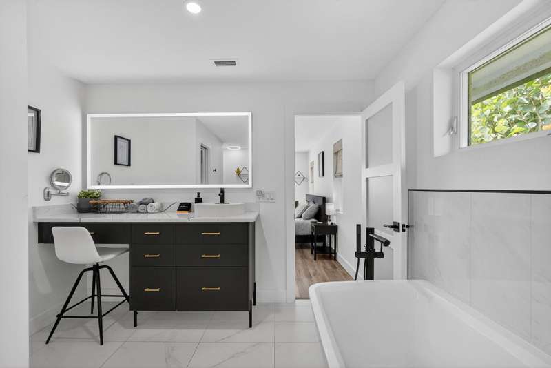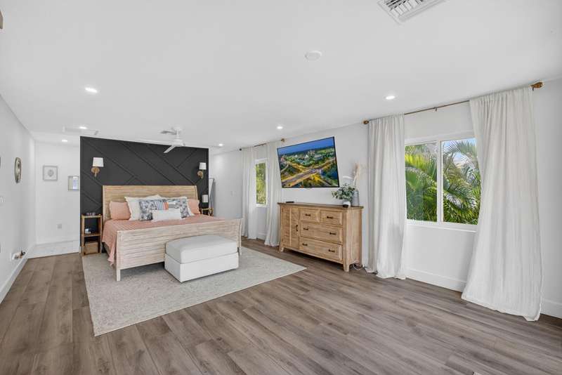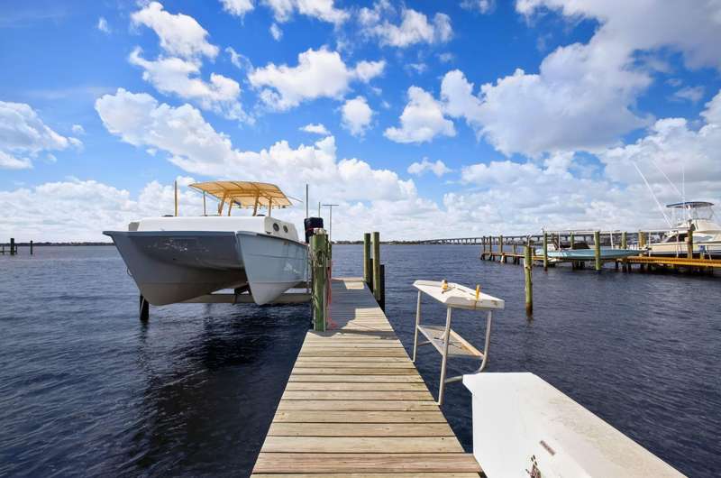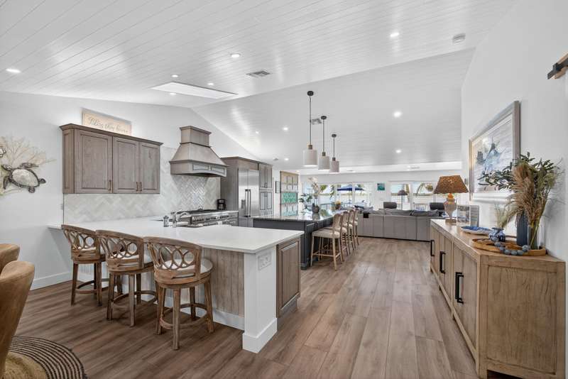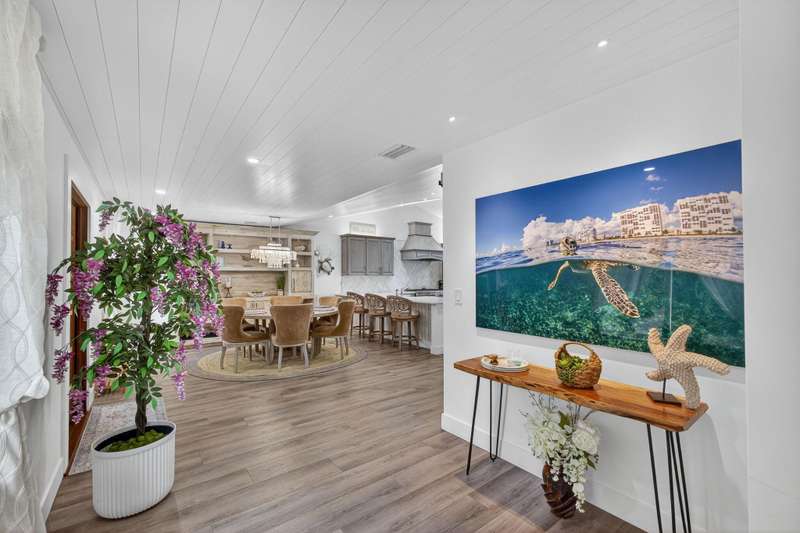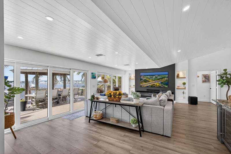 Stunning Waterfront Home With Breathtaking Views Of The Intracoastal. Step Outside & Enjoy Direct Access To Your Private Dock. Perfect For Boating, Fishing, Paddleboarding & Kayaking. This Beautifully Renovated Retreat Includes A Chef's Kitchen W/ Expansive Views Of The Water, Kitchen Bar W/ Seating For 8, Luxury Appliances & Wine Cooler. The Main Bedroom Features Water Views, A King Size Bed, TV, & French Doors Leading To The Deck. Ensuite Bathroom Features Double Sinks, Huge Walk In Shower, & Soaking Tub. The Home Also Offers Two More Guests Rooms, One W/ Ensuite Bathroom & Second Guest Room Offers A Half Bath. Laundry Room Is Equipped W/ Full Size Washer & Dryer & Dog Washing Station. Guest House Has Separate Entrance & Offers A King Bed, 2 Twin Beds & Fully Equipped Kitchen.
