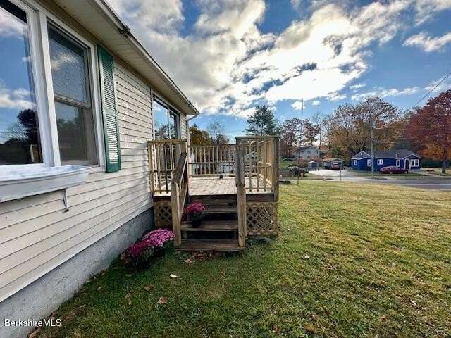 Sweet home in a desirable neighborhood minutes away from both Onota and Pontoosuc lakes. This corner lot 2 bed, 1 bath home is ready for it's new chapter. The home offers a spacious primary bedroom, eat-in-kitchen, dining area, and living room with sliding glass doors that lead out to a deck overlooking the playground across the street (Mcallister St.). Relax in the grape vine covered pergola, a cool spot in the summer. Walking distance to Capeless Elementary School.
