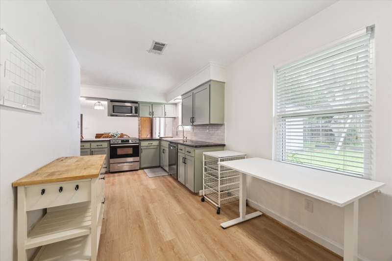 Discover this charming home featuring an open floor plan that seamlessly combines living & dining spaces for a welcoming atmosphere. The property boasts double pane windows that are attractive adding soothing natural light & offer energy efficiency. The kitchen is both functional & stylish, with a bonus space ideal for a home office or additional workspace, perfect for remote work or creative projects. The primary suite offers an extra-large extended closet, providing ample storage for clothing, workout gear, or an additional work space. Recent updates include a roof (2021), and water heater and furnace both (2020). Bathroom sewer lines were rerouted with PVC in 2024. Step outside to enjoy a recently tiled patio accessible from the family room, primary bedroom, & bonus space—ideal for outdoor entertaining or relaxing in a shaded backyard. This property combines great floorplan with practical features, making it an excellent choice for comfortable living. No carpet is a plus! Per Seller