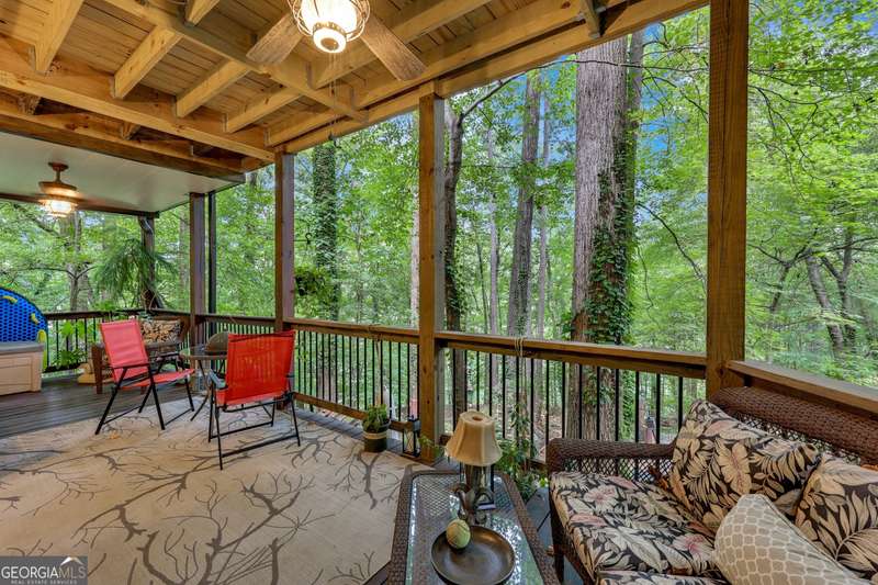Experience tranquility and the feeling of a daily vacation in this warm and inviting lakeside home with a private, single slip dock with a party deck. Welcome to this beautifully maintained 3 bedrooms, 4 baths lake home with 2 covered decks, a finished basement, new roof (2025), gorgeous landscaping, and peaceful lake views where your dream, lakefront lifestyle becomes a reality. The charming gourmet kitchen features a slate floor, granite countertops, custom cabinetry, an island with a maple countertop and bar sink, a 4 burner gas range with griddle, a cozy breakfast area, and a roomy pantry, making it a chef's delight. The adjacent dining area provides the perfect setting for both intimate family dinners and festive gatherings with friends. The family room invites relaxation with its cozy stone gas fireplace, built-ins, and doors that open onto a covered wrap around deck-perfect for summer barbecues, and outdoor entertaining. The main level also boasts a luxurious primary suite with 2 spacious closets, a spa-inspired ensuite bath with a 5 head shower, an elegant, clawfoot soaking tub, and a custom window. An additional guest bedroom and adjoining full bath will comfortably accommodate weekend guests or family. Upstairs, a full bath and a versatile flex area provides ample space and storage for family, guests, or a home office. The finished basement offers even more living area, additional office space, along with a convenient, large laundry room, full bath and a second covered deck. The double car garage contains a work bench and shelving for tools and hobbies. The outdoor living spaces are truly exceptional. A stone and timber lined path leads to your private single slip dock with a party deck, including power, where endless adventures await. The shoreline has been enhanced with rip rap. You're enjoy the peace of the quiet cove. Once the day is over and you're making your way to your lake home, you'll appreciate that the path is lit with solar and electric lighting. You'll love to gather around the firepit area as you relive the memories of the day. Thoughtfully landscaped gardens burst with color throughout the seasons, while mature trees offer shade and privacy. Life on Lake Lanier is about embracing a lifestyle of relaxation, recreation, and connection. Spend your days swimming, fishing, or boating to the nearby restaurants. Host unforgettable gatherings on your deck, or enjoy quiet evenings by the fire. Whether you're seeking a year-round residence, a seasonal retreat, or a legacy property for generations to come, this lakefront home is your perfect math. New Gangplank on order for dock. Boat is negotiable with strong offer. Schedule a private tour today.