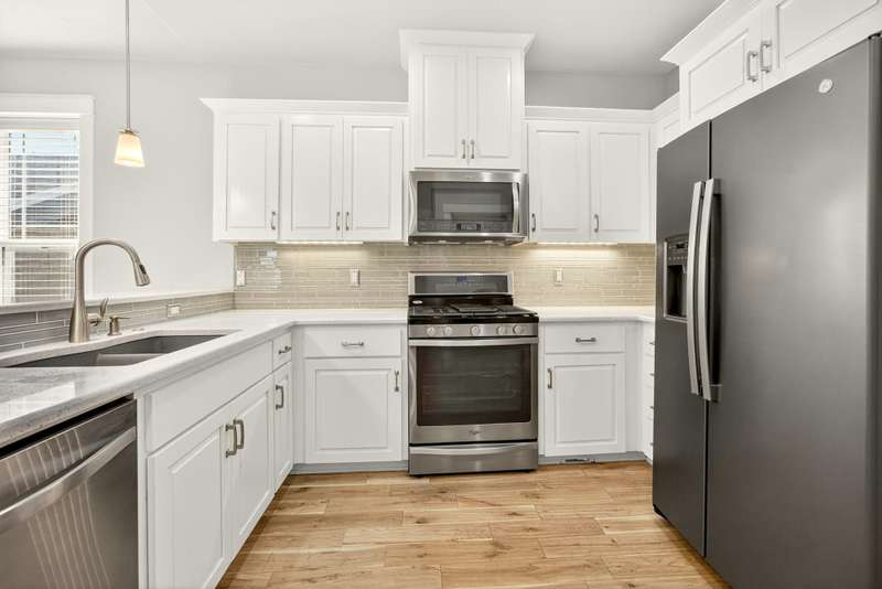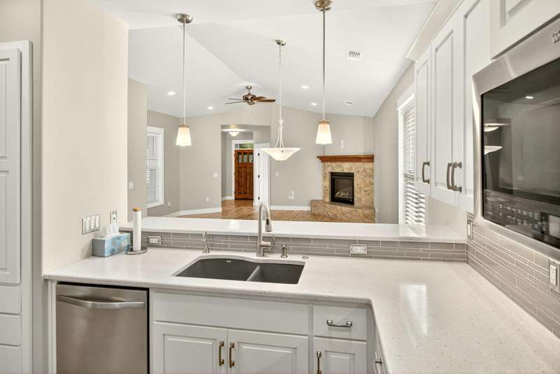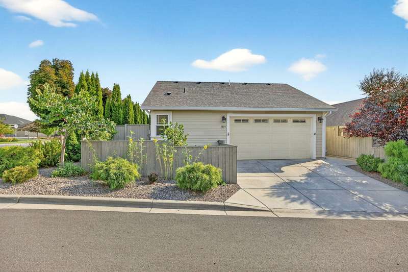 Super curb appeal from this craftsman style Summerfield cottage located on a desirable comer lot. This charming one-level residence offers an open floor plan with beautiful hardwood floors throughout, creating a warm and inviting atmosphere. The kitchen features white painted cabinets and beautiful quartz countertops, creating a clean look. The spacious master bedroom includes a double vanity bathroom with tile floors, large tile walk-in shower and walk-in closet. Both the master and guest bathroom have a walk-in shower. Thoughtful upgrades include a convenient Murphy bed in the guest room, central vacuum system, and low-maintenance artificial turf. Enjoy the outdoors with a spacious pergola and extra-large concrete patio, perfect for entertaining or relaxing. There are no steps from the garage into the home. The refrigerator, washer and dryer are included in the sale.