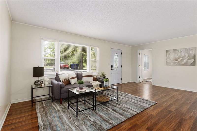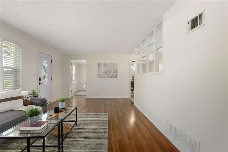 Step into this stunning home that's open, bright, and filled with natural light throughout. The spacious living room and formal dining area showcase beautiful wood floors that continue into the roomy bedrooms, creating a warm and inviting atmosphere. The open kitchen is perfect for cooking and entertaining, while the walk-in handicap tub offers comfort and ease of bathing. Enjoy peace and privacy in the large, fenced-in backyard with no neighbors behind-your own private retreat!
