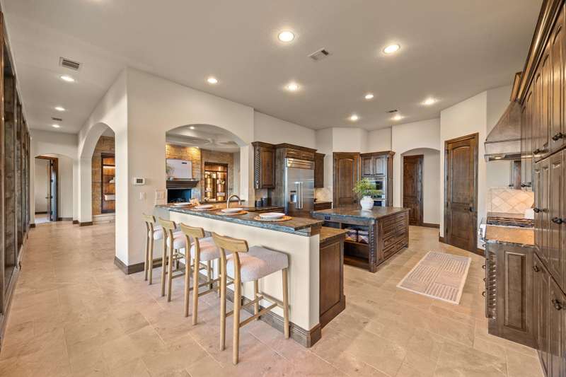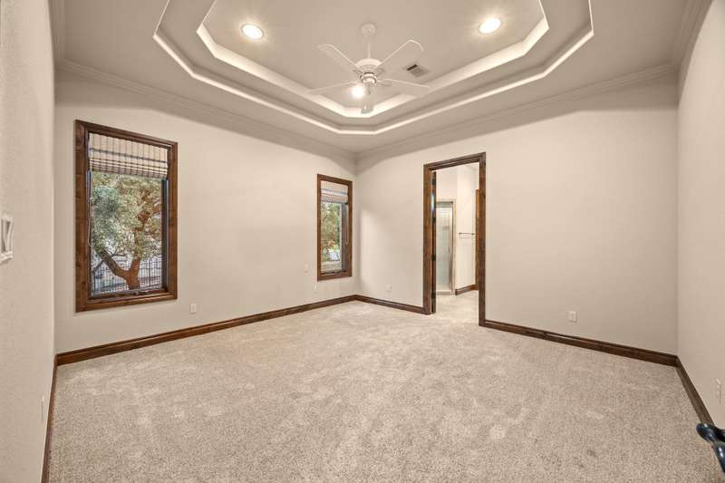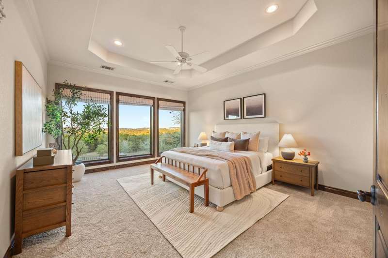 Stunning single-level home in Verano within Barton Creek, set on 1.28 acres backing to a greenbelt with beautiful Hill Country views. This 4,830 sq ft traditional-style residence offers 4 beds, 4.5 baths, a dedicated office, flex room, and a versatile fourth bedroom that also works perfectly as a media room. Gourmet kitchen with Thermador and KitchenAid appliances. Spacious open living areas with abundant natural light. Three-car attached garage and ample room on the property for a pool. A rare combination of privacy, views, and luxury just minutes from Barton Creek amenities.