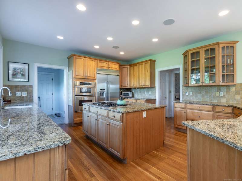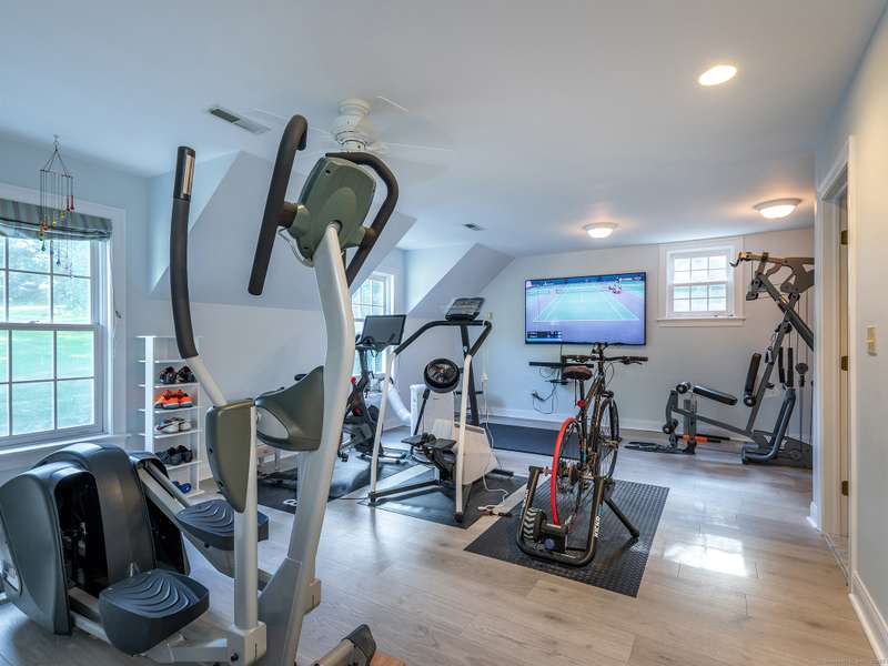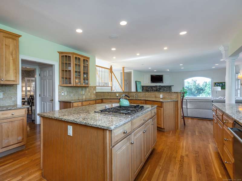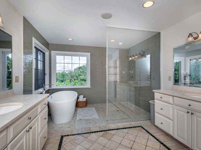 Lovely well maintained colonial just minutes to town. The dramatic double height entry invites you into the main living area which opens to the stunning luxury kitchen and sunny breakfast nook. The living room boasts a stone fireplace flanked by a picture window for enjoying sunset views. The main floor is completed by an addl den/media room and a formal dining room. Upstairs the primary suite hosts an inviting office space, dressing room, walk in closets, and a spacious bath with walk-in shower. The 2nd and 3rd bedrooms have their own ensuite baths (the 3rd bedroom is currently used as a gym). The 4th bedroom has a hall bath. The lower level includes a game room and a flex bedroom with addl full bath. Driveway is lined with day Lilies and Hosta which leads to 3 car attached garage. Great proximity to Waterbury Hospital and just 15 minutes to I-84 for commuting. The chic weekend destination of Washington is only 12 minutes away. Both Woodbury and Washington enjoy extensive fine dining,