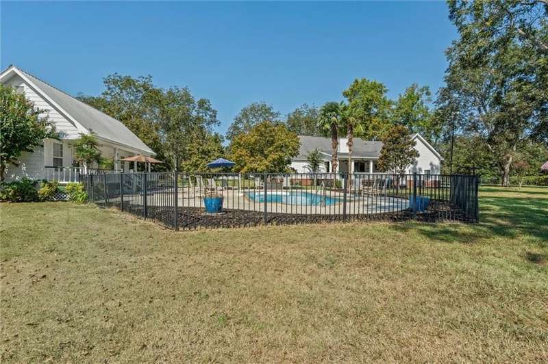 The white vinyl front fencing welcomes you to an elongated driveway reaching an absolute dream home with an additional 2/1 pool house, which could be an in-law suite or home office/work out space awaits you.So many possibilities! Custom built, one-owner home on 2.25 acres of pecan orchard (20+/- bearing pecan trees). Beautiful 4-bedroom, 3-bathroom home with office, open floor plan. 2 walk-in closets in primary bedroom with double marble vanities, (in primary bathroom), walk in showers and separate tub. The gourmet kitchen has a beautiful backsplash, granite counters, built in appliances. Huge breakfast bar overlooking kitchen and over-sized eating area, adjacent to the large living area with fireplace. The living space, which has a built-in wet bar with cabinets and ice maker, opens onto a huge covered back porch with built in heaters. Wonderful porch overlooks the aluminum pool fencing to give it a wrought iron look.The pool liner is 3 years old (per seller) and has an upscale cover for cooler months. Large patio area surrounding pool leads to the pool house cottage. The oversized double garage opens to the side and has extra space for storage. The huge (40'x30') barn/workshop on a slab is adjacent to the tall RV carport. Whole house generator, tall smooth ceilings, special tray ceilings, crown moldings, chair rail, 6 built in TV's, termite bond, and NO HOA! Just minutes to I-10, shopping, restaurants, schools, and everything you need. Buyer responsible for verifying all measurements and relevant details.