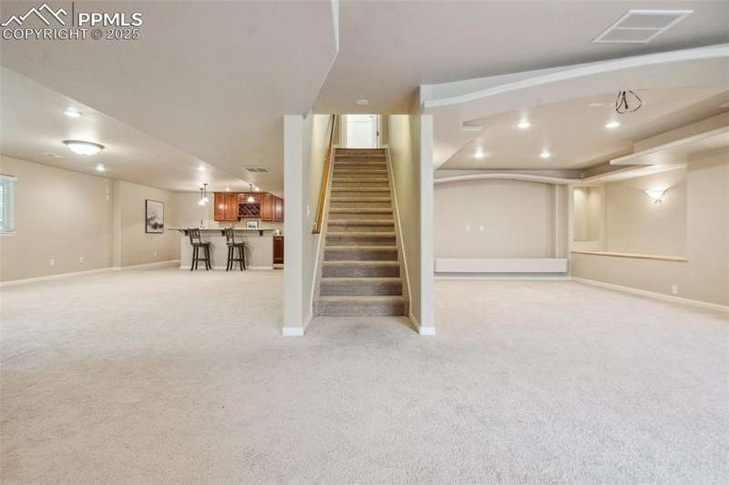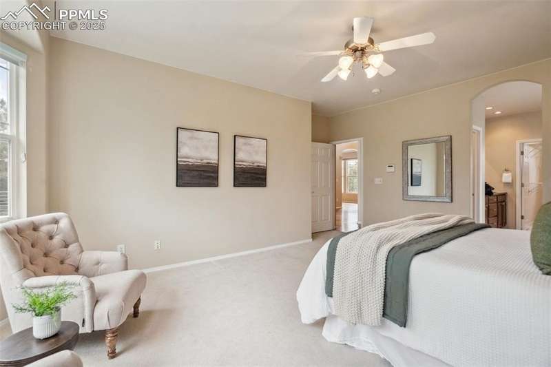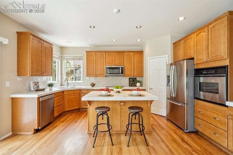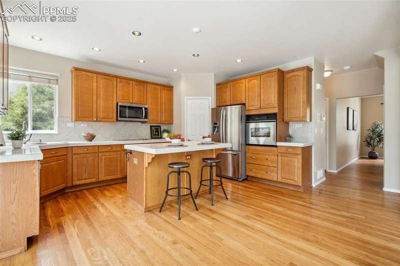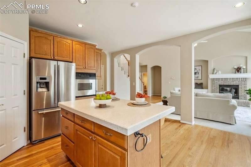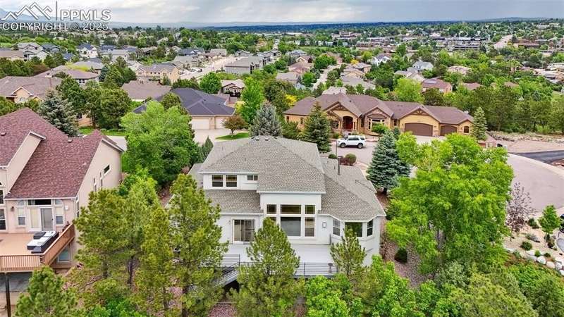 Welcome to one of the most desirable neighborhoods in town, known for its winding trails, lush landscaping, mature trees, & easy access to parks, shopping & dining. Tucked at the end of a quiet, highly desirable cul-de-sac, this spacious 2-story home offers a rare opportunity to enjoy the best of the community in a home full of potential & charm. Step through the front door & you’re greeted by a dramatic double-height entry & sweeping staircase. Beautiful natural hardwood flooring spans the main level, where you’ll find a thoughtfully designed layout with soaring ceilings, large windows & a bright, open feel throughout. The formal dining room features elegant crown molding & generous natural light, while the dedicated main-level office, with glass French doors, is the perfect work-from-home retreat. The open-concept kitchen & great room are ideal for entertaining, offering a cozy gas fireplace with decorative brick surround, a large kitchen island, pantry, stainless steel appliances & direct access to the show-stopping composite deck—plumbed for gas & nestled in the treetops for a peaceful, private feel. The main-level primary suite is oversized & serene, offering stunning views, a luxurious 5-piece bath & a walk-in closet. A convenient half bath & laundry room complete the main floor. Upstairs you’ll find a large loft area, two well-sized bedrooms & a full bath. The walk-out basement offers even more living space, including a large family room with stylish wet bar, a flexible bonus space perfect for movie nights & an additional bedroom or office with French doors and a closet. A third full bath with walk-in shower adds extra convenience. Outside, you’ll appreciate the stately stucco & brick exterior, mature trees, decorative rock & plantings & the welcoming covered front porch. Whether you're drawn to the floorplan, the exceptional location, or the chance to personalize a home in one of the city’s most sought-after communities—this home is the perfect choice!