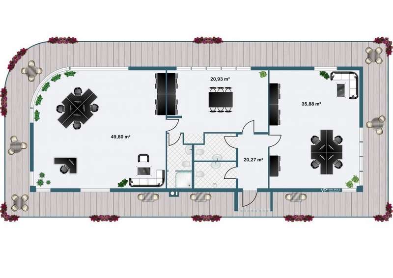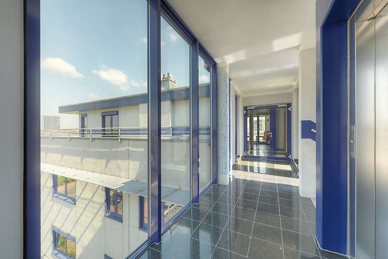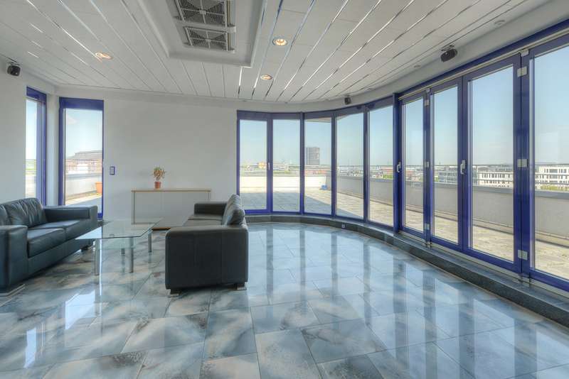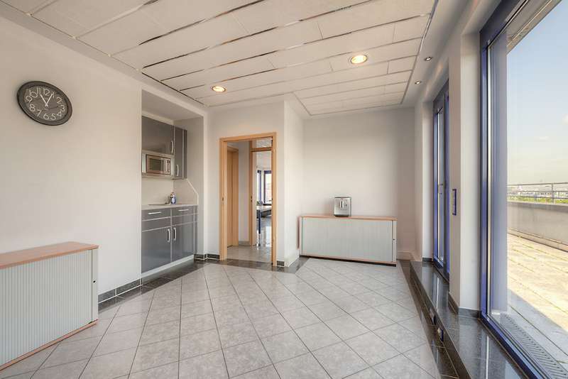 The prestigious office building was built in 2003 in solid construction on a plot of approx. 2,308 m² in a prime location in the middle of Oberhausen's central belt. The impressive and barrier-free space is located on the 4th floor and can be easily reached by elevator. The space covers approx. 136m² and offers you and your customers a unique view over Oberhausen! Two offices, a separate reception area, two customer WCs and a bathroom with shower offer a wide range of possible uses. The special highlight is the 200m² surrounding roof terrace, where you can receive your customers undisturbed. A parking space can be rented for €40, subject to availability. The vacant space is available from 01.04.2026, e.g. for service companies, doctors, law firms, start-up companies and much more.