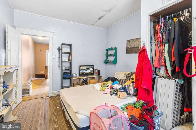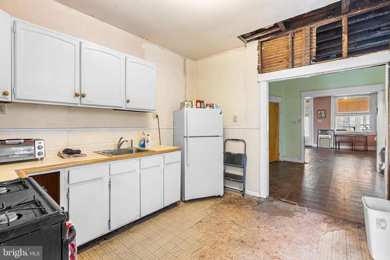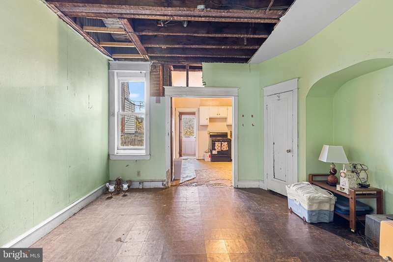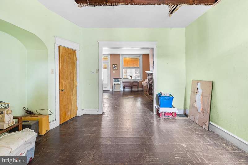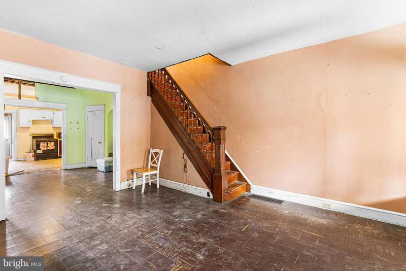 Opportunity knocks in this spacious Harrowgate rowhome with tall 9-foot ceilings and solid bones. This home is ready for someone to unlock its potential, whether through a thoughtful renovation to live in, a modest cosmetic update to rent, or a value-add investment. Original architectural details add character throughout, including the front double entry doors crafted in solid red oak with tall glass panels and brass hardware-perfectly poised for restoration. Inside, the main floor offers generous width and high ceilings, ideal for reimagining the living spaces. The rear patio, approximately 170 sq. ft., invites creative landscaping ideas. Upstairs features three large bedrooms, two of which connect through a charming Quaker-style door, plus a full bathroom. The big kitchen flows into a rear mudroom/laundry area, offering functional space for modern living. The basement has solid joist seating, ready to support your renovation plans. Harrowgate is an emerging neighborhood where early 20th-century Philadelphia architecture is being rediscovered and restored. The community is active and engaged, with local initiatives improving public spaces and fostering a strong sense of place. Conveniently located near Aramingo Avenue shopping, public transit on Frankford and Castor Avenues, the Tioga Station of the Market-Frankford El, I-95 access, and within walking distance to Walmart and Target. Nearby 3-bedroom homes that have been updated rent for around $1,500/month, and recently renovated properties within a quarter mile have sold in the $185,000-$215,000 range, demonstrating both rental and resale potential. This is a home for someone with vision-whether to create a comfortable personal space, generate rental income, or make a modest renovation that adds value. Potential is the key word.