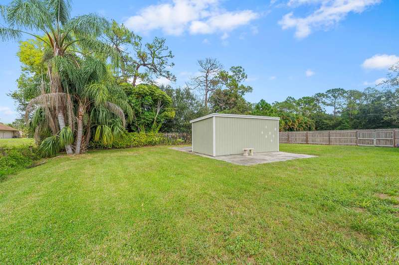 Set on more than half an acre in Palm City, this property offers both space and privacy with a fully fenced yard and a welcoming circular driveway.Inside, the home has seen major updates within the last three years, including fresh vinyl plank flooring throughout the main areas and new carpet in the bedrooms. The kitchen features granite countertops, combining durability with a clean, timeless look.The layout is comfortable and practical, with updates that make the home move-in ready. A dedicated shed adds extra storage for tools, lawn equipment, or seasonal items, keeping the interior clutter-free.Outdoors, the large lot gives plenty of room for gardening, play, or simply enjoying the open space, all secured within the fenced yard.
