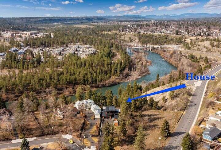 Spokane River! Riverfront—1.7 Acres, Fly Fish! Mesmerizing Sunset Views. This is Amazing—3 Minutes to Downtown Spokane—Historic Neighborhood BUT This is a 2023 Built Architectural Designed Modern Custom Home. High-End Finishes, Open Floor Plan-8’ Sliders Open 7’ Brings the Outside In… Floor to Ceiling Stone Gas Fireplaces--Beamed Tall Ceilings. All Floors are Heated. Chef’s Kitchen Induction Cooktop with Quartzite Massive Island (Piece of Art!). Cool Snazzy Lighting. Butler’s Pantry—Sink & Counterspace! Office-Again the View! 2nd Bedroom on Main Floor—Flex Space…T.V. Room—2nd Office, Gym. Primary Up—It’s a WOW Factor. Private Views, Exit to Covered Deck with Hot Tub—Enjoy the Skies. Massive Closet (Bigger Than Most Bedrooms—3 Sided Racks & Central Island). AND THE ADU—Totally Separate (Legal to Rent)—Its Own 2 Car Garage. Yard Entirely Fenced. Elegant Dog Fencing with Electric Gate. Property Fronts on Centennial Trail. 40 Mile Path (Paved). Total 5 Car Garage Parking. Solar!! NET ZERO ELECTRIC.