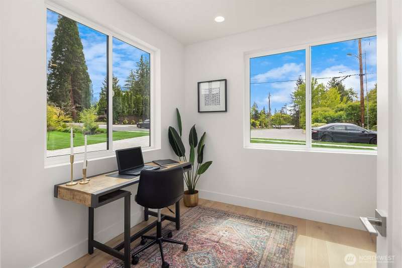 ID Construction Group presents this new construction Kirkland home. Enter into main floor with thoughtfully designed mudroom for ultimate organization. Great room offers large gas fireplace, chef's kitchen with bespoke matte quartz counters, and access to landscaped yard with patio. Private office completes this level. Upstairs, find your family/bonus room, two additional bedrooms & full bath, plus dedicated laundry with included w/d. Expansive primary suite includes ample room for king bed, two walk-in closets & full bath with heated floors. 2-car EV-ready garage. Near to Juanita lakefront parks & McAuliffe Park, plus top-rated Lake Washington School District, & just 10 min to Totem Lake Village.