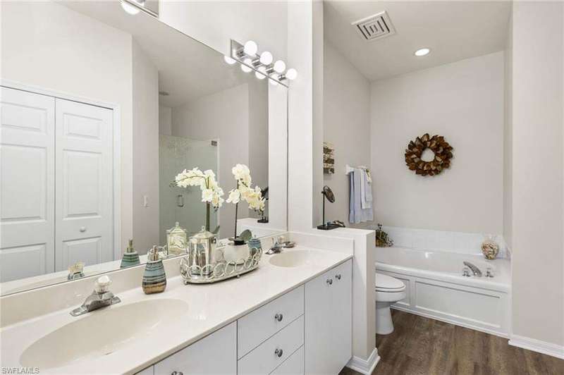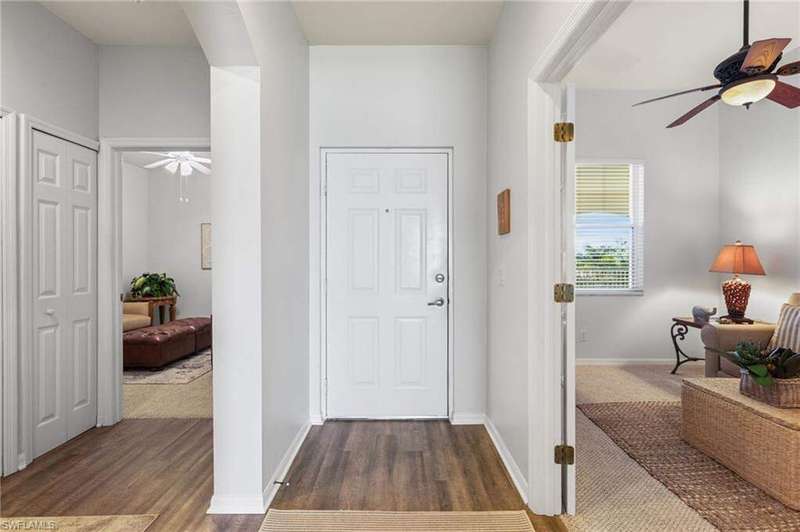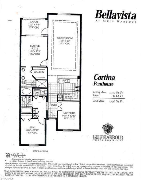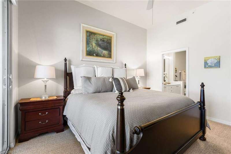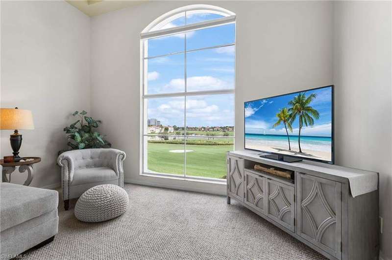 Your TURNKEY PENTHOUSE retreat awaits! Experience resort-style living in this stunning 2-bedroom + den, 2-bath condo in the highly sought-after Bellavista neighborhood of Gulf Harbour Yacht & Country Club. This top-floor CORTINA floor plan offers over 1400 sq. ft. of elegant living space with soaring 11-foot ceilings, double tray ceilings and breathtaking views of the 16th fairway and the shimmering lake beyond. The open-concept design is ideal for entertaining, featuring a kitchen with granite countertops, a breakfast bar, and stainless steel and white appliances. Enjoy the perfect balance of comfort and style with luxury vinyl plank as well as carpeting in the main living area, creating a warm, inviting atmosphere. The primary suite is a peaceful haven with an ensuite bathroom with a separate walk in shower with a seamless glass enclosure and a lovely garden tub. The primary suite also offers private lanai access - the perfect place to relax with your morning coffee or unwind after a day on the course. A split floor plan ensures privacy for guests, while the den offers flexibility as a home office or additional bedroom. Additional highlights include: Top-floor location for added privacy and panoramic views Overszed two-car garage providing convenience and extra storage Screened lanai overlooking the golf course and lake Gated, 24-hour security for peace of mind Turnkey furnishings available for immediate enjoyment Private memberships are available for separate purchase and provide access to Gulf Harbour's world-class amenities: golf, marina, tennis, fitness center, spa, and dining. Don't miss your chance to enjoy the Gulf Harbour lifestyle in this beautifully maintained, move-in ready home!