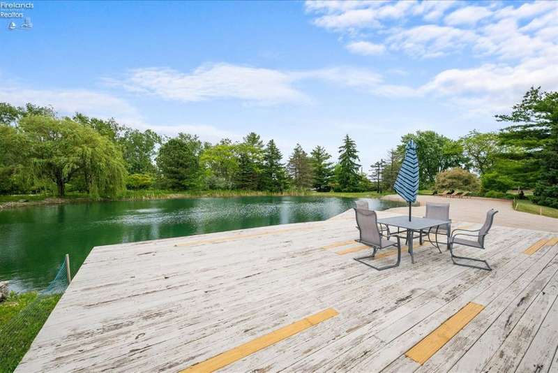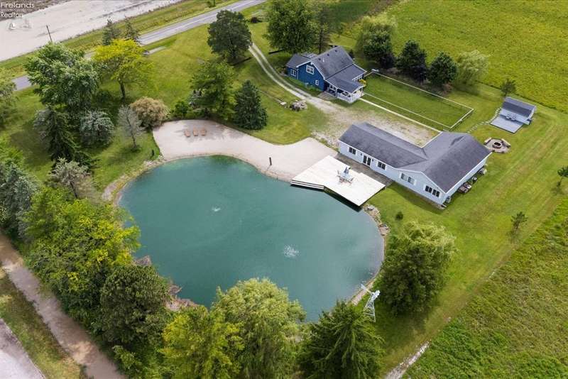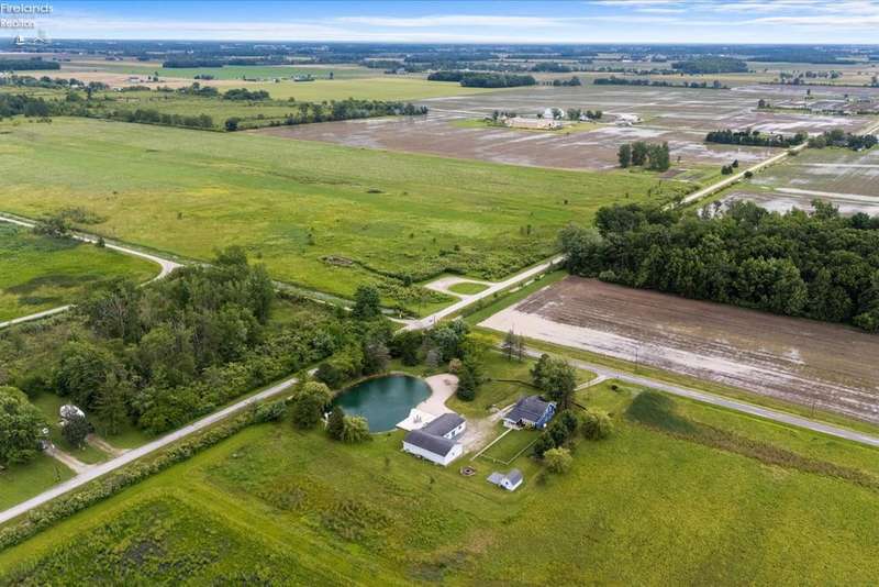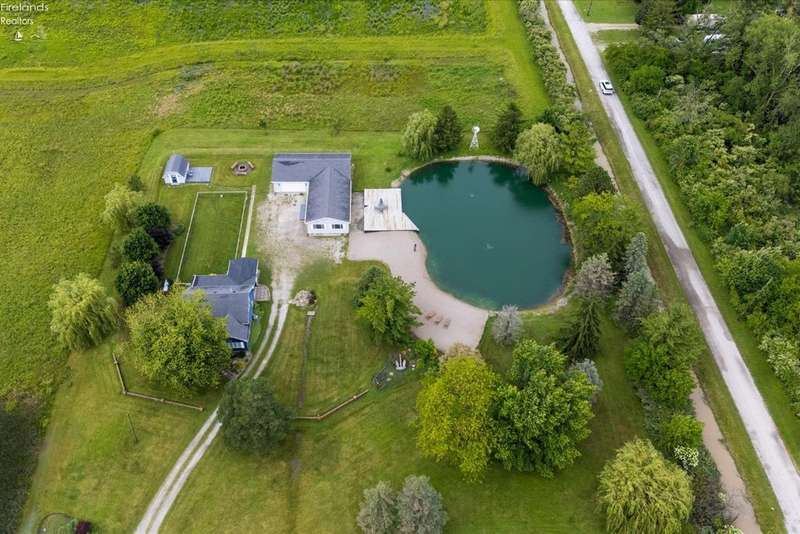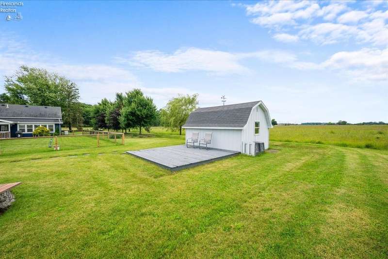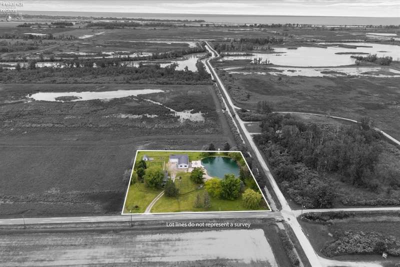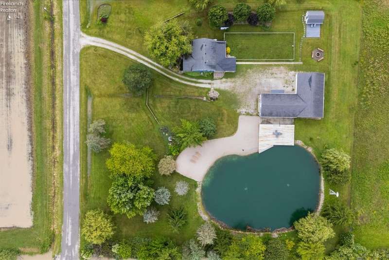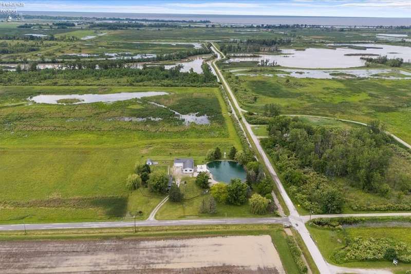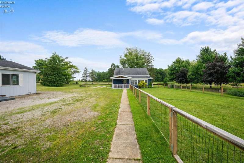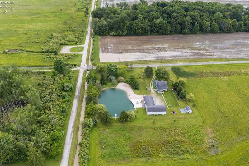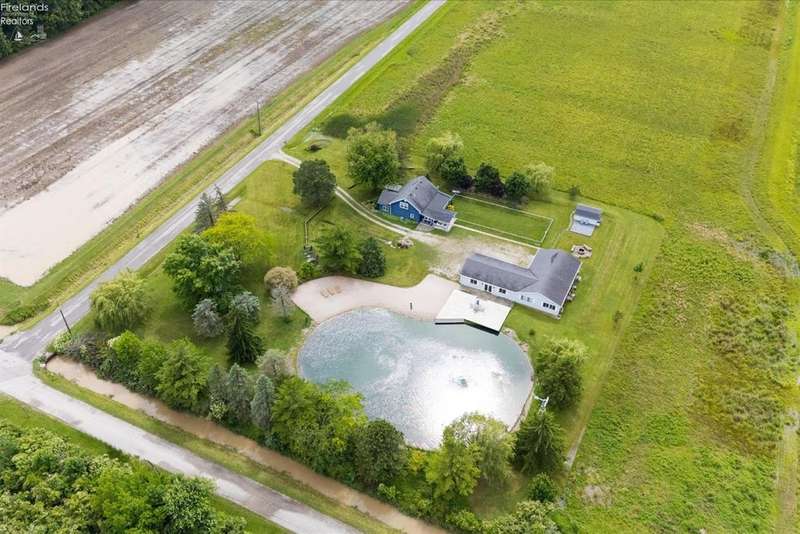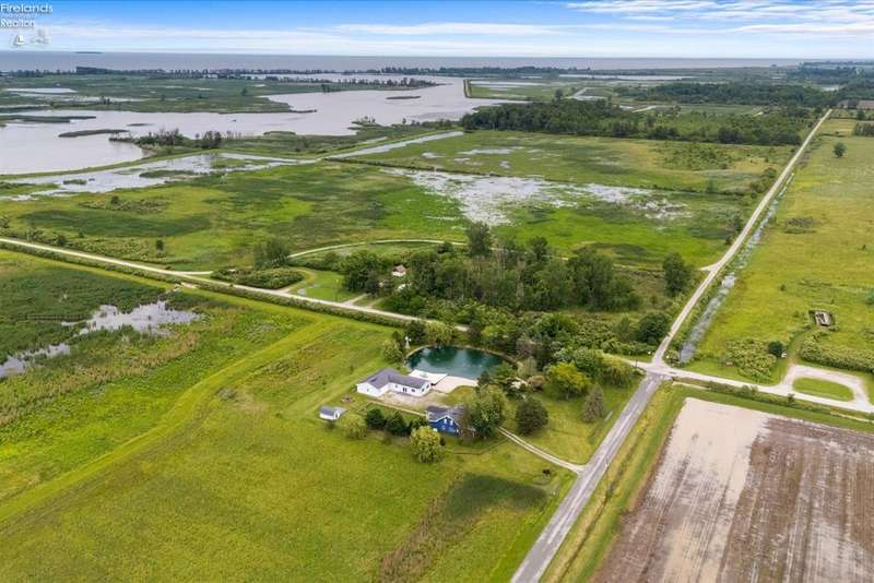 Escape to your own private retreat with this stunning 3-bedroom, 2-bath home nestled on over 2 acres, just minutes from the serene shores of Lake Erie and adjacent to the Ottawa County Wildlife Refuge. Enjoy the beauty of nature from your backyard, featuring a tranquil pond and a sandy beach perfect for relaxation. Inside, you'll find elegant hardwood floors and recessed lighting throughout, a spacious kitchen with a cooking island and pantry, and a cozy living room with a gas fireplace. The first floor offers convenient laundry, a bedroom, and a bath, while the upstairs bath boasts a charming clawfoot tub. The impressive 27 x 48 ft outbuilding is heated and cooled, complete with a workshop, attached 2-car garage, and a large deck overlooking the picturesque pond. With a covered patio and fenced backyard, this home is a perfect blend of comfort and outdoor living.