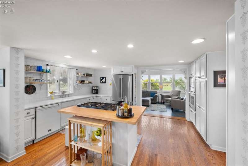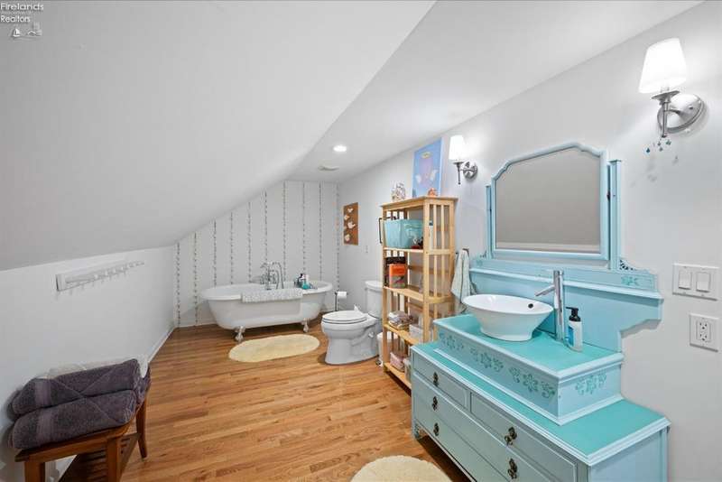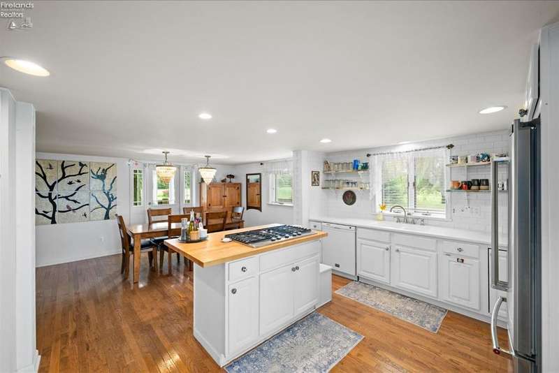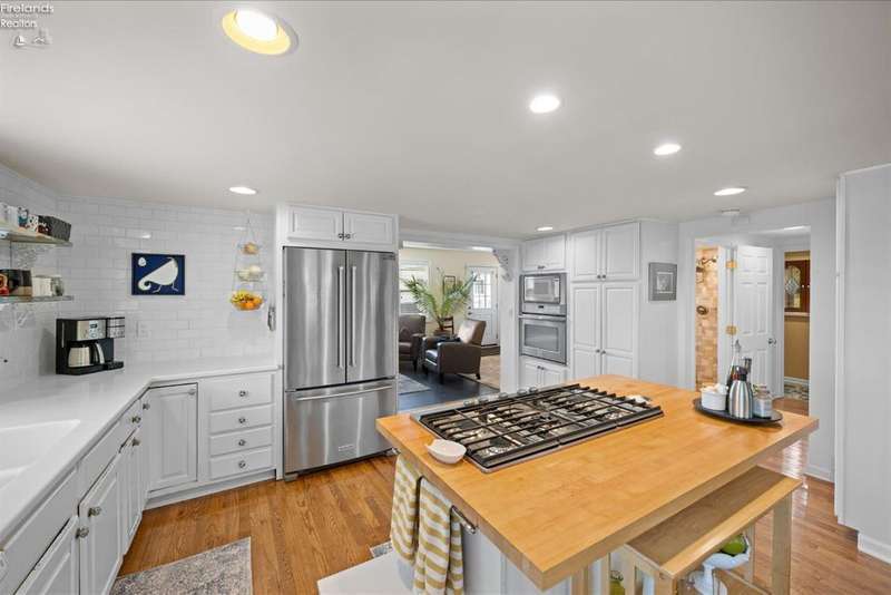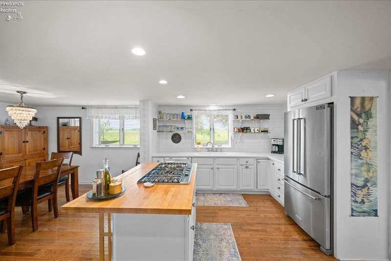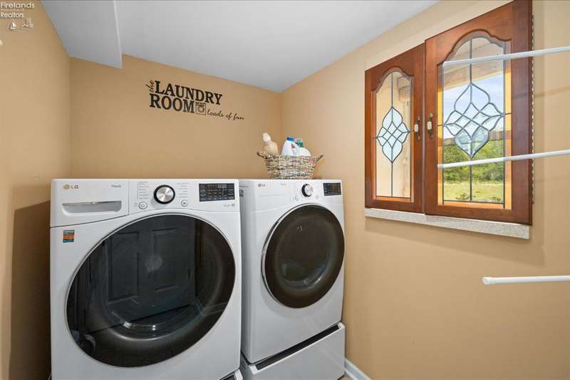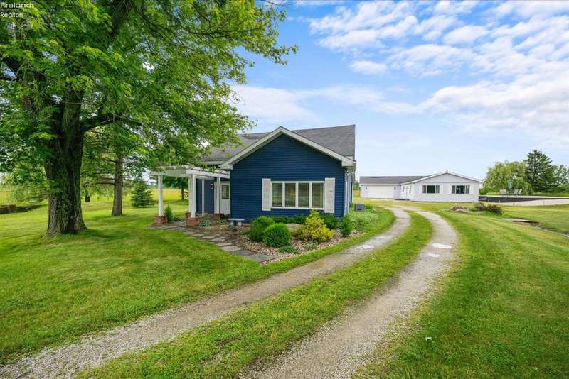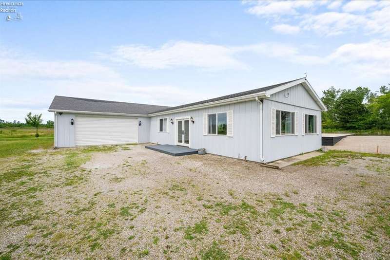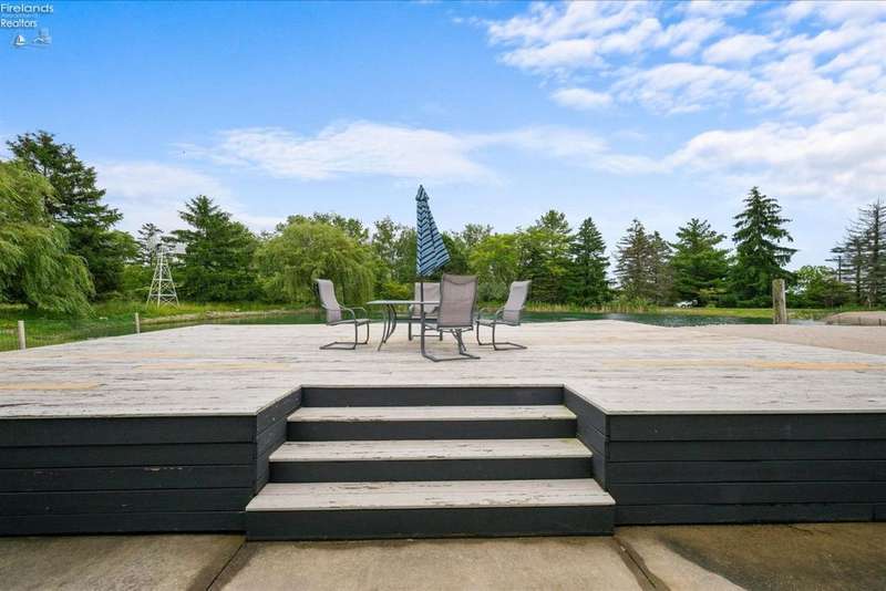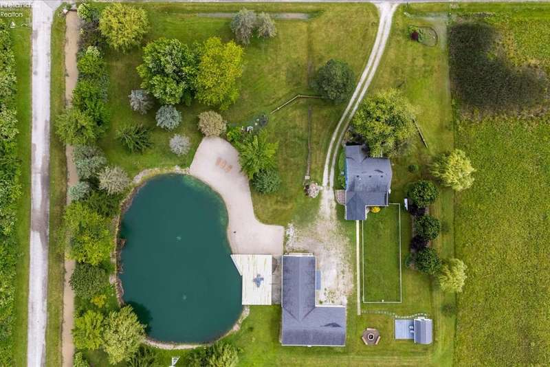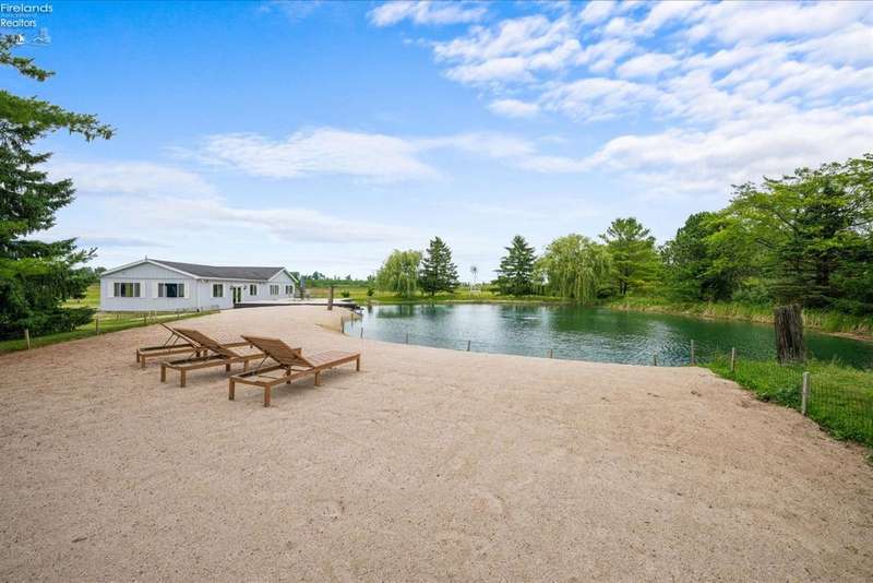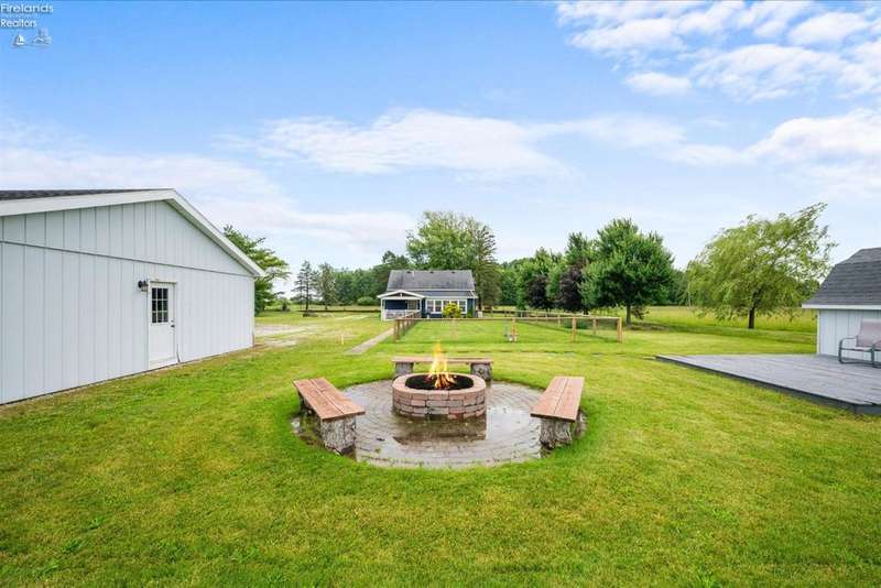 Escape to your own private retreat with this stunning 3-bedroom, 2-bath home nestled on over 2 acres, just minutes from the serene shores of Lake Erie and adjacent to the Ottawa County Wildlife Refuge. Enjoy the beauty of nature from your backyard, featuring a tranquil pond and a sandy beach perfect for relaxation. Inside, you'll find elegant hardwood floors and recessed lighting throughout, a spacious kitchen with a cooking island and pantry, and a cozy living room with a gas fireplace. The first floor offers convenient laundry, a bedroom, and a bath, while the upstairs bath boasts a charming clawfoot tub. The impressive 27 x 48 ft outbuilding is heated and cooled, complete with a workshop, attached 2-car garage, and a large deck overlooking the picturesque pond. With a covered patio and fenced backyard, this home is a perfect blend of comfort and outdoor living.