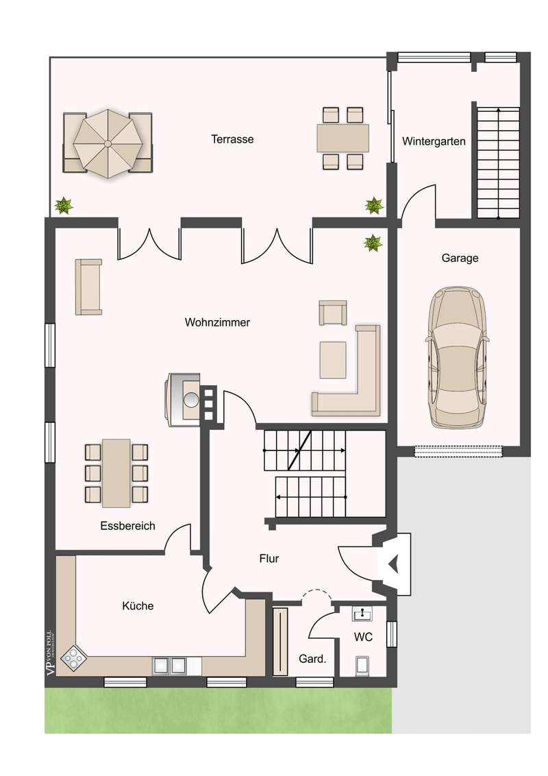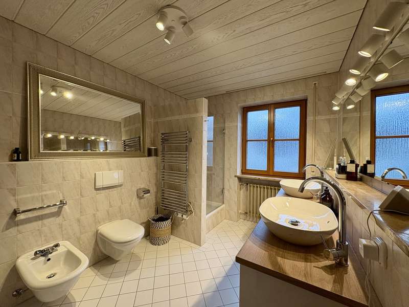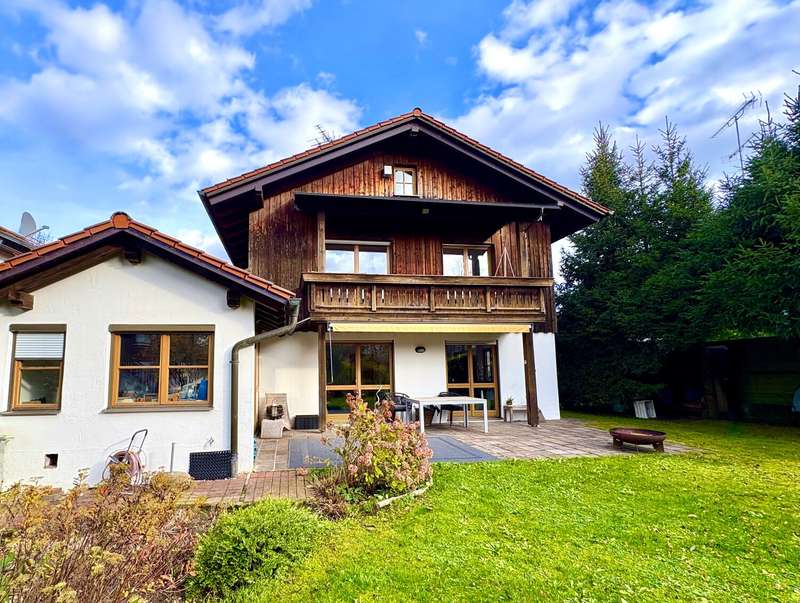 Country-style detached house in a sought-after location This high-quality detached house in country house style, built in 1990 in solid construction, impresses with its quiet, preferred location in a cul-de-sac in Zorneding. On the first floor there is an open entrance area with hallway and guest WC. The spacious, light-flooded kitchen and the living room with west-facing terrace and access to the garden invite you to linger. In the living room, a central white tiled stove provides cozy warmth on cold days. Adjacent to the terrace is a glazed conservatory, which provides direct access to the cellar and the spacious garage. There are three well-designed bedrooms on the upper floor, two of which have access to the west-facing balcony. One room has an adjoining room that can be used as a dressing room. Two bathrooms complete the upper floor: one has a shower and bathtub, the other a shower. The attic is currently used as a storage room, but can be converted. In the basement there is a boiler room with a new condensing boiler (gas) from 2024 and connections for a washing machine. There are also several storage and hobby rooms as well as a guest bathroom with shower. One of the basement rooms can be used as an additional guest room as it has large south-facing windows. All basement rooms are equipped with radiators. The garage at the house is included in the purchase price. There are parking spaces for three vehicles in the driveway.