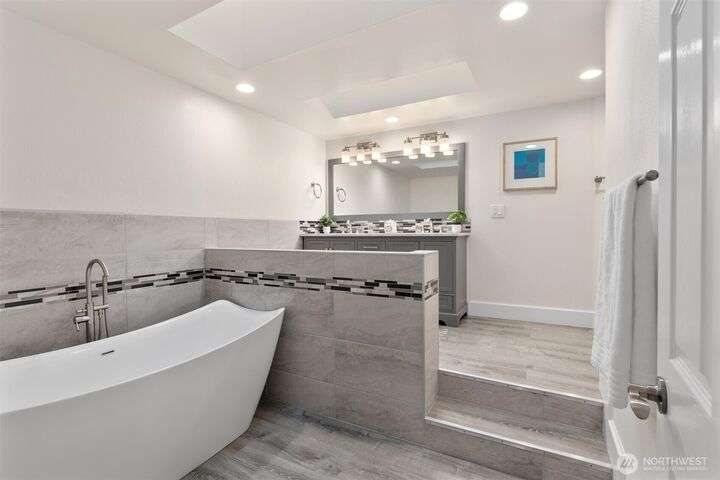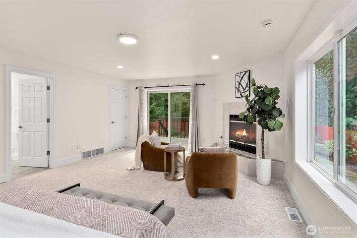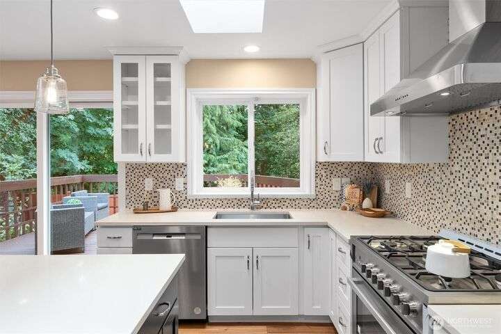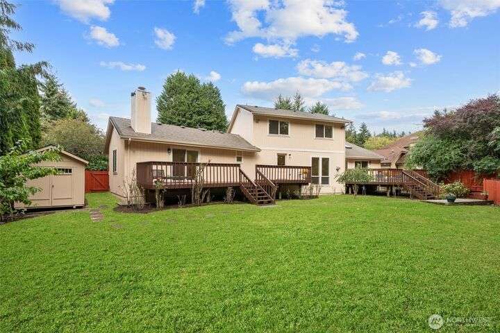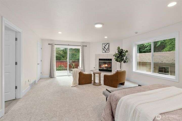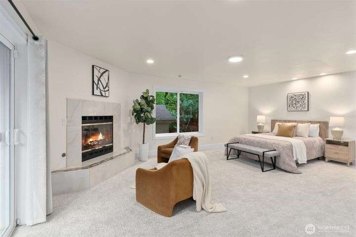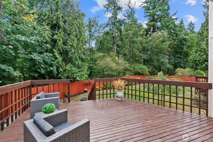 In Somerset on a quiet cul-de-sac, this upgraded NW contemporary blends comfort and convenience in award-winning Bellevue School District. The gourmet kitchen space features plentiful cabinetry, quartz counters, stainless appliances, a large island with breakfast area, and access to the deck/backyard. Entertain with ease in the dining room alongside a bar and a generous sized deck. Primary suite on the main has a fireplace, sitting area, private luxurious bath & deck access. All baths nicely updated. Flexible 4th bedroom/office. Lower level adds a hobby/exercise space. A big fully fenced level yard backs to a greenbelt—perfect for nature lovers, pets, & play. Convenient access to I-90 & 405, downtown Bellevue/Seattle/SeaTac airport.
