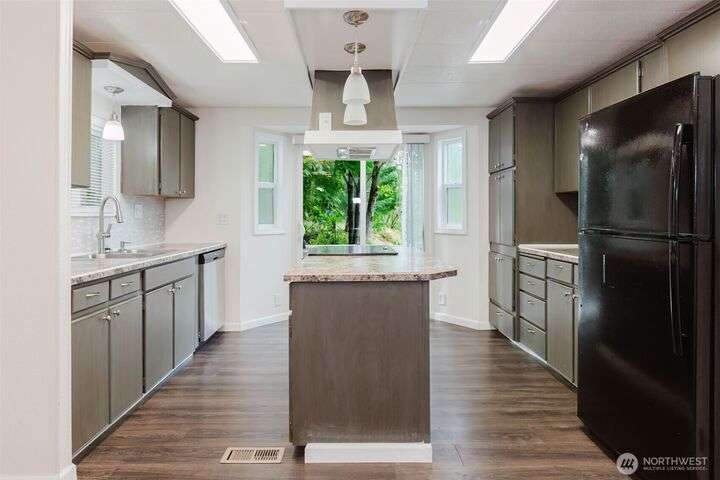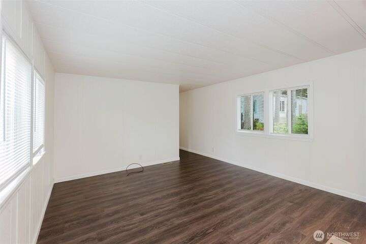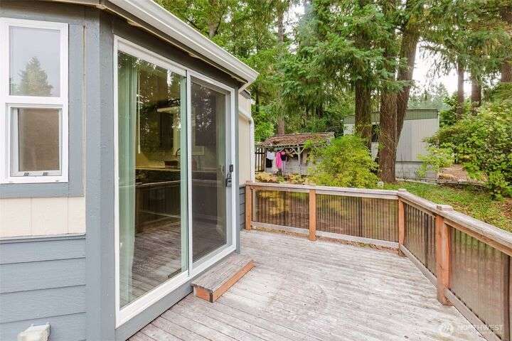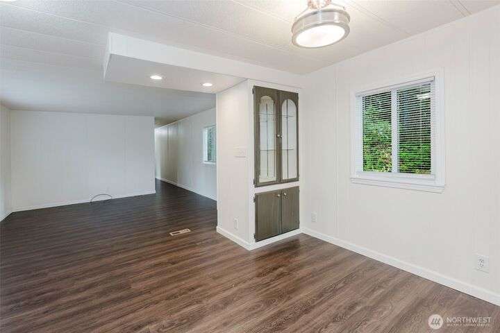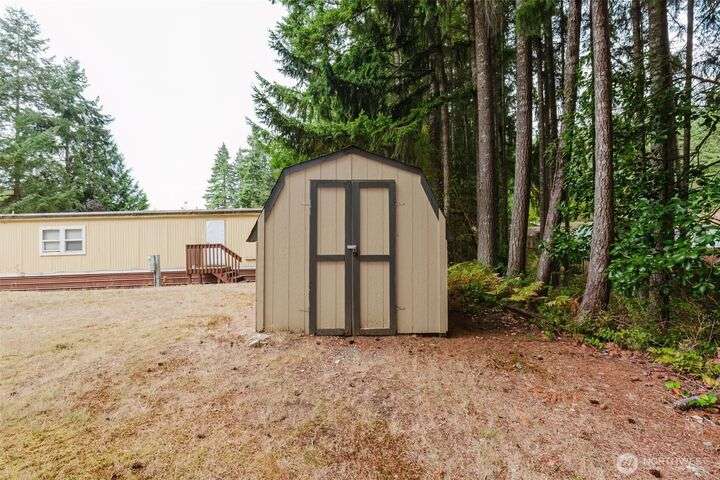 Welcome home to this charming 2BR/1BA manufactured home in a well-kept park! The spacious living room flows into a bright open floor plan with laminate flooring and updated windows throughout. Enjoy a kitchen with eating nook, stainless steel appliances, and an adjacent dining room featuring a built-in hutch—perfect for storage and display. Step outside to an oversized yard complete with a storage shed, offering space for gardening, projects, or simply relaxing. Also plenty of room for off-street parking. Conveniently located near shopping and freeway access, this home combines comfort and low maintenance in one inviting package.