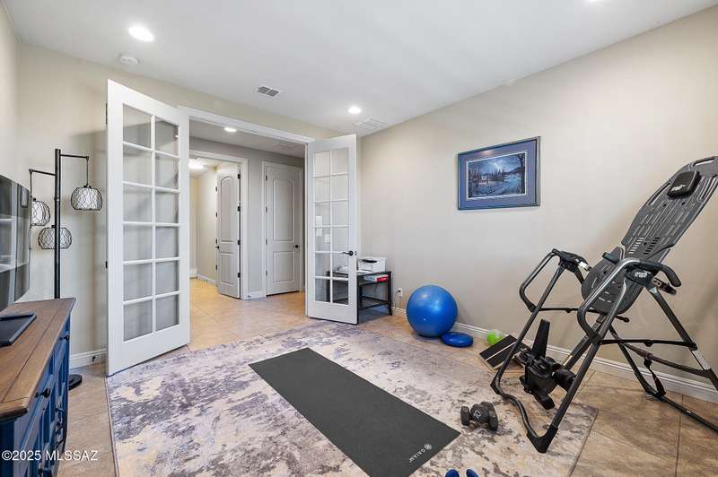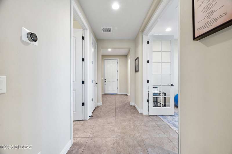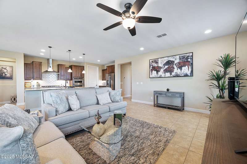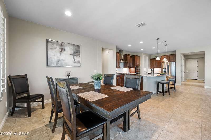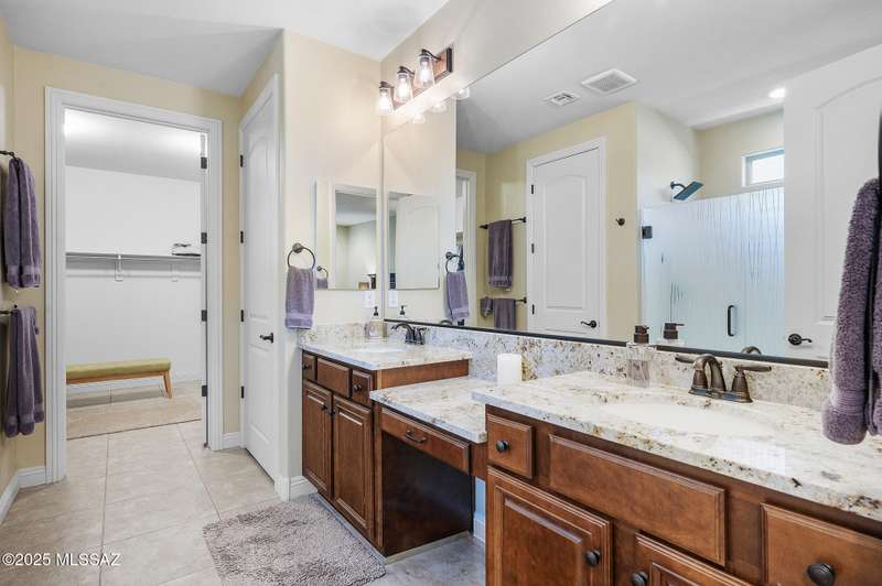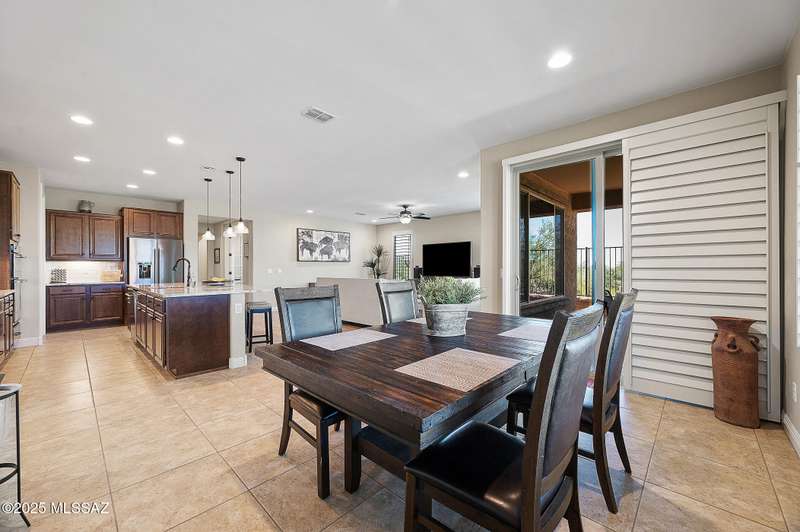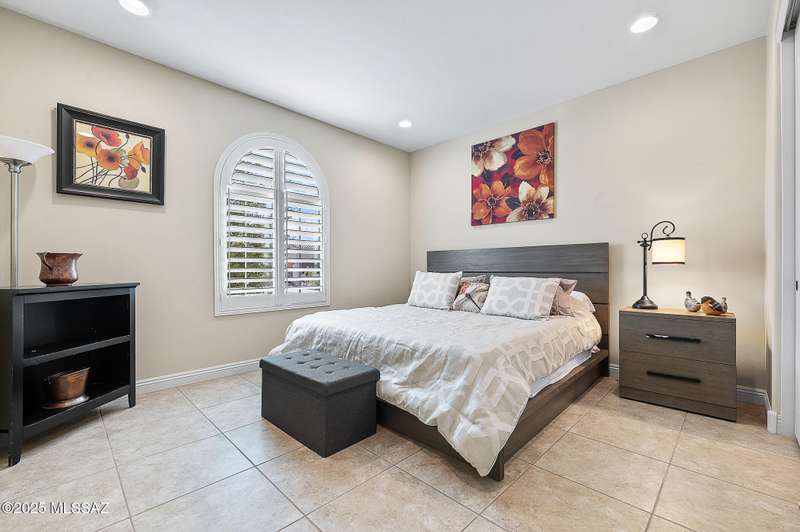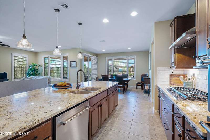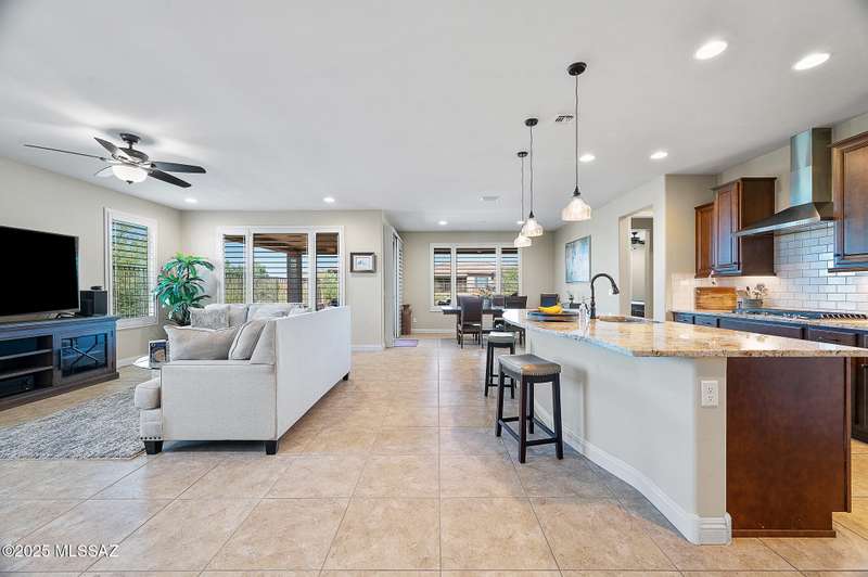Impeccable, upgraded 2BR/2BA/Den Preserve model with 2010sf, boasting numerous highlights: Ceramic tile throughout (no carpet), upgraded 8'doors, French doors to den, full cabinets in laundry room, soft close drawers, custom Desert Wind wood shutters throughout, water softener in garage and much more! Back yard with pavers and beautiful fountain, backs to natural desert behind, with wrought iron fencing and mountain views. Privacy of corner lot, no homes on left with convenience of desert walking path to clubhouse. A definite must see in this neighborhood!