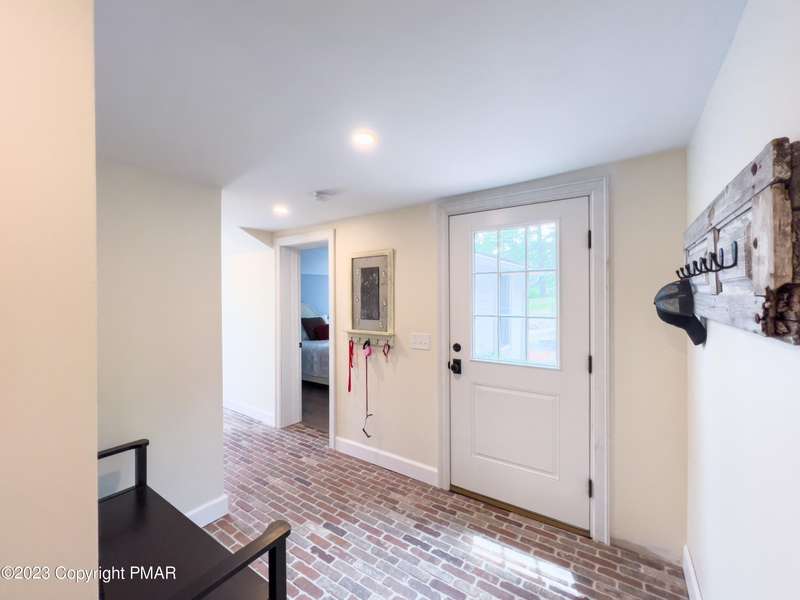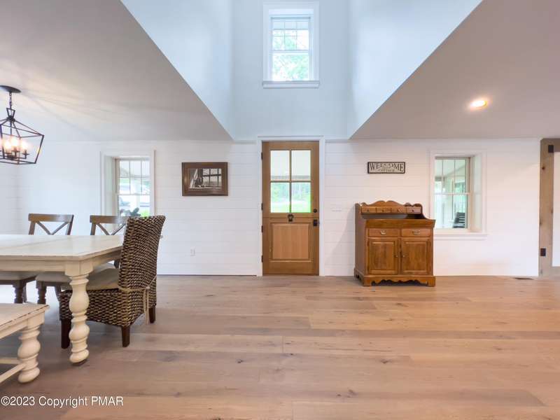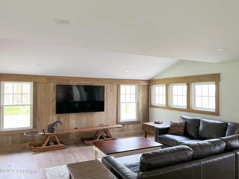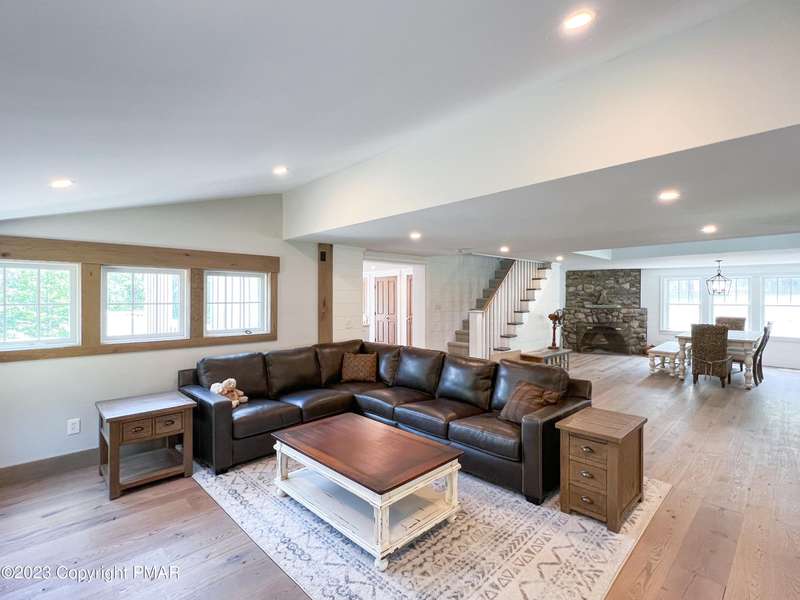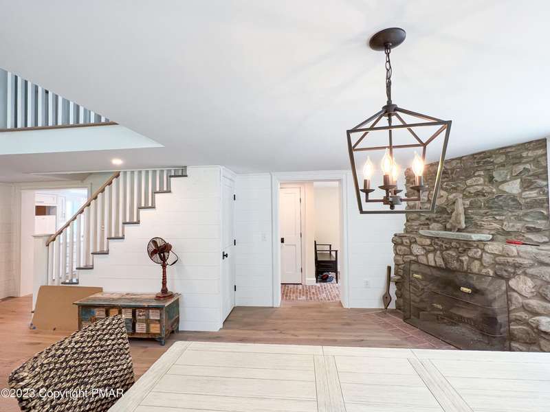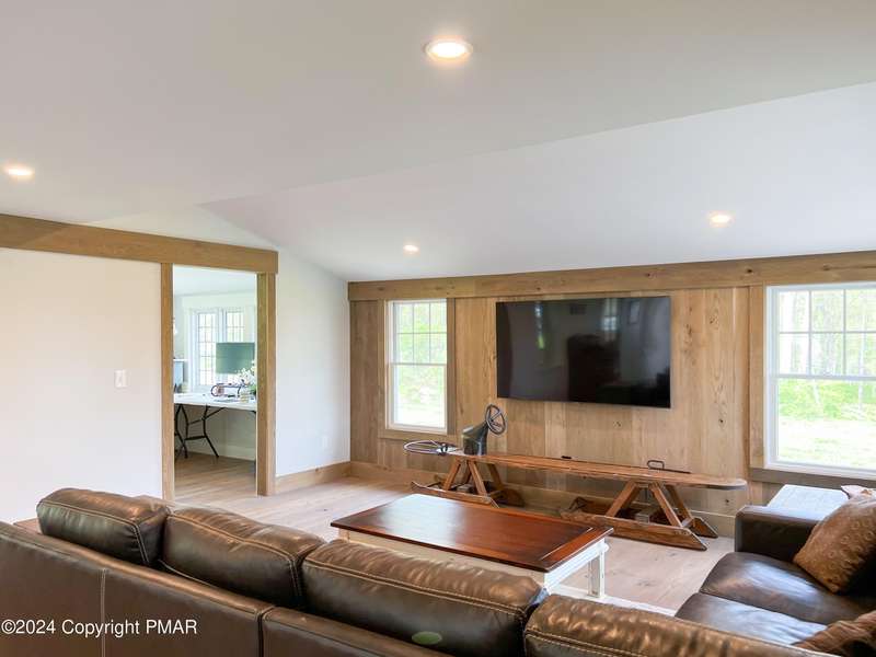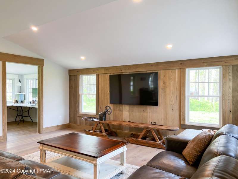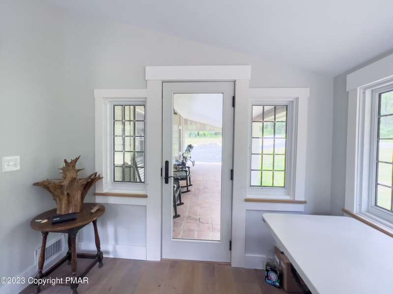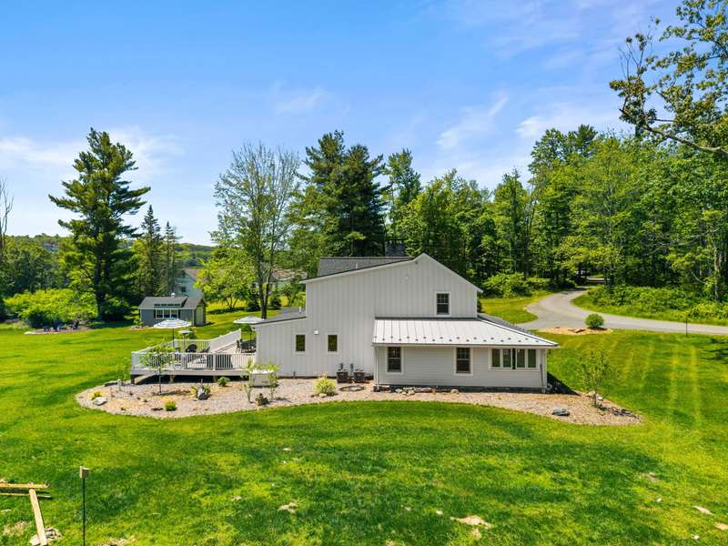 Gorgeous fully renovated farmhouse on over one acre fronting the beautiful Buck Hill Falls golf course. The main level features an open concept living and dining room with wood-burning stone fireplace, home office, and gourmet kitchen with massive island, custom cabinetry and quartz countertops. There is also a huge deck off the kitchen with golf course views and a first floor bedroom w/full bath. The 2nd floor features a primary bedroom w/ensuite bath plus 2 more bedrooms and new hall bath. There is plenty of parking, a large storage shed and huge yard. All this in historic Buck Hill Falls with world-class amenities including 27 holes golf, 10 har-tru tennis courts, Olympic-sized pool, 4,500 private acres with miles of hiking trails, streams and waterfalls. Only 2 hours from NYC and Philly. Must see!