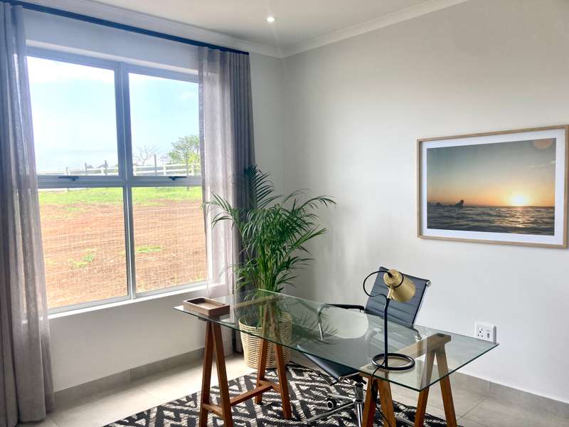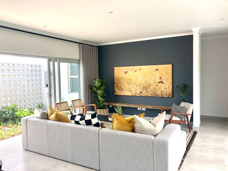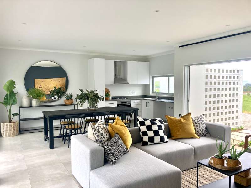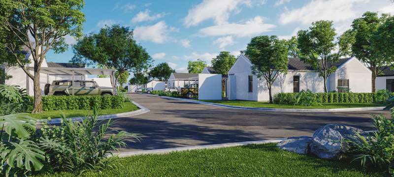 New build with neat finishes and open plan living area which flow out onto the veranda. Gorgeous 3 bedroom home in LALELA ESTATE. Generous sized master bedroom with en-suite. Then 2nd and 3rd bedrooms share a separate bathroom. These homes have been planned to give each homeowner the privacy they crave and are surrounded by greenbelts, fishing dams and dog walking parks. There will be communal swimming pools, cricket nets, tennis courts, kids club - plenty to keep a young family entertained. Small optional extras to build a double garage or to cover the patio Come to view the show home!