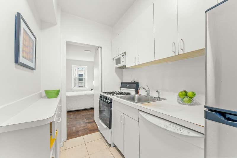 Roomy and peaceful, this high floor Junior one bedroom home faces south over West 73rd Street, looking out onto beautiful pre-war homes. It receives tremendous natural light through four new white windows. The living room is oversized and the adjacent windowed alcove is large enough to close off, easily fits a queen-sized bed, and includes a closet. A separate kitchen, white tiled bathroom, gracious foyer and two additional closets complete this lovely home. This wonderful property is value-priced to allow you to renovate to your own taste. ;