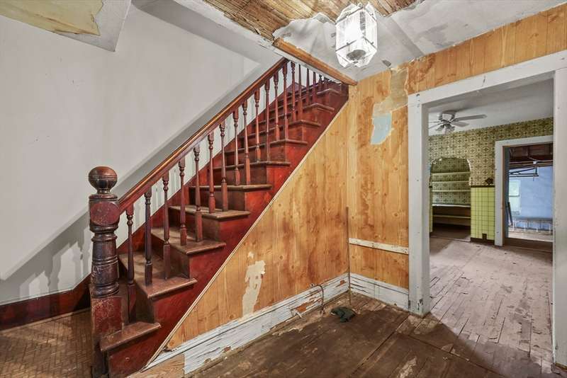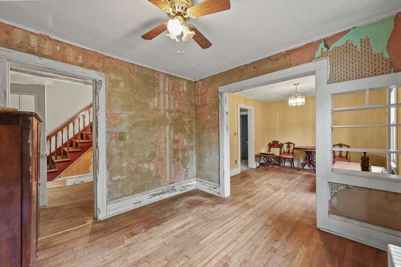 Amazing opportunity to own a home on 0.46 acres plus two additional lots with 0.46 and 0.17 acres each, totaling about 1.1 acres, in a private area, on a dead end street! The house is a fixer upper, the exterior is freshly painted, the interior needs renovation but all utilities and mechanicals are on. The first floor features a lovely enclosed front porch, dining room, living room and kitchen; and the 2nd floor offers 3 bedrooms and full bath. There are hardwood floors throughout! There is also a walk-up attic for great storage space. The basement has concrete floor, 100 amp electrical service, and a new boiler was installed in 2024. City water and sewer. Two attached garages complete this great property! *Sale includes two additional lots with Parcel ID's: K100009007 & K100009005