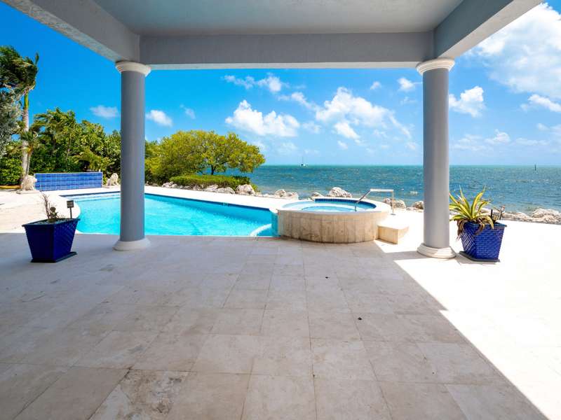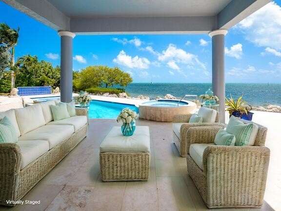 Experience breathtaking 180-degree, unobstructed views of the Atlantic Ocean from this exceptional Key Largo oceanfront home, complete with a deeded 50' boat slip just steps away. This spacious, turnkey residence features wraparound floor-to-ceiling windows and sleek invisible glass railings, seamlessly framing the ocean from most rooms.Offering 5 bedrooms and 6.5 bathrooms, this home includes a 3-stop elevator and an expansive multi-car garage. The primary suite feels as though it floats above the water, offering awe-inspiring views, a spa-like bathroom, and an oversized walk-in closet. Each of the additional four bedrooms boasts its own private bathroom for ultimate comfort and privacy.Designed for entertaining with an open-concept interior and spacious outdoor living space, which spans 175 feet along the oceanfront. Enjoy a resort-style pool with spa, a cozy fire pit, and a covered patio, all surrounded by lush, mature landscaping that provides added seclusion.Additional highlights include a private movie theater with reclining seats and a large screen, an 800 sq ft air-conditioned garage with a car lift--perfect for car enthusiasts--and ample outdoor parking, including covered spaces under a carport. For those who love the night sky, the concrete rooftop offers an ideal stargazing perch.This is coastal living at its finest--luxurious, private, and effortlessly elegant.