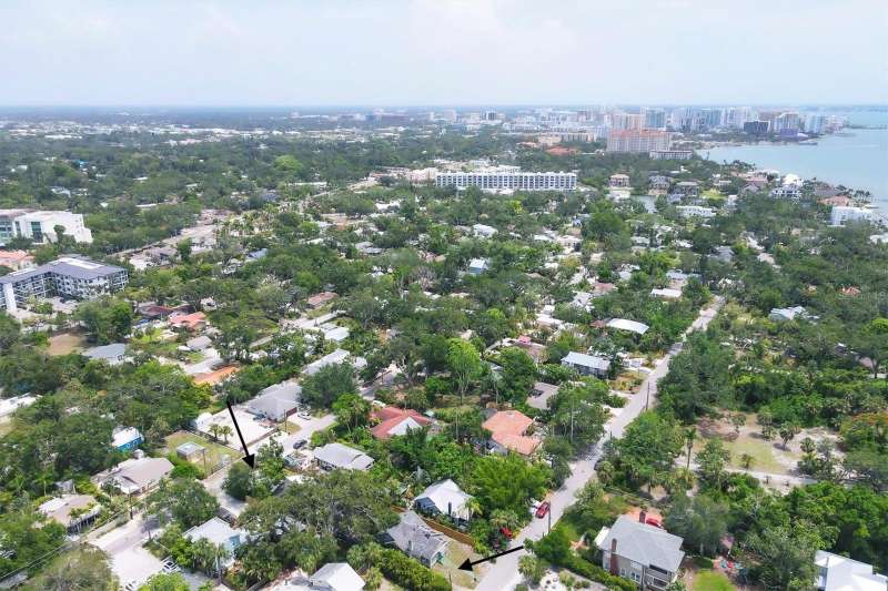 Under contract-accepting backup offers. Back-to-back properties totaling 10,000 sq ft, elevated above the flood zone, are now available for the first time. This is a unique opportunity to create your ideal living space with the added benefit of being your own backyard neighbor. You can easily coordinate the perfect floor plan from Alameda to Hickory to suit your needs, including the option to add an accessory dwelling for a parent or adult child. With the possibility to build up to 35 feet, you might even get a glimpse of the bay. Conveniently located just down the street from Ringling College and close to downtown and the beaches, this location offers both potential and accessibility
