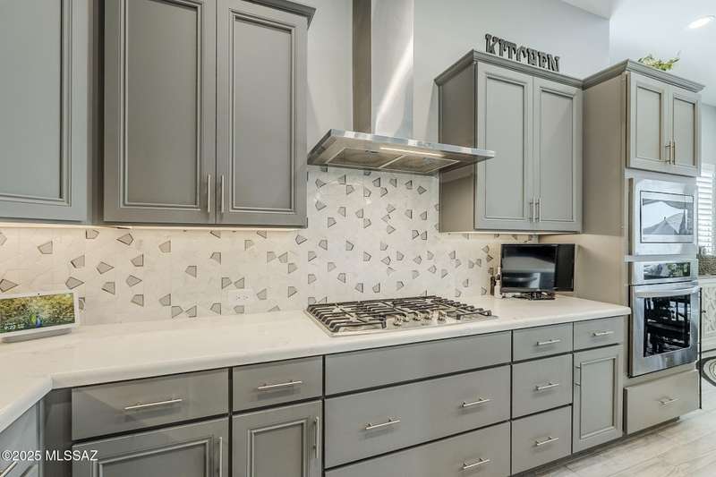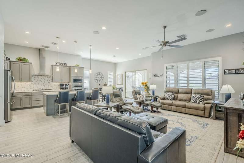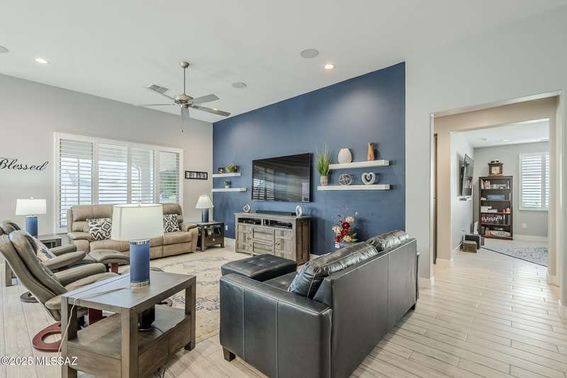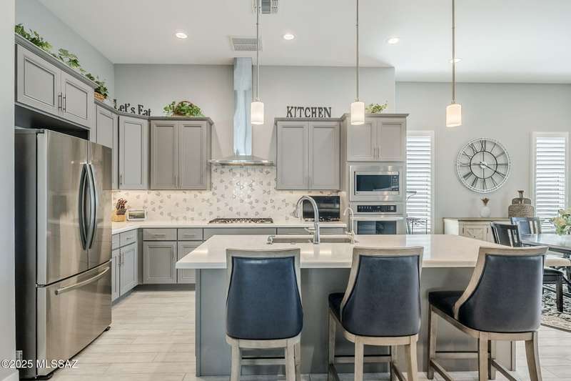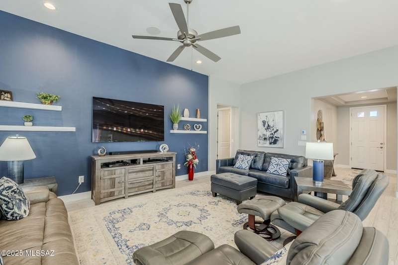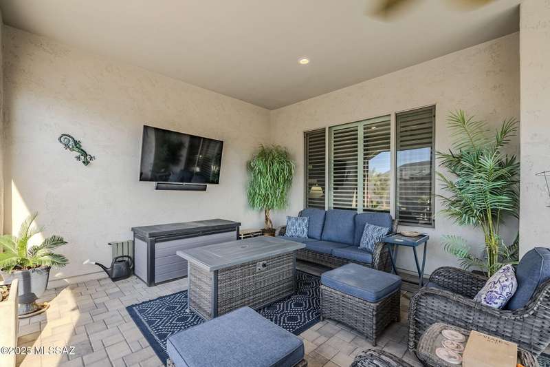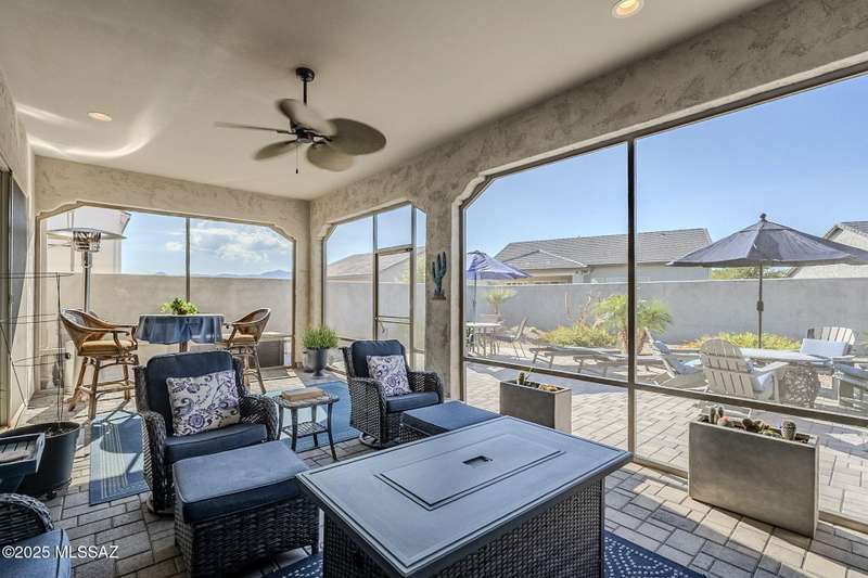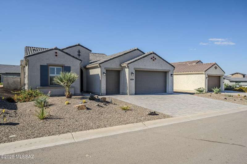 BETTER THAN NEW in SaddleBrooke Ranch! Why wait to build when you can move right into this elegant 2022 Alora model with 2,126 sq ft of refined living. Located in this highly sought-after 55+ community offering golf, pools, pickleball, restaurants, and more. The chef's kitchen features 42'' cabinets, quartz counters, tile backsplash, premium appliances, soft-close cabinetry, and an extended dining area. Enjoy seamless indoor-outdoor entertaining in the inviting AZ room. Additional highlights include elegant pavers front and back, a dedicated golf cart garage, and an oversized den. The beautifully landscaped, fenced backyard with fire pit is perfect for relaxing or hosting guests. A thoughtfully designed, move-in-ready home offering exceptional value!