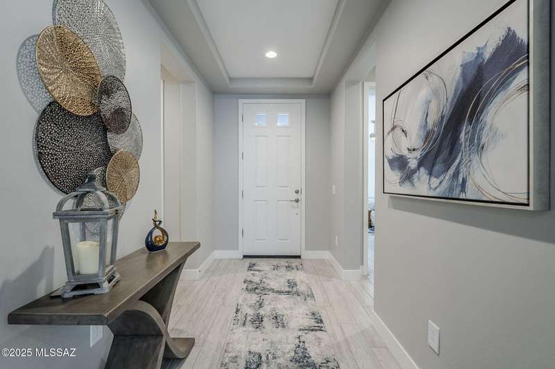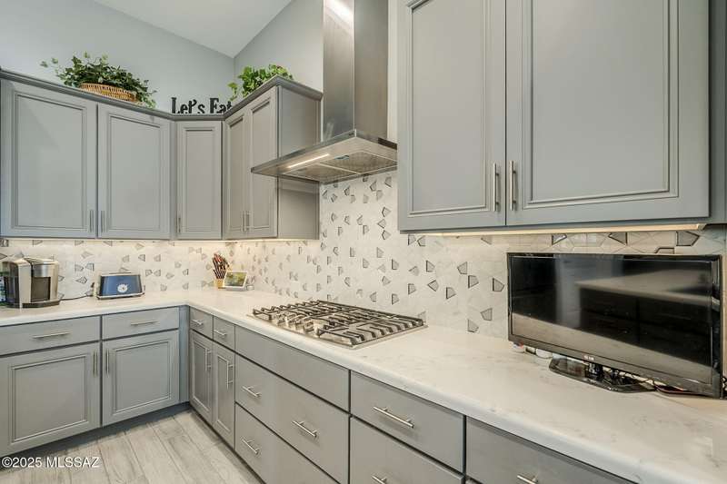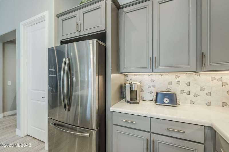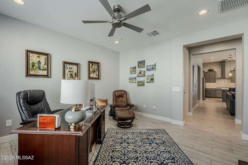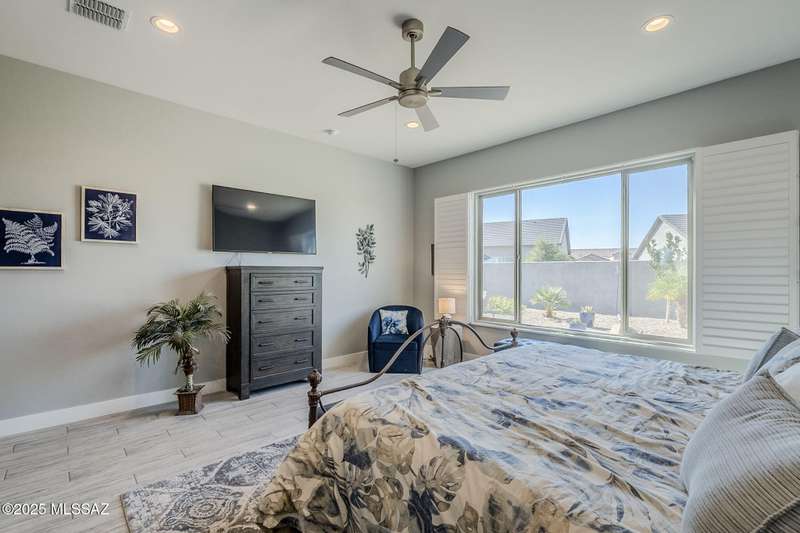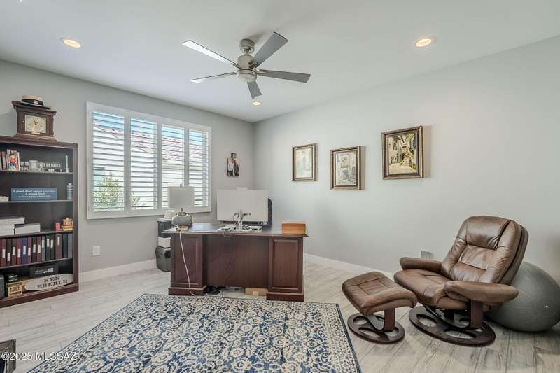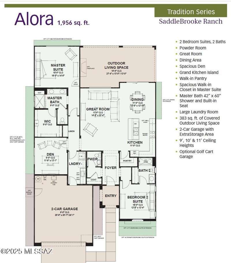 BETTER THAN NEW in SaddleBrooke Ranch! Why wait to build when you can move right into this elegant 2022 Alora model with 2,126 sq ft of refined living. Located in this highly sought-after 55+ community offering golf, pools, pickleball, restaurants, and more. The chef's kitchen features 42'' cabinets, quartz counters, tile backsplash, premium appliances, soft-close cabinetry, and an extended dining area. Enjoy seamless indoor-outdoor entertaining in the inviting AZ room. Additional highlights include elegant pavers front and back, a dedicated golf cart garage, and an oversized den. The beautifully landscaped, fenced backyard with fire pit is perfect for relaxing or hosting guests. A thoughtfully designed, move-in-ready home offering exceptional value!