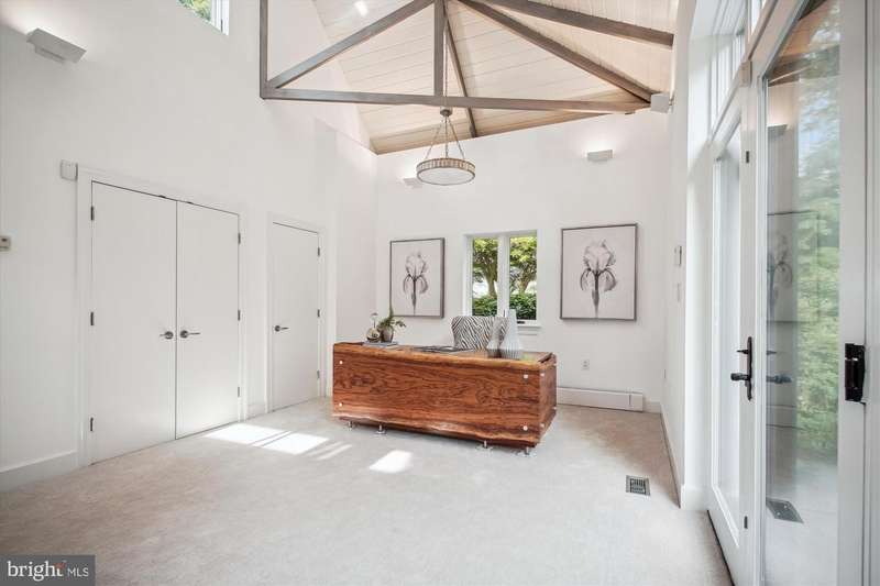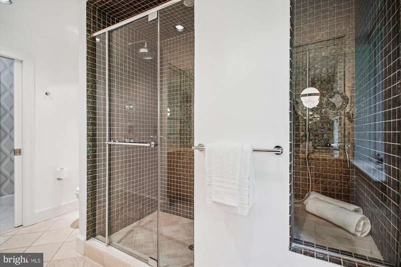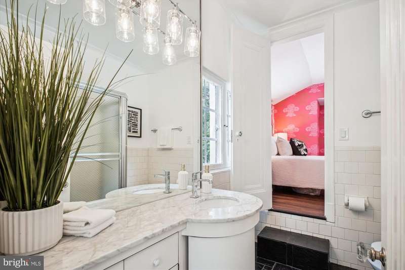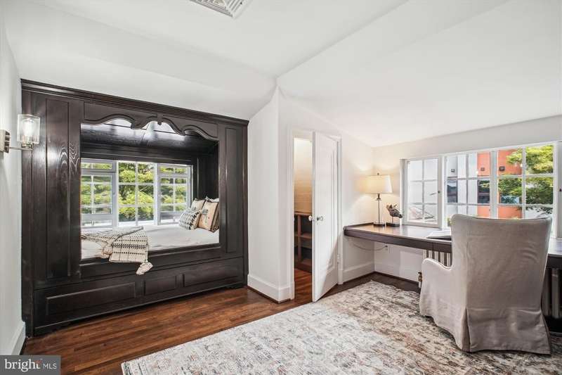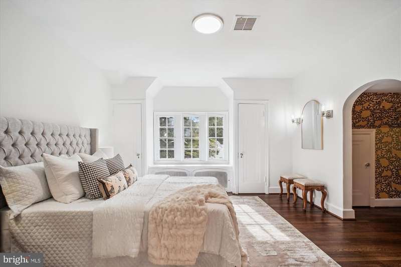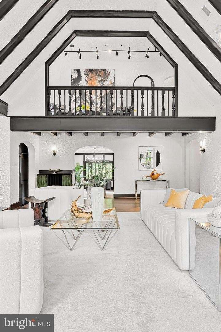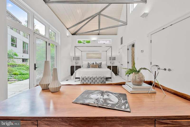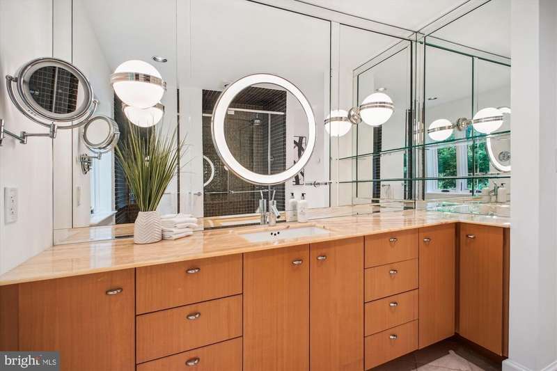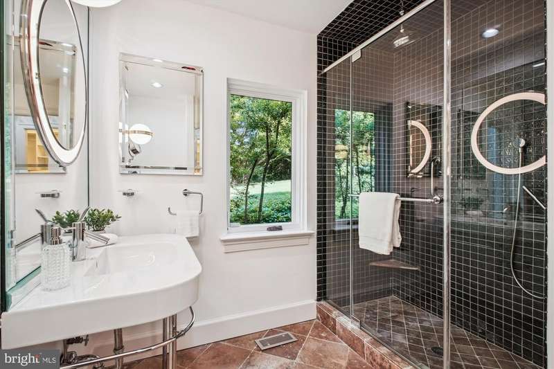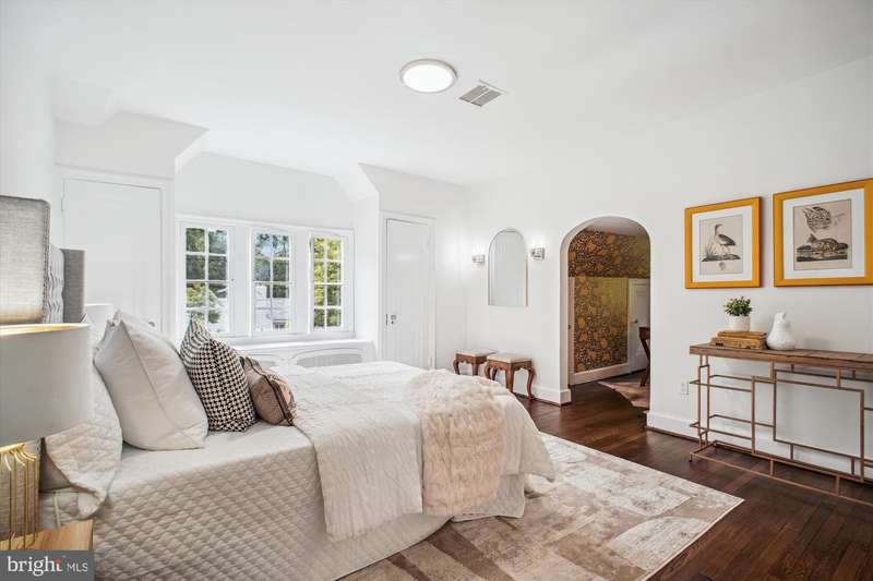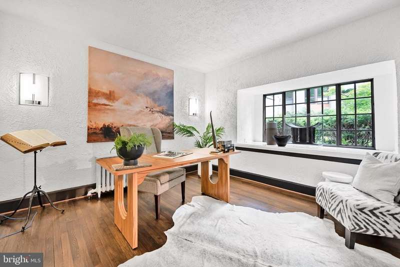 With the bold inscription ""Cedere Numquam"" (Never Give Up) carved in stone above the front door, this striking Tudor-style home invites you into a world of timeless elegance and thoughtful design. Originally built in 1923 and expanded with care, it seamlessly blends classic architecture with modern additions and design. Perched on a quiet cul-de-sac above Sligo Creek Park, the stone-and-stucco exterior is enhanced by welcoming stone walkways and sculptural metal railings by Barton Rubenstein. A custom wood door opens to reveal a dramatic great room with a 20-foot beamed ceiling, a stone fireplace, a floating glass display wall by Renwick curator Michael Monroe, and soaring atrium windows framing the private garden terrace. The banquet-sized dining room features a coffered ceiling with a custom crest of The Order of the Garter, a nod to tradition that echoes the home's enduring character. The adjacent kitchen offers granite countertops, ample cabinetry, and a breakfast area that flows into the cozy family room with an 1800s Great Western cast iron parlor stove. The main-level owner's suite is a true retreat, with two oversized walk-in closets, two beautifully appointed full baths, and a grand bed chamber with French doors leading to the terrace. A second office or nursery adds flexibility with an additional walk-in closet. All baths on the main level feature high-end Italian fixtures, and the owner's suite baths have heated floors & enormous walk-in showers. On the upper level, a reading balcony/lounge overlooks the great room, alongside three additional bedrooms-including a suite with sitting room/den-and two full baths. Two spaces have built-in window seats, and the 3rd bedroom features built-in furniture. The lower level provides space for hobbies, storage, and access to the deep 2-car garage and elevator. Recent updates include fresh interior and exterior paint, refinished hardwood floors, new carpet, and updated lighting. A whole-house generator is also installed. See Disclosures for additional information on systems and receipts. The terraces and gardens, accessed through the great room, owner's suite, and family room, provide views and shade from the towering Japanese maple tree with its ever-changing colors. Privacy abounds, with access to Sligo Creek Park from a corner of the yard. A sprawling front lawn greets guests with an impressive approach and offers plenty of play space both front and back. Walkable to Zinnia and convenient to Metro, buses, and I-495, this timeless home offers rare character, comfort, and presence-ready for its next chapter.