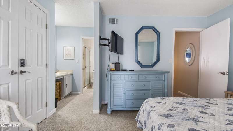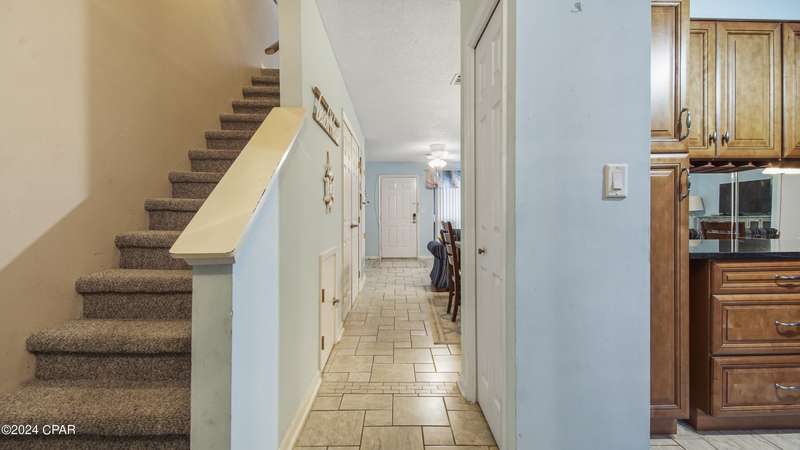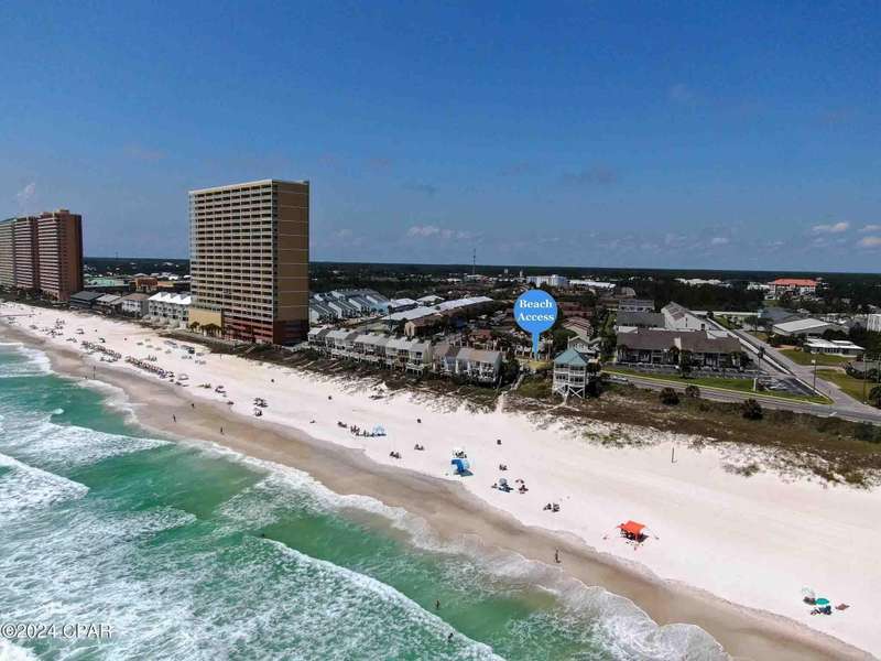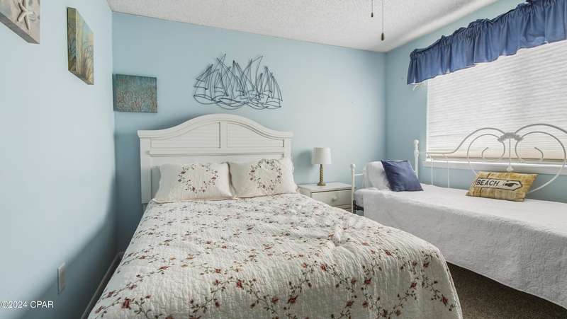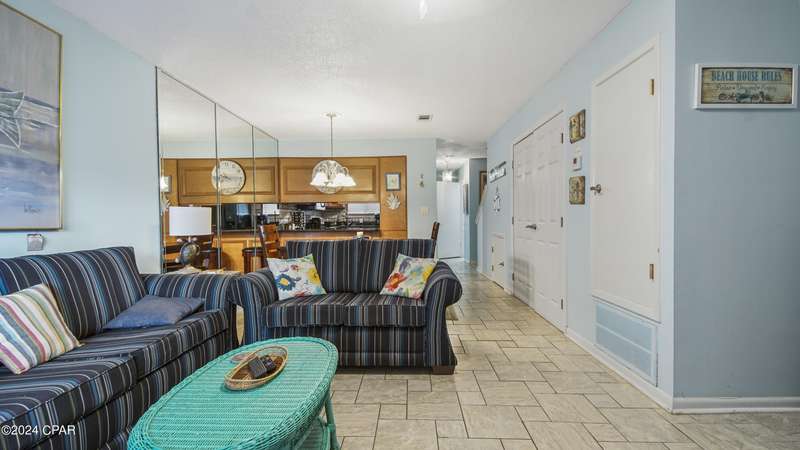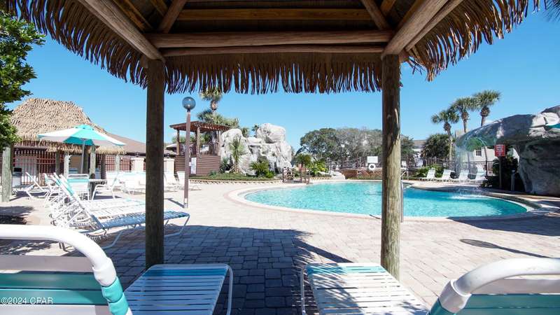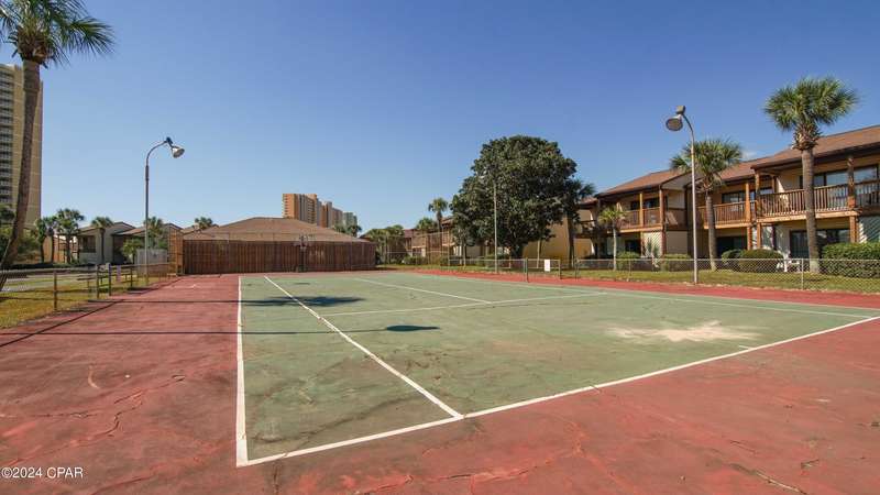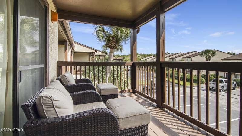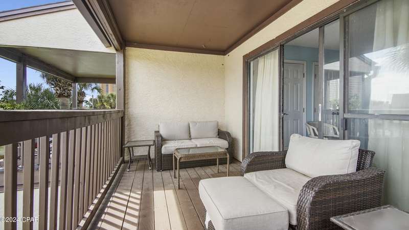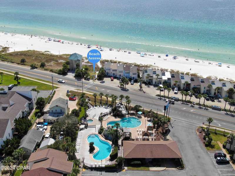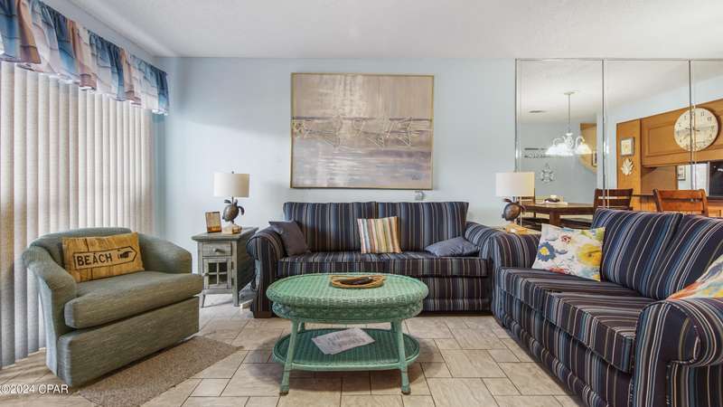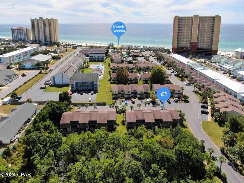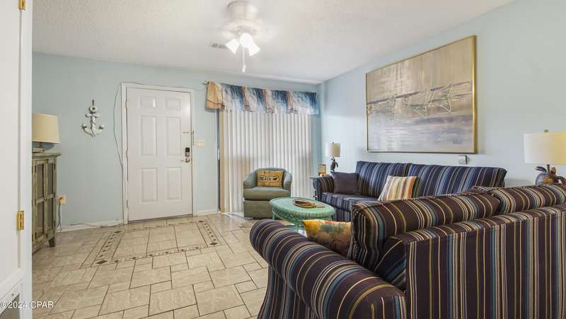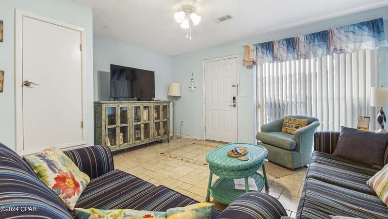 Discover the potential of this charming 2BR/1.5BA condo in the highly desirable Portside Resort on the west end of Panama City Beach! Perfect for a second home or investment, this fully furnished unit has never been rented through a property management company for short term rentals, but sellers have had the occasional long term renter. The unit features an upscale kitchen with granite countertops, upgraded cabinetry, and a stylish tile backsplash. The first floor boasts updated tile flooring with decorative accents, and a washer/dryer is included. Enjoy outdoor living with a covered front porch, back porch, and a private balcony off the master bedroom.Conveniently located next to the iconic Carousel Supermarket and just a short distance from another PCB landmark, Thomas Donuts, this unit is also near one of Portside's three pools (one heated) and a short walk to the beach. Resort amenities include a kiddie pool, hot tub, tennis courts, shuffleboard, and a poolside clubhouse for relaxation and entertainment. Similar units in the complex generate annual gross rentals of $25,000+, making this a great rental-ready opportunity.Sellers are motivated! Additional highlights include a newly painted interior, a 2022 HVAC system, and a 2013 water heater. Offered fully furnished with a few exceptions, this condo is a must-see! Call your agent today to schedule a visit. All information is deemed accurate but should be verified by the buyer and/or buyer's agent if important.