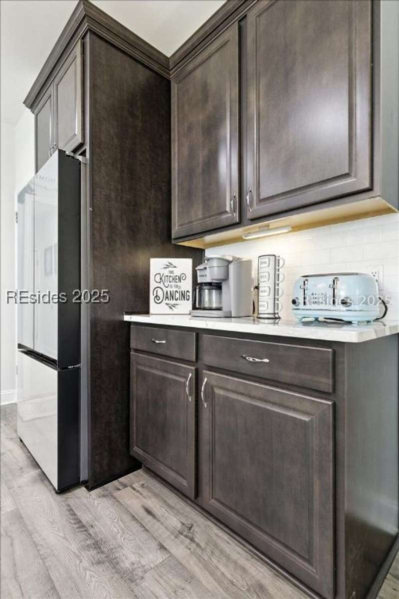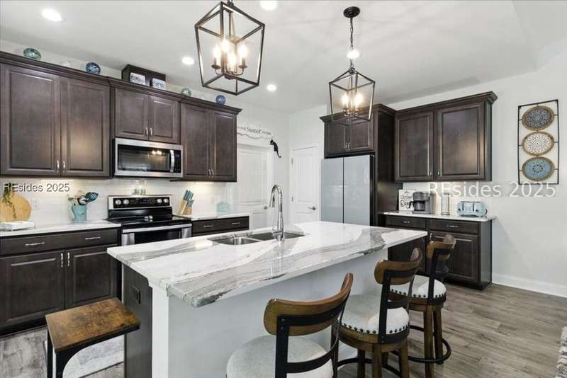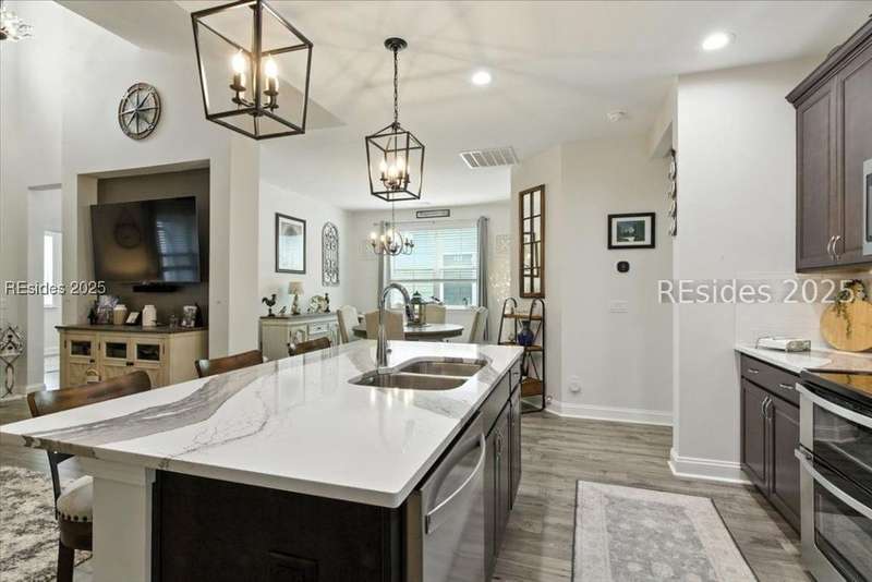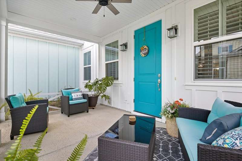 Your Slice of Paradise Awaits in Latitude Margaritaville! Relax and unwind in this beautifully upgraded cottage home, perfectly situated on a prime lot with sweeping, serene landscape views. From the moment you step inside, you're welcomed by a sense of warmth and comfort that makes this home truly special. The gourmet kitchen is a chefs dream, featuring designer countertops, 42-inch soft-close cabinets with elegant crown molding, under-cabinet lighting, a classic subway tile backsplash, and double ovens, perfect for entertaining or enjoying a quiet night in. Both bathrooms exude spa-like luxury with seamless glass showers, floor-to-ceiling tile, and upgraded quartz countertops with undermount square sinks. Thoughtful upgrades continue into the garage, which includes a smart garage door opener, basin sink, shelving and cabinetry, a water filtration system, whole-home surge protector, and pull-down stairs to an insulated, floored attic coffering plenty of extra storage space. Both the garage and lanai feature a durable, sleek epoxy finish. With high-end finishes, smart upgrades, and an unbeatable location, this is more than a home, it's your own personal paradise in the heart of Latitude Margaritaville.
