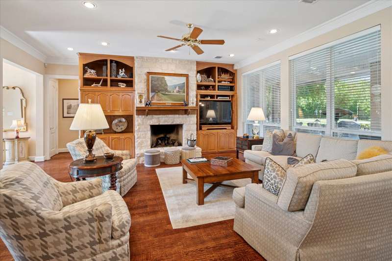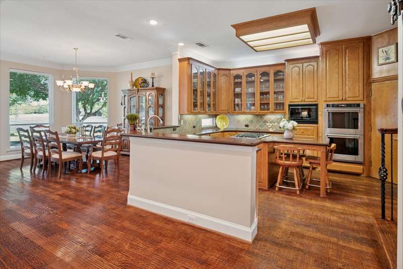 UPDATED Kitchen featuring beautiful white quartz countertops with white backsplash!!!!!!Stunning private lake front estate nestled on a sprawling 1.65-acre lot in the highly sought-after community of Heath. This exquisite custom 5439 square feet residence blends timeless architecture with modern sophistication offering 4-bedrooms, 4-bathrooms, and 4 living spaces designed for both grand entertaining and relaxed comfort. A dramatic entry leads to soaring ceilings, rich handscraped hardwood flooring, with 2 fireplaces, and expansive windows that frame serene views of the grounds and bathe the home in natural light. The gourmet kitchen is a masterpiece that features high-end appliances, custom cabinetry, a large island perfect for entertaining and a seamless flow into the expansive great room. The great room bar has granite counter top with stone backsplash, wine and beverage cooler, ice maker, dishwasher, sink and custom glass and wood cabinetry. The luxurious primary suite boasts a spa-like bath with dual vanities, soaking tub, and walk-in shower. and oversized walk-in closet. Additional highlights include a private study, gym, oversized 3-car garage with a boat trailer lift and plenty of extra parking. Enjoy peaceful outdoor living with mature trees, boat dock with 2 jet ski lifts, 2 screened-in porches with ceiling fans, fire pit, open yard space, and plenty of room to add a pool. Located just minutes away from The Harbor and award winning Rockwall ISD schools. A rare blend of privacy and convenience- this is a must-see! Agent to meet.