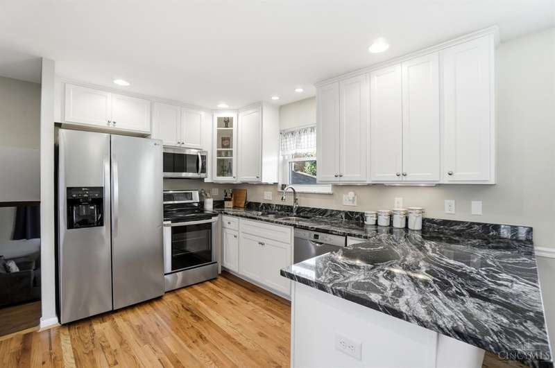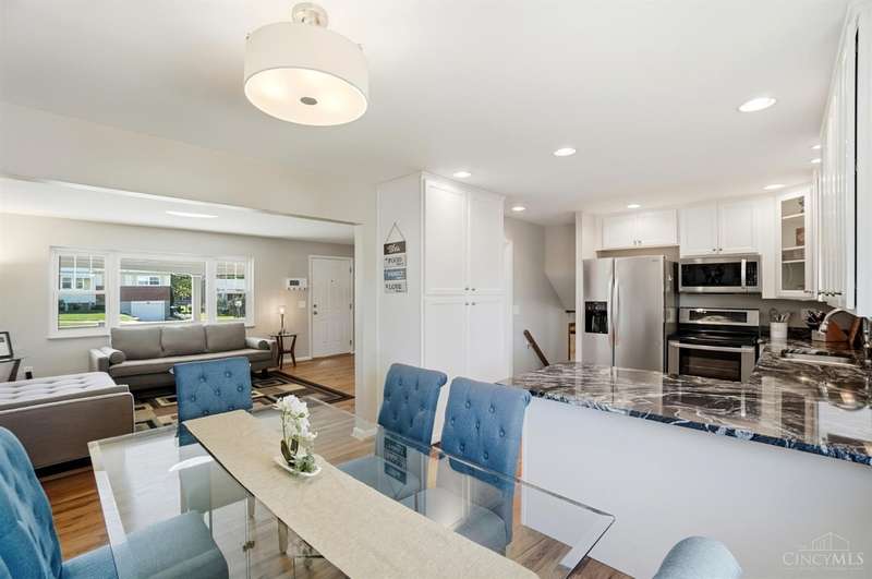 Spacious quad-level home tucked away on a quiet no-outlet street in Oak Hills Schools! Enjoy an updated kitchen with modern finishes, a new roof for peace of mind, and a convenient 2-car garage w/ new door. The versatile multi-level layout w/ hardwood floors offers room for entertaining, working from home, or relaxing in comfort. The family room features beautiful woodworking, gas fireplace w/ walkout to deck and fenced yard. The primary suite boasts 2 spacious closets & a full bath for convenience & privacy. The lower level recreation room offers new carpeting, laundry room & half bathroom. A spacious and inviting front porch welcomes you home, setting the tone for comfortable living and great curb appeal.