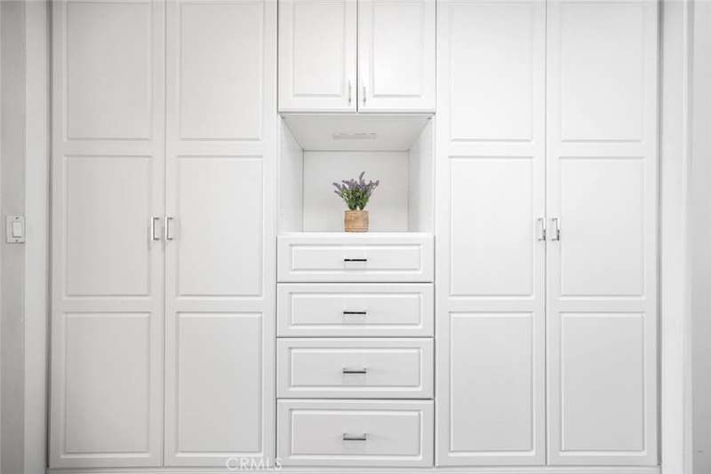 OPPORTUNITY AWAITS WITH THIS ABSOLUTELY GORGEOUS & INCREDIBLY RARE SINGLE-LEVEL FLOOR PLAN, BEAUTIFULLY REMODELED, IN THE FABULOUS COMMUNITY OF CYPRESS VILLAGE! IT HAS BEEN 6 YEARS SINCE THIS MODEL, WITH A CORNER LOCATION, HAS BEEN AVAILABLE. This 2-bedroom, FULLY FURNISHED house is in an excellent location, steps from the community pool, and comes with a substantial pebble-coated patio & a covered front porch. Upon entry, you will love the soaring, high-vaulted ceiling of the living room with a delightful gas fireplace, crown molding, neutral laminate flooring, & and a sliding door to the side yard. As you continue, notice the extra-large doorway to the dining area & kitchen, creating an immersion of enhanced natural lighting. The family-style kitchen has been remodeled with custom KraftMaid Cabinetry, and an enormous attached hutch & double pantry with pull-out drawers. The kitchen also boasts abundant sunshine, granite countertops & backsplash, quality appliances, elegant lighting, diamond tile flooring, & stunning greenbelt views. Additional wide doorways lead you to the thoughtfully upgraded primary suite. Here you will find a spacious bedroom with custom-designed & organized dual wardrobe closets, built-in cabinetry, patio view, & a thoughtfully remodeled ensuite bath with a luxurious walk-in shower. You will appreciate lovely greenbelt views from the guest bedroom, and an immaculate full bath, remodeled with costly upgrades & finishes. Additional Highlights: Stunning dual-pane windows, smooth ceilings, neutral paint throughout, beautiful flooring, 6-panel doors, crown molding, wide baseboards, upgraded door molding & window casement, wide window blinds, custom linen cabinetry for ample storage, air-conditioning, a new water heater, a spacious & low-maintenance patio retreat with easy access to an attached two-car garage with storage cabinets. BONUS: BUYERS OFFERED HOME FURNISHINGS & GARAGE TOOLS & SUPPLIES! Award-winning local schools are Patton Elementary, Bell Intermediate, & Pacifica High School, and all are highly rated 9's & 10's. Enjoy proximity to shopping, dining, LA Fitness, nearby local parks, Costco, Trader Joe's, & easy access to local Fwys! Wonderful Cypress Village has 3 Pools, 3 Clubhouses, a Huge Spa, a Kiddy Pool, Tennis, Pickle Ball, Lush Greenbelts & Meandering Pathways, & a low HOA of $399! Enjoy resort-style living in this premier community with the world-famous beaches of Orange County just a few miles away. Welcome Home!