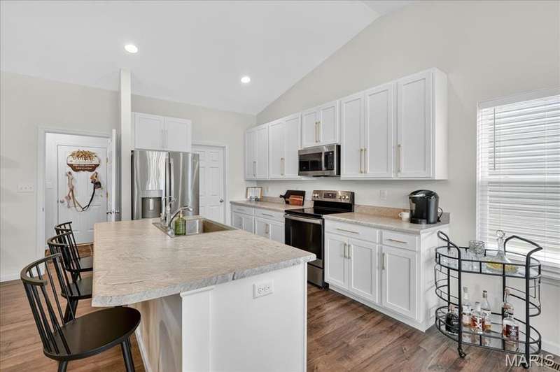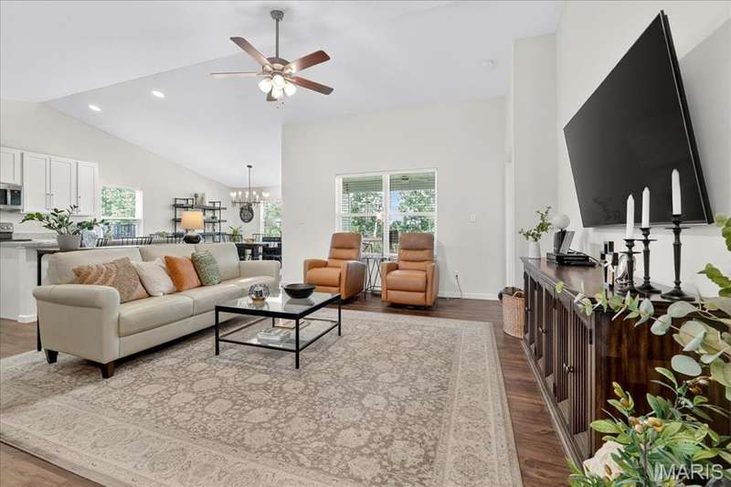 Stunning ranch home with 4 bedrooms and 3 full baths. More than 3,000 sq feet of living space !!!Open and vaulted ceilings, upgraded fixtures. Primary suite has walk-in closet and full bath with double bowl vanity. Open eat-in kitchen features white cabinets, large center island/breakfast bar, large pantry, SS Appliances and dining room that opens to a composite deck. Main floor laundry, finished walkout LL with family room, fireplace, 4th bedroom and 3 full bath. It has a beverage cabinet and it leads to a patio. The backyard is fenced and Backs to treesone Come take a look quickly because this one will be gone!
