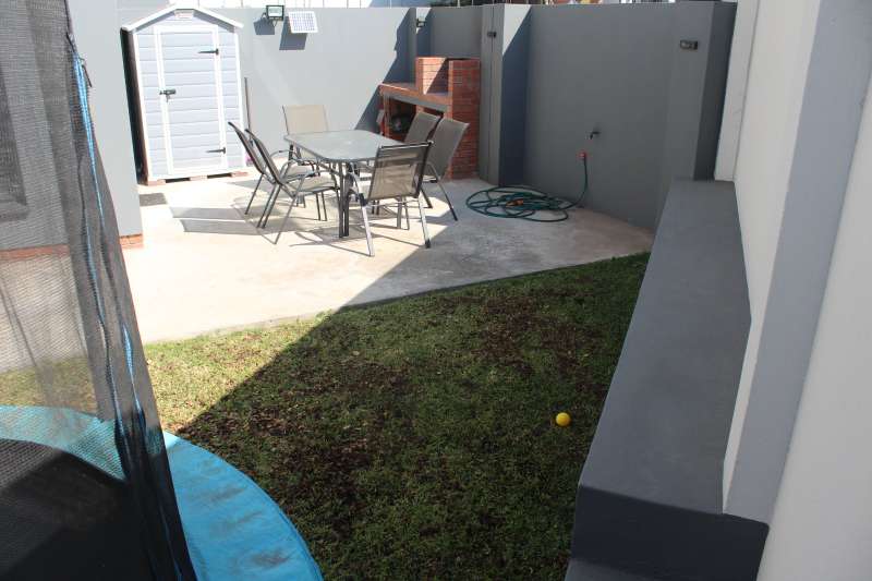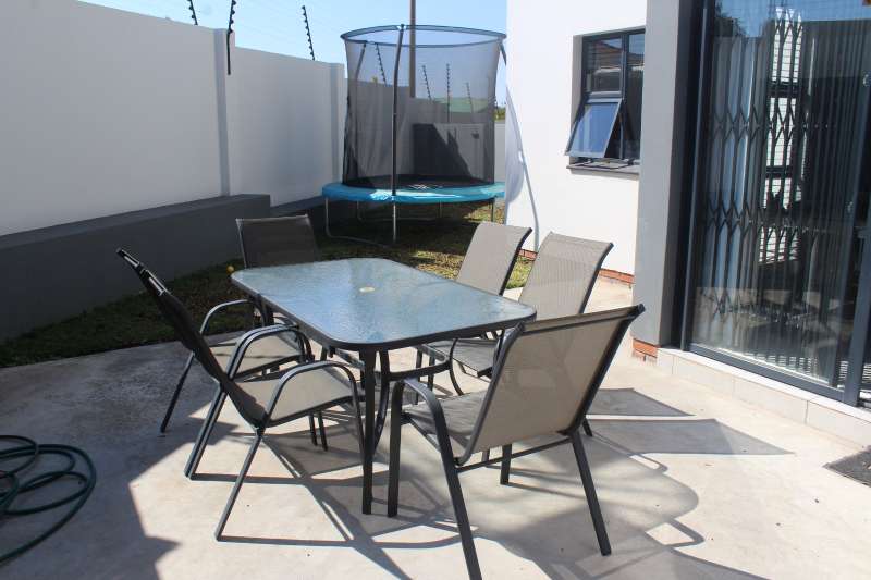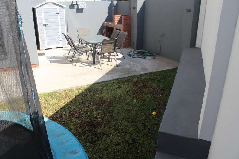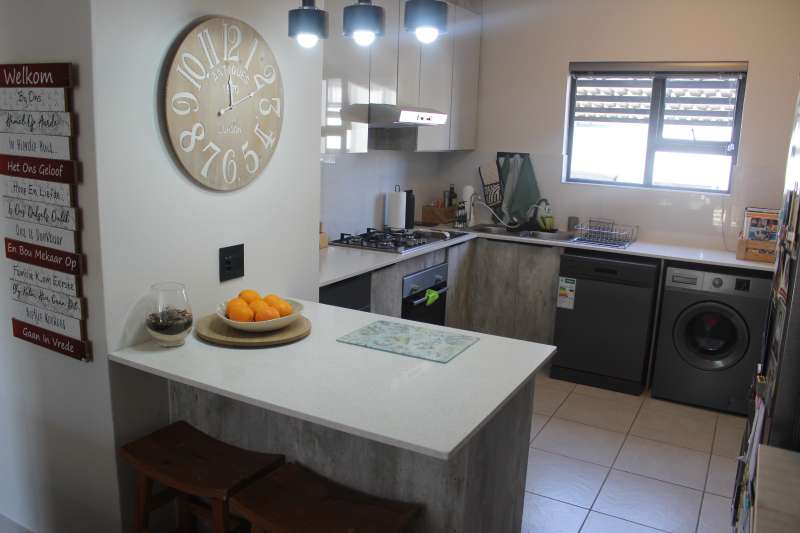 Step into comfort and convenience with this newly developed ground floor apartment, located in a secure, well-maintained complex. The home offers 3 spacious bedrooms with built-in cupboards, 2 modern bathrooms, and an open-plan kitchen and lounge. The kitchen is fitted with contemporary cupboards, while the lounge features a built-in fireplace/braai, perfect for entertaining indoors. Glass doors lead to a private patio and garden, where you'll find an additional built-in braai and plenty of space for kids, pets, or outdoor gatherings. Added extras include burglar gates for security, and blinds fitted throughout for privacy and light control. This apartment offers a perfect balance of style, space, and peace of mind. Ideal for families, young professionals, or investors looking for a move-in-ready home in a sought-after complex.