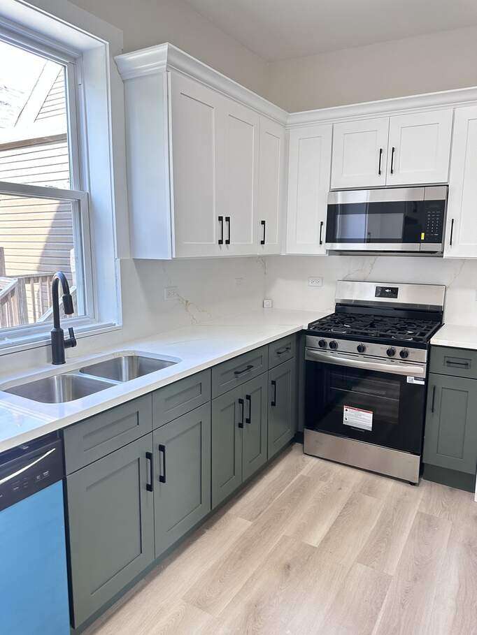 Complete Turnkey Newly Renovated 2-Unit property in New City! This stunning Cook County land bank 2-flat has been fully transformed into a modern, move-in-ready residence offering exceptional flexibility and style. Boasting 6 bedrooms and 2 bathrooms across both units, this property is ideal for owner-occupants seeking rental income or investors looking for a hassle-free addition to their portfolio. From the moment you arrive, the striking Hardie board front siding sets the tone for a residence that's built to impress and designed to last. Enter into each unit to experience an open layout filled with natural sunlight and tall ceilings providing a cozy living area. The formal dining room offers a stunning accent wall and luxury lighting. The chef's kitchen includes a complete stainless steel appliance package , beautiful waterfall quartz countertops, all new 36 inch shaker cabinets as well as luxury vinyl flooring throughout each unit. The newly remodeled spa bathrooms showcase a sleek design with a deep soaking tub and updated bath fixtures. Each unit is fully equipped with individual heating and cooling systems, brand new water heaters and individual laundry hookups. The exterior does not disappoint! The brand new 2 car garage includes Hardie board siding and wrought iron fencing all around for security. Updates include NEW plumbing, NEW electric, NEW HVAC and new siding all complete with City of Chicago permits. This property qualifies for a $20,000 home buyer grant through the Cook County Land Bank homeownership program! Ideally located near 57-acre Sherman Park with several amenities including a fitness center, swimming pool, playgrounds, basketball and tennis courts, baseball/softball diamonds, soccer and football fields. Convenient access to the expressway, train, and bus lines, this home blends timeless character with modern finishes. Schedule your showing & Make an offer today!