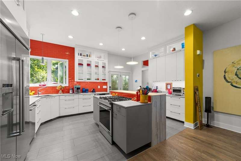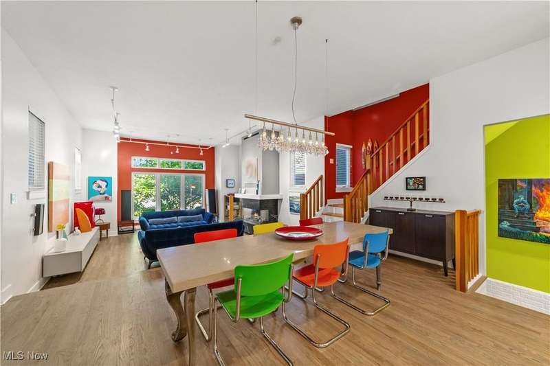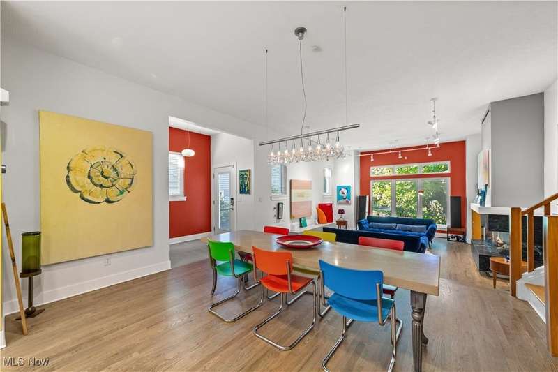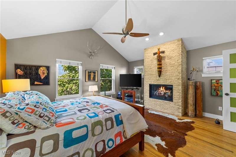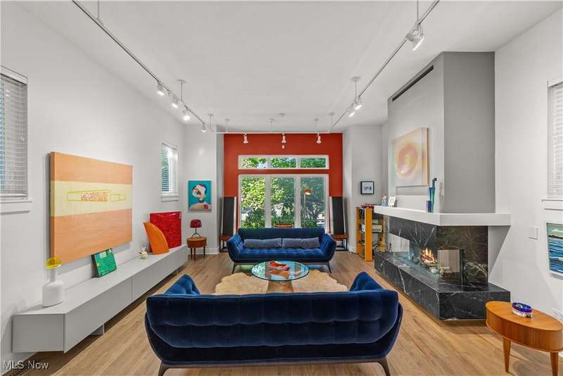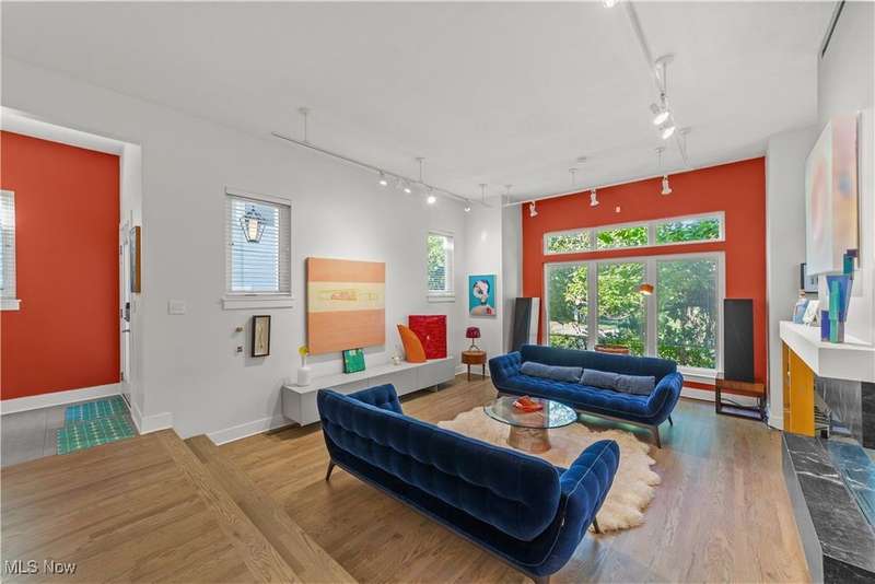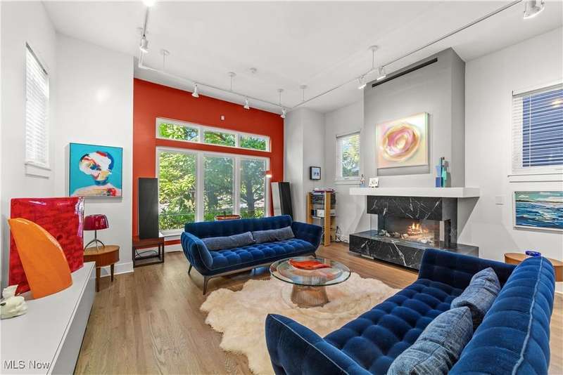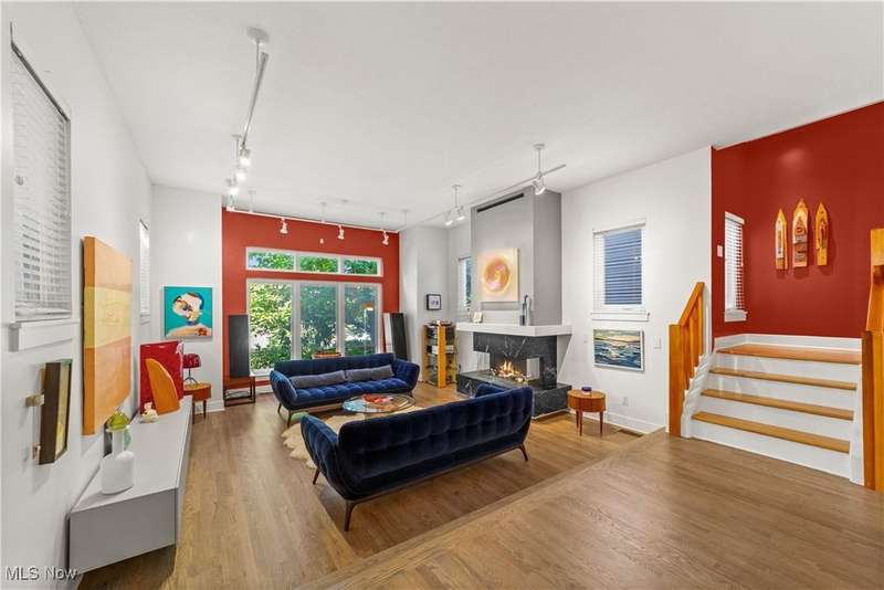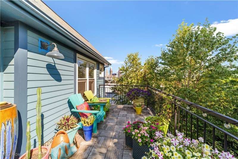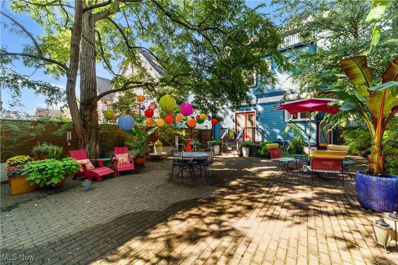 A beautiful opportunity to own this artistically curated Colonial in the heart of Tremont. This spacious three bedroom 2.5 bath home features over 2500 sq ft of modern interior living space with a massive outdoor courtyard-style backyard that is perfect for large gatherings in the warmer months. This home has undergone numerous & recent high-end renovations since it's been built, including a custom gourmet kitchen with REHAU cabinets, dekton countertops, high-end appliances, and a large custom pantry. Stunning hardwood floors are featured throughout this home, including the spacious living room & dining room areas. A custom designed, 3-sided glass soap stone fireplace sets the stage in the living room, which also features high ceilings & lots of natural light. The dining area is perfect for large dinner parties & features a beautiful modern crystal chandelier. A stylish blue powder room completes the first level. Upstairs, the primary suite is spacious & features more stunning hardwood flooring, a custom stone fireplace w/remote control, vaulted ceilings, a walk-in closet, and an amazing primary bath with large glass walk-in shower, soaking tub, & skylight. Another spacious bedroom can be found down the gallery hall, which includes hardwood floors & direct access to the other updated full bath. A convenient laundry room completes this level. The third floor is an ideal guest room space, which includes vaulted ceilings, a walk-in closet, and has direct access to a lovely terrace with views of the city skyline. The lower level is currently being used as an art studio & storage space, but this level could become additional living space with your touches! An oversized 2-car detached garage & lush courtyard-style backyard provides a secluded ambiance tucked away in the city. This property sits just feet away from the Towpath & all of the Tremont hot spots, as well as close proximity to all of the major highways. Do not miss this wonderful chance to own this special gem!