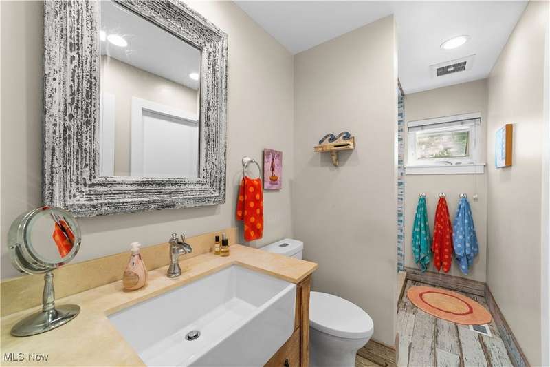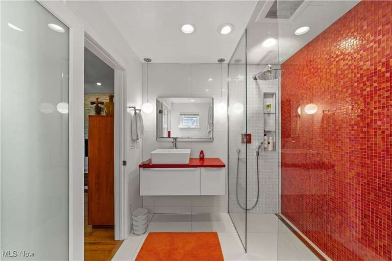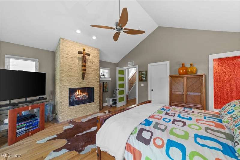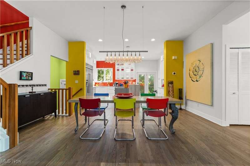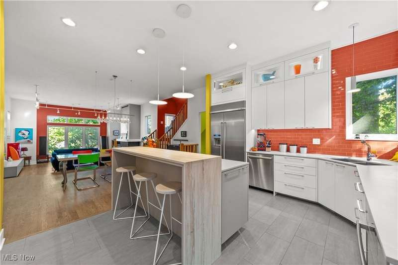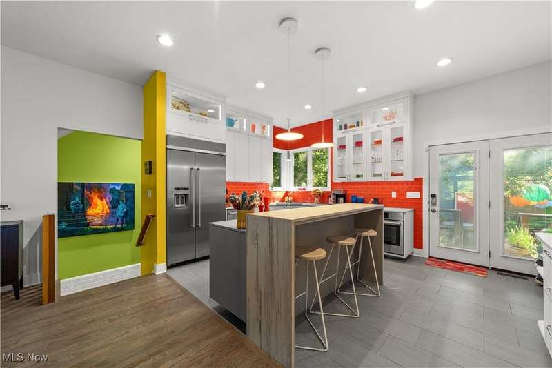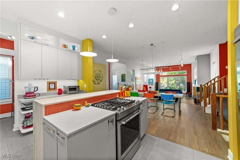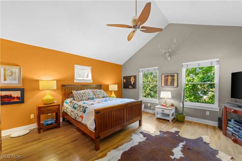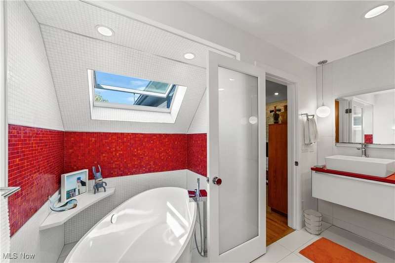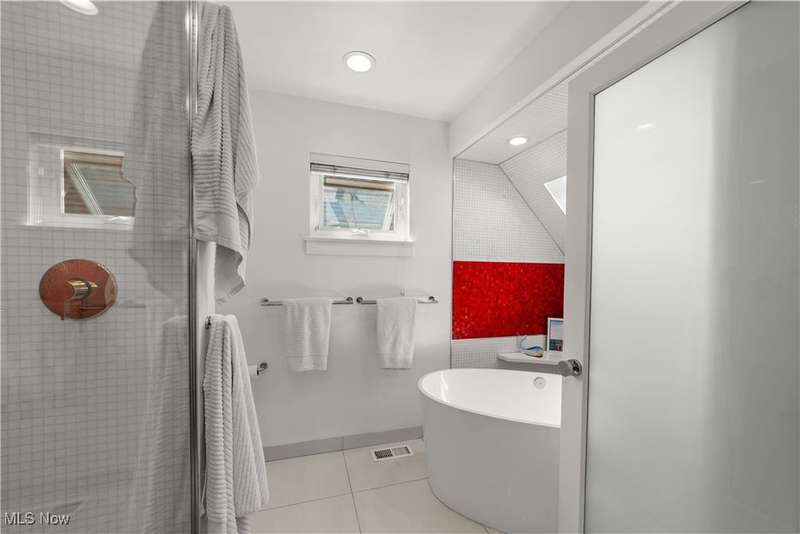 A beautiful opportunity to own this artistically curated Colonial in the heart of Tremont. This spacious three bedroom 2.5 bath home features over 2500 sq ft of modern interior living space with a massive outdoor courtyard-style backyard that is perfect for large gatherings in the warmer months. This home has undergone numerous & recent high-end renovations since it's been built, including a custom gourmet kitchen with REHAU cabinets, dekton countertops, high-end appliances, and a large custom pantry. Stunning hardwood floors are featured throughout this home, including the spacious living room & dining room areas. A custom designed, 3-sided glass soap stone fireplace sets the stage in the living room, which also features high ceilings & lots of natural light. The dining area is perfect for large dinner parties & features a beautiful modern crystal chandelier. A stylish blue powder room completes the first level. Upstairs, the primary suite is spacious & features more stunning hardwood flooring, a custom stone fireplace w/remote control, vaulted ceilings, a walk-in closet, and an amazing primary bath with large glass walk-in shower, soaking tub, & skylight. Another spacious bedroom can be found down the gallery hall, which includes hardwood floors & direct access to the other updated full bath. A convenient laundry room completes this level. The third floor is an ideal guest room space, which includes vaulted ceilings, a walk-in closet, and has direct access to a lovely terrace with views of the city skyline. The lower level is currently being used as an art studio & storage space, but this level could become additional living space with your touches! An oversized 2-car detached garage & lush courtyard-style backyard provides a secluded ambiance tucked away in the city. This property sits just feet away from the Towpath & all of the Tremont hot spots, as well as close proximity to all of the major highways. Do not miss this wonderful chance to own this special gem!
